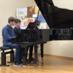 Těžce na cvičišti, lehce na bojišti. Koncert se přiblížil a všichni jsme byli plni očekávání, jaké ovoce přinese. Přece jen to pro mnohé byl první křest. A ono se dařilo. A moc se dařilo. Děti hrály s chutí, úsměvem, soustředěně a bylo patrné, že si hru ve dvou užívají. Chybičky také byly, bez nich to nejde, ale důležité je, že se přes ně děti přehouply a pokračovaly dál. A to je asi to největší umění. Na konci společné focení a příslib, že příští rok uděláme druhý ročník tohoto hudebního setkání dvou u klavíru. A kdo ví, třeba zkusíme i šestihru či na dva klavíry. Fantazii se meze nekladou. V muzice zvlášť. A nejdůležitější je, že to děti i jejich paní učitelku baví. A zpětná vazba rodičů? Jen ta nejlepší. Koncert se velmi líbil všem, kteří se ho zúčastnili. Tedy dětem, rodičům i hostům. A tak posílám velkou pochvalu všem pilným malým i velkým klavíristům za jejich úsilí a za krásný zážitek, který jsme díky nim 20. dubna 2022 mohli mít.