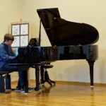 Myslím si, že lepší den než pátek 13. jsme si pro autorský večer ze skladeb a písní Pavla Kratochvíla nemohli vybrat. Už datum slibovalo, že koncert bude výjimečný. A také byl. Nestává se tak často, aby žáci hráli a zpívali skladby a písně žijících autorů, a ještě méně se stává, aby byl sám skladatel koncertu přítomen. My měli to štěstí, že Pavel Kratochvíl přijel, aby si děti poslechl a aby je podpořil. Na koncertě zaznělo 11 klavírních miniatur a 4 písně v podání žáků ZUŠ Nový Bor. Před koncertem jsem dětem řekla, že chyby se nepočítají, že budu ráda za jejich otevřené srdce a prožitek. A přesně tak to bylo. Klavíristé a zpěvačky hráli a zpívali s krásným výrazem, citlivou dynamikou a hlubokým procítěním. Pro zpěváky bylo zážitkem, že je doprovodil na klavír sám skladatel. Klavíristé zase měli výhodu, že na skladbách před půl rokem s autorem pracovali. Pavel Kratochvíl tedy viděl, kam se skladby posunuly od jejich setkání. Všechny klavírní skladby byly inspirovány intuitivními kresbami Mea Rei. Krásná muzika s názvy většinou poetickými-Jako dech, Do ticha hlas zakletý, Protančit se ke kapce rosy, Moře v kapce slzy, Zahořet a neutonout, Schoulit se do svého ticha nebo V utajení na procházku.