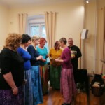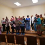 Začínající a již zkušený sbor se takto sešly poprvé. Obě tělesa vede naše Regí, a protože Skleněnky projevily zájem o společné zpívání, bylo od nápadu blízko k činu. Skleněnky i my jsme si připravily program, Regina vybrala i společné písně, které zpívají oba sbory a dohodnout den setkání již byla maličkost…