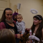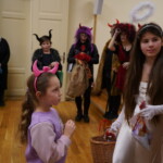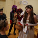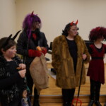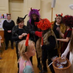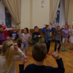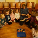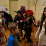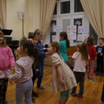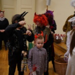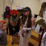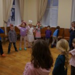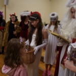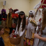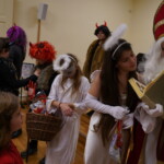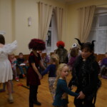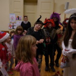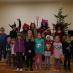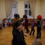 Konečně přišly na řadu koše plné sladkých balíčků a Kniha hříchů. Někdo se tvářil statečně, někdo se trošinku třásl strachy. To podle toho, jak byl kdo ten rok hodný. Balíčky byly rozdány, dostalo se na každého a vrchní čert na nitích vyhlásil soutěž pro odvážné. Kdo si prý zatancuje s čertem, dostane speciální odměnu. Přihlásilo se pět statečných dětí a za tónů Tureckého pochodu tancovaly společně s čerty. A odměna?? Přece brambora – co jiného byste čekali od čerta, že??