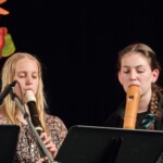 Odměnou jim bylo vystoupení Komorního orchestru pod vedením pana učitele Pavla Hrice, který zahrál čtyři krásné skladby včetně Pizzicato polky Johanna Strausse, která zrovna vybízela k tanci. Dále se představily oba sbory s českým i zahraničním repertoárem. Ty vystoupily pod vedením paní sbormistryně Báry Ptáčkové. Zazněl i hit skupiny The Beatles Hey Jude v podání Kytarového souboru paní učitelky Hany Přívratské. Vystoupily i oba flétnové soubory – Flétnové trio Ivety Šudové a Crazy Flutes paní ředitelky Markéty Trnkové Krchňákové. S Voktetem jsme si připomněli písničkáře Davida Stypku a Saxofonové combo na nás vypálilo hity a připravilo nás tak na nálož posledního účinkujícího tohoto koncertu a tím byl Jazz Base pod vedením Aleše Jungmana, který se moc líbil, takže nechyběl ani přídavek!! To vše proběhlo v kulisách, které vytvořili žáci výtvarného oboru včetně seniorek z Akademie III.věku pod vedením Hany Pražanové a Petry Štefanové. Za mikrofonem nás celou akcí provedli šikovní dramaťáci a nechyběl ani hřmotný dlouhotrvající potlesk!!