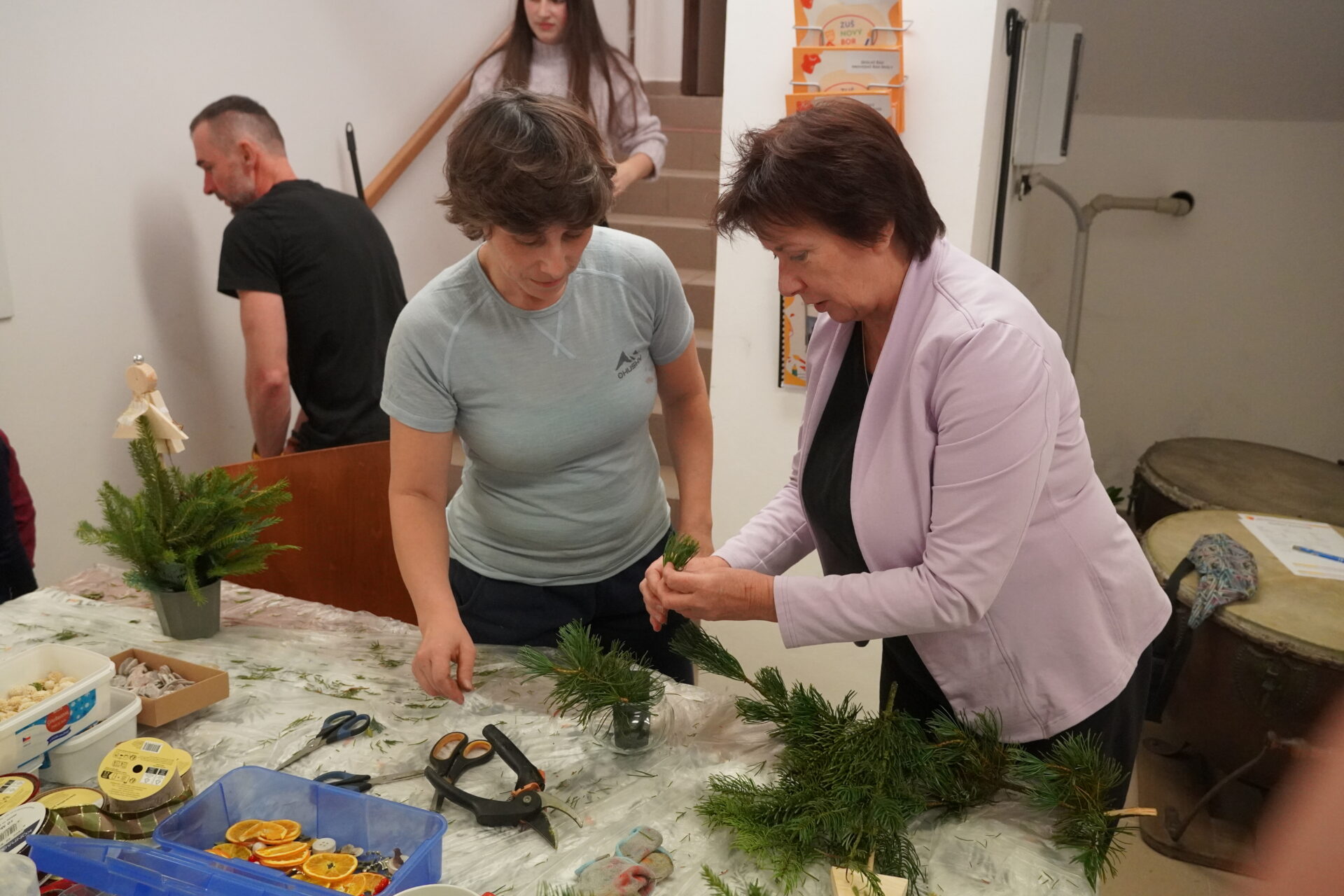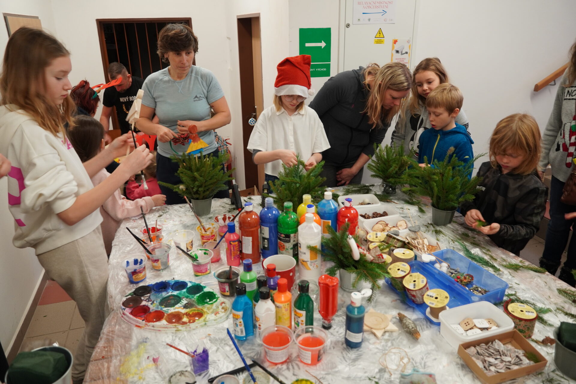 V suterénu probíhaly tvořivé dílny pod vedením Gabči Bártové a Monči Majerikové. Návštěvníci si zde mohli vyrobit spoustu vánočních dekorací.