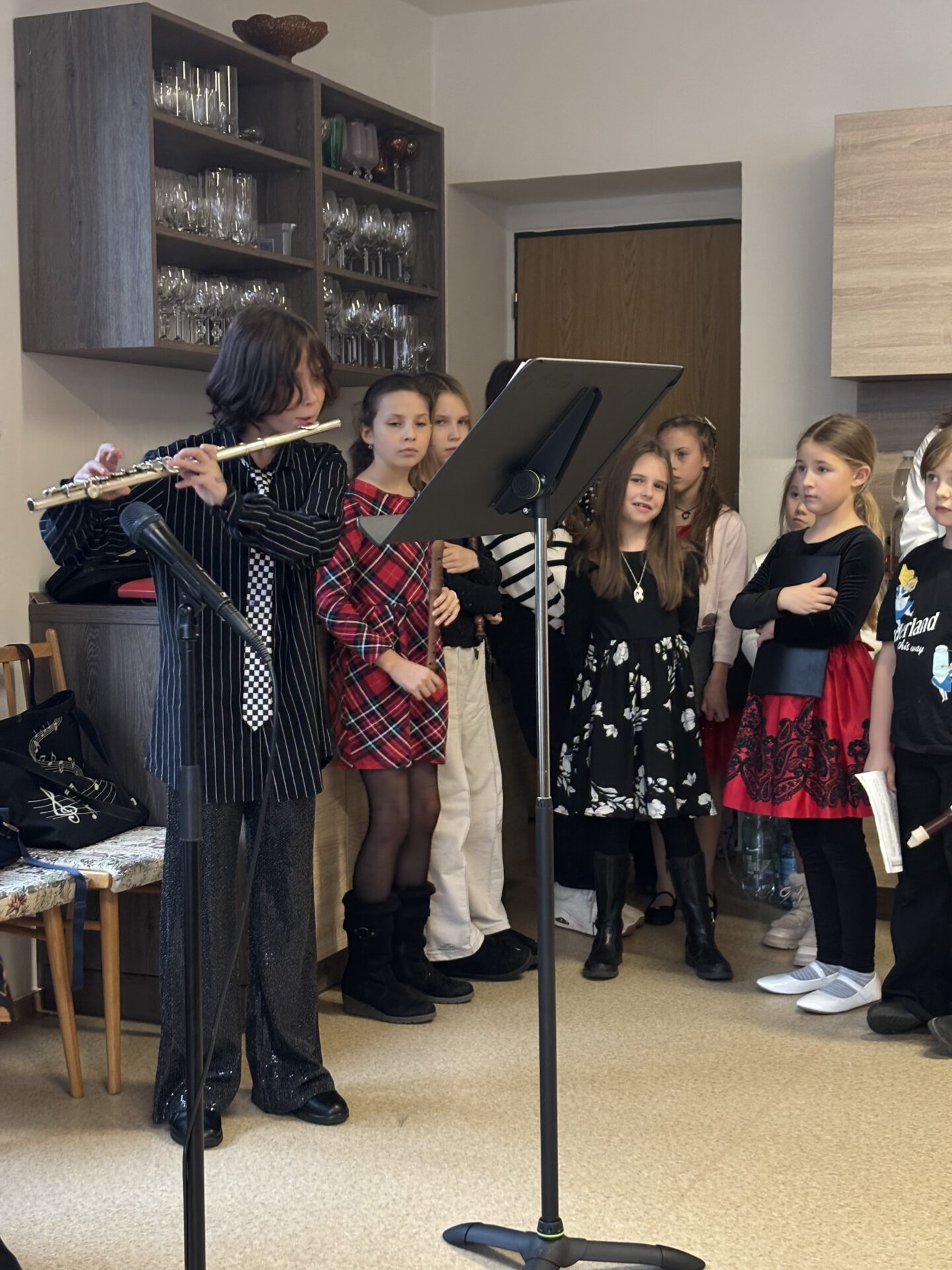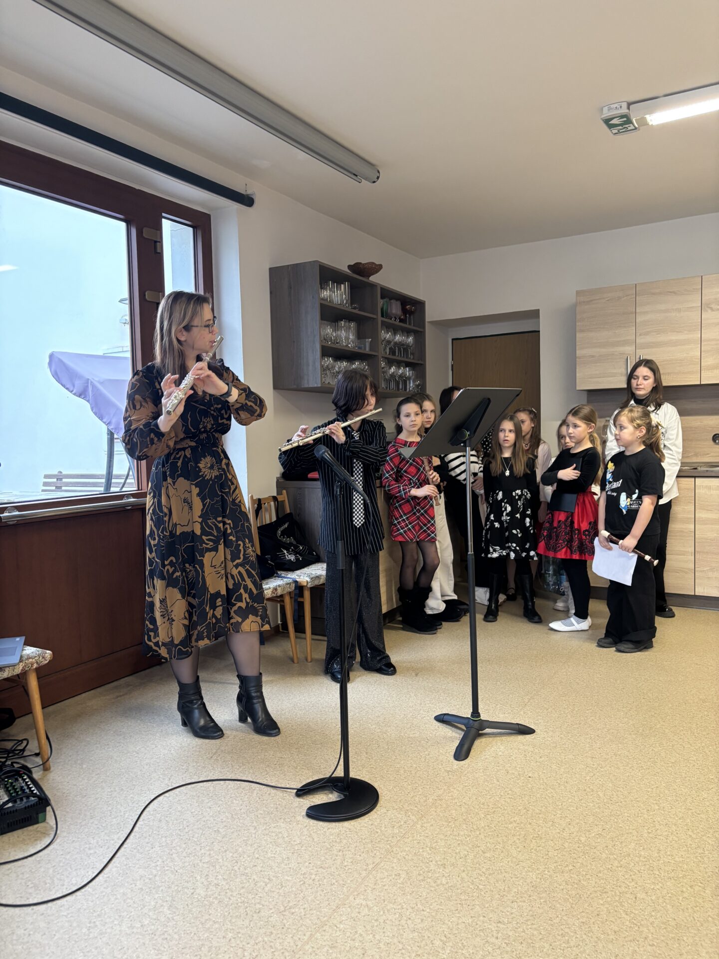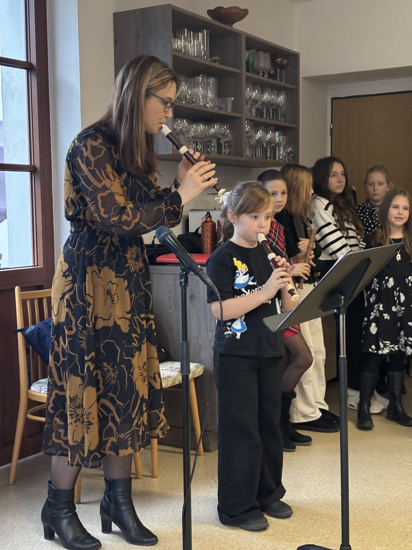O hudební program se postarala flétnová třída paní učitelky Markéty Trnkové Krchňákové, která na vystoupení připravila své mladé flétnistky. Se svým pěveckým vystoupením je doplnila pěvecká třída paní učitelky Kateřiny Doubravové. Společně vytvořily atmosféru plnou pohody a očekávání přicházejících Vánoc.