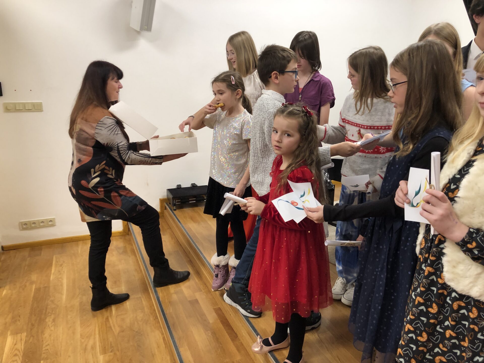 Každý rok se snažím vymyslet nějakou zajímavou nitku, která by propojovala koledy třídního adventního koncertu a přinesla dětem i publiku poznání něčeho nového. Letos byla volba jasná. Setkala jsem se s pravnučkou Josefa Horáka, sběratele krkonošských a podkrkonošských písní, která vydala svému pradědečkovi dva sborníky koled. To je výzva. Nacvičit koledičky z jedné oblasti, od jednoho sběratele a jako třešnička, pozvat pravnučku Petru Dolejšovou na koncert. Koledy to jsou povětšinu neznámé, a přitom velmi zpěvné a krásné, které obohatily náš stávající koledový repertoár. Moc nás práce na přípravách koncertu bavila. Hostem koncertu byli zpěváčci paní učitelky Zdenky Cmuntové ze ZUŠ z České Lípy, které nám za jejího klavírního doprovodu zazpívali několik kolediček. Koncert jsme doplnili vyprávěním o Josefu Horákovi a dobovými zvyky. Pokud bychom měli najít přívlastek k tomuto adventnímu setkání, pak by to byla slovíčka laskavé, milé, dojemné a vřelé.