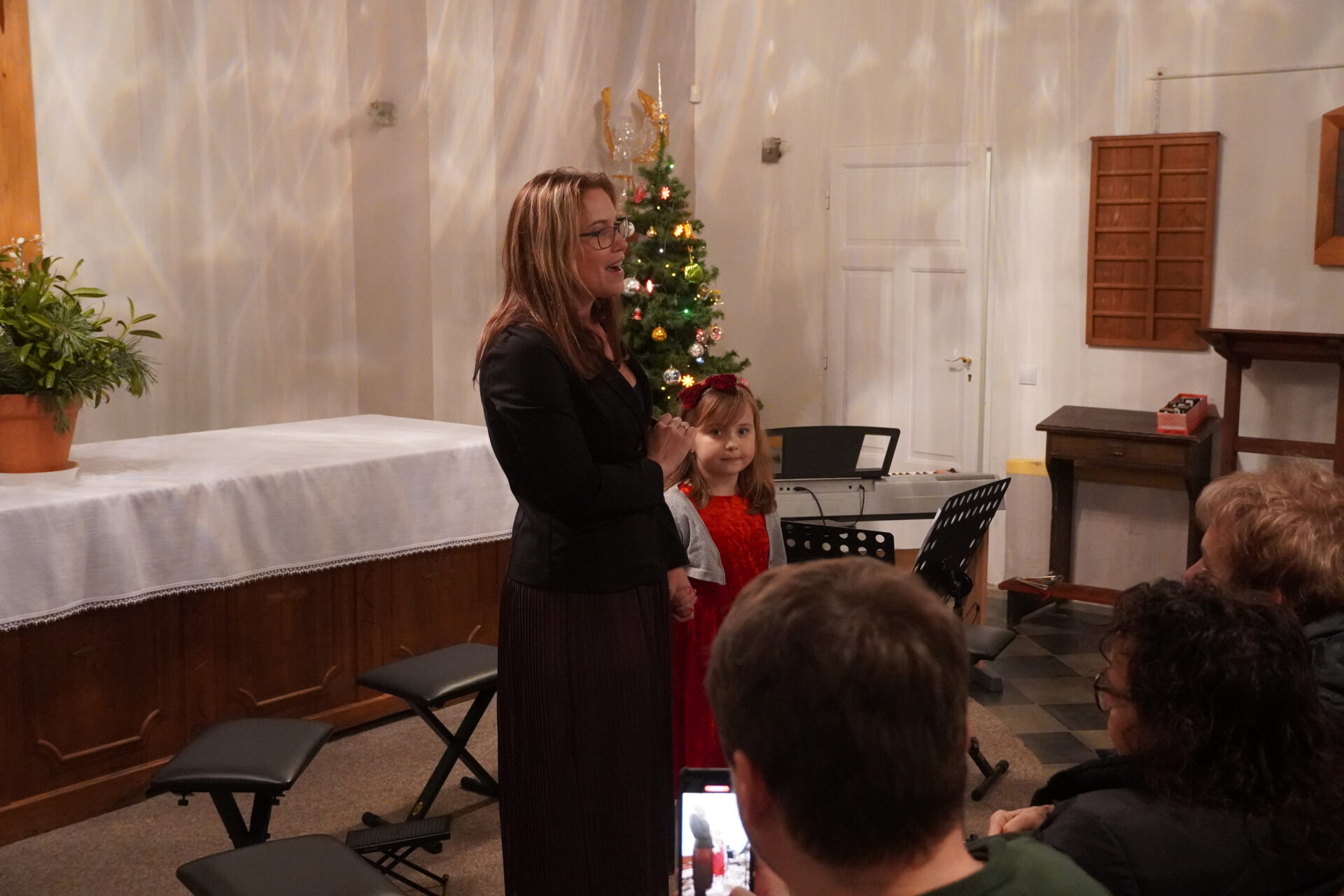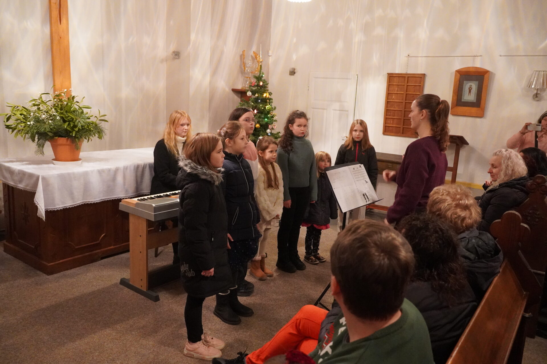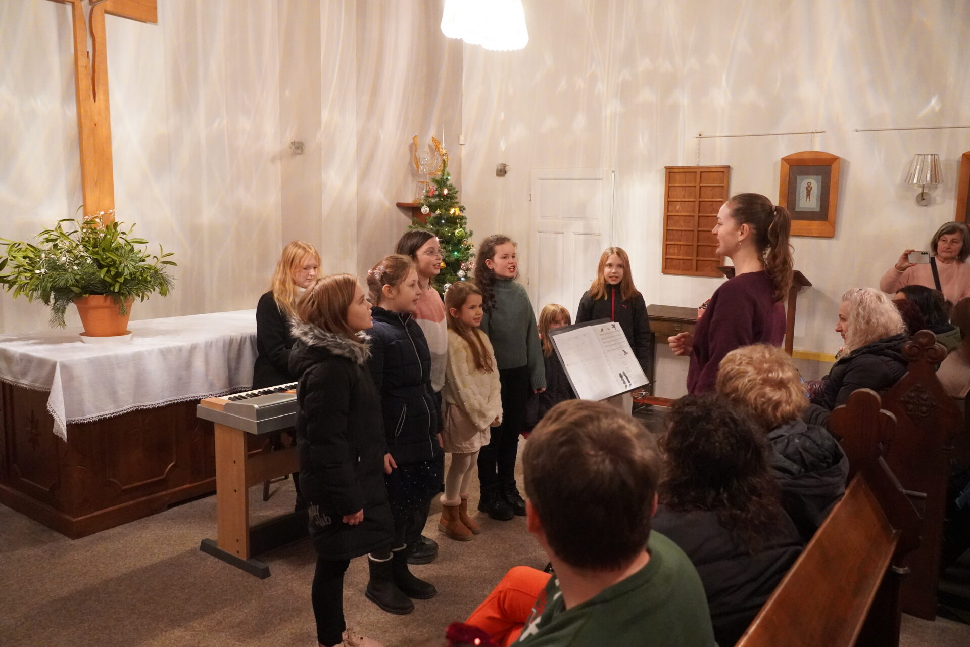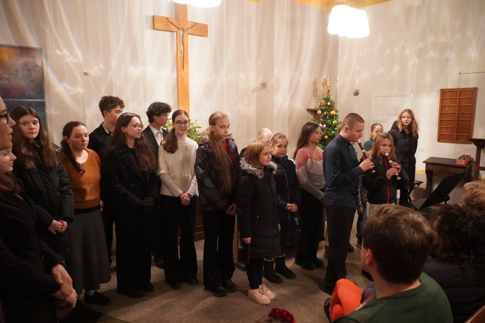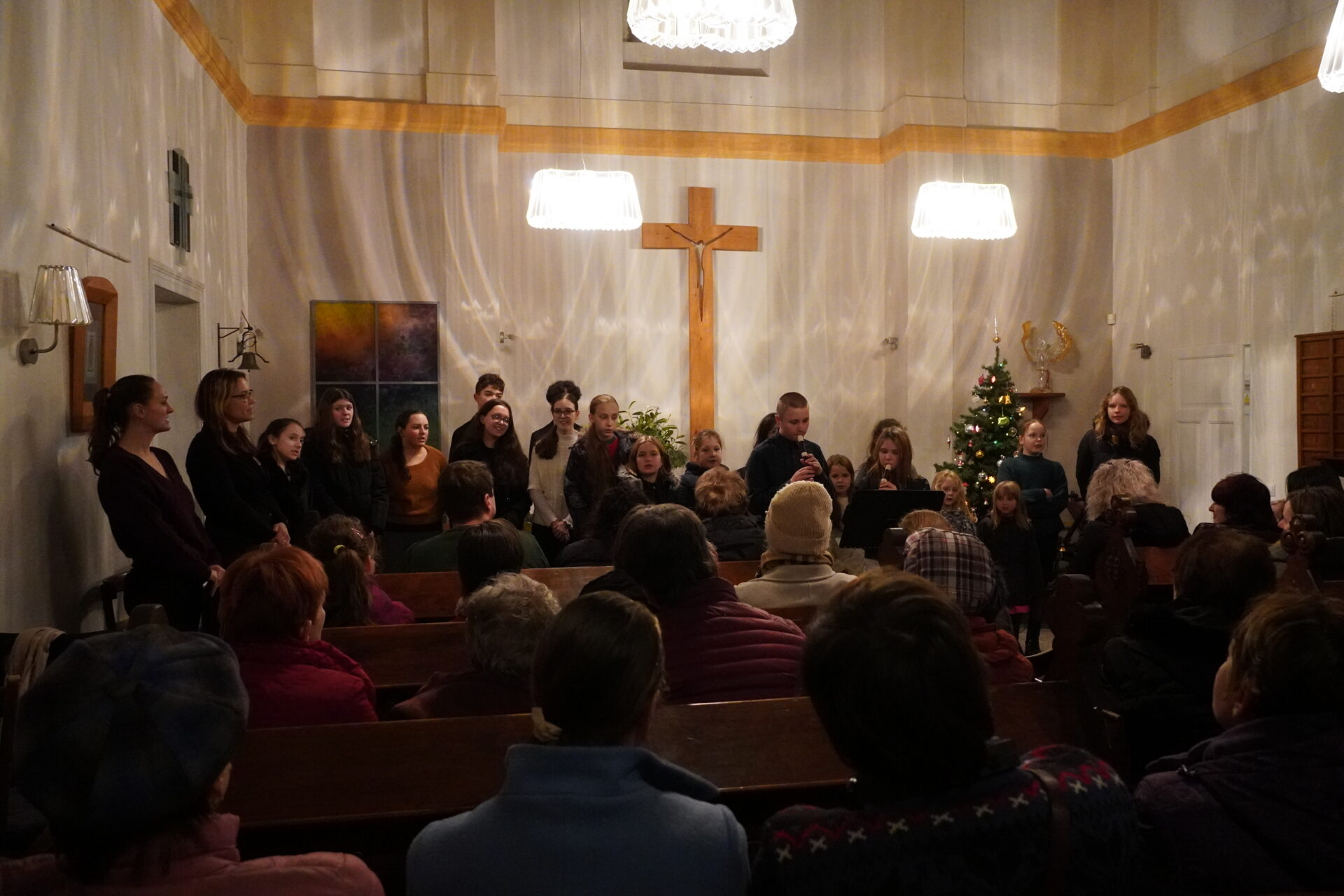Na závěr koncertu se všichni účinkující i posluchači spojili při společném zpěvu známých koled. Tím jsme se symbolicky rozloučili a společně naladili na blížící se Vánoce.
