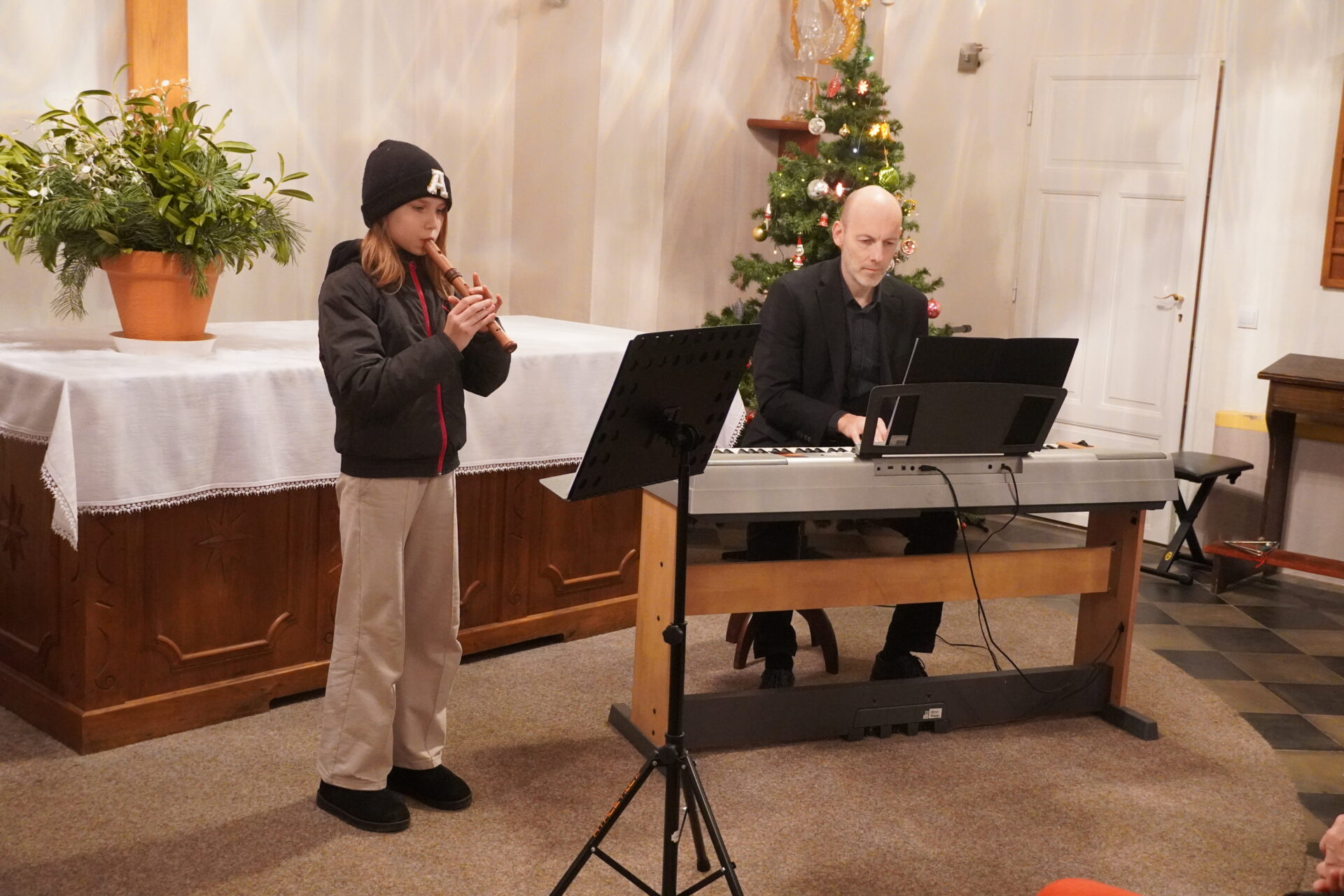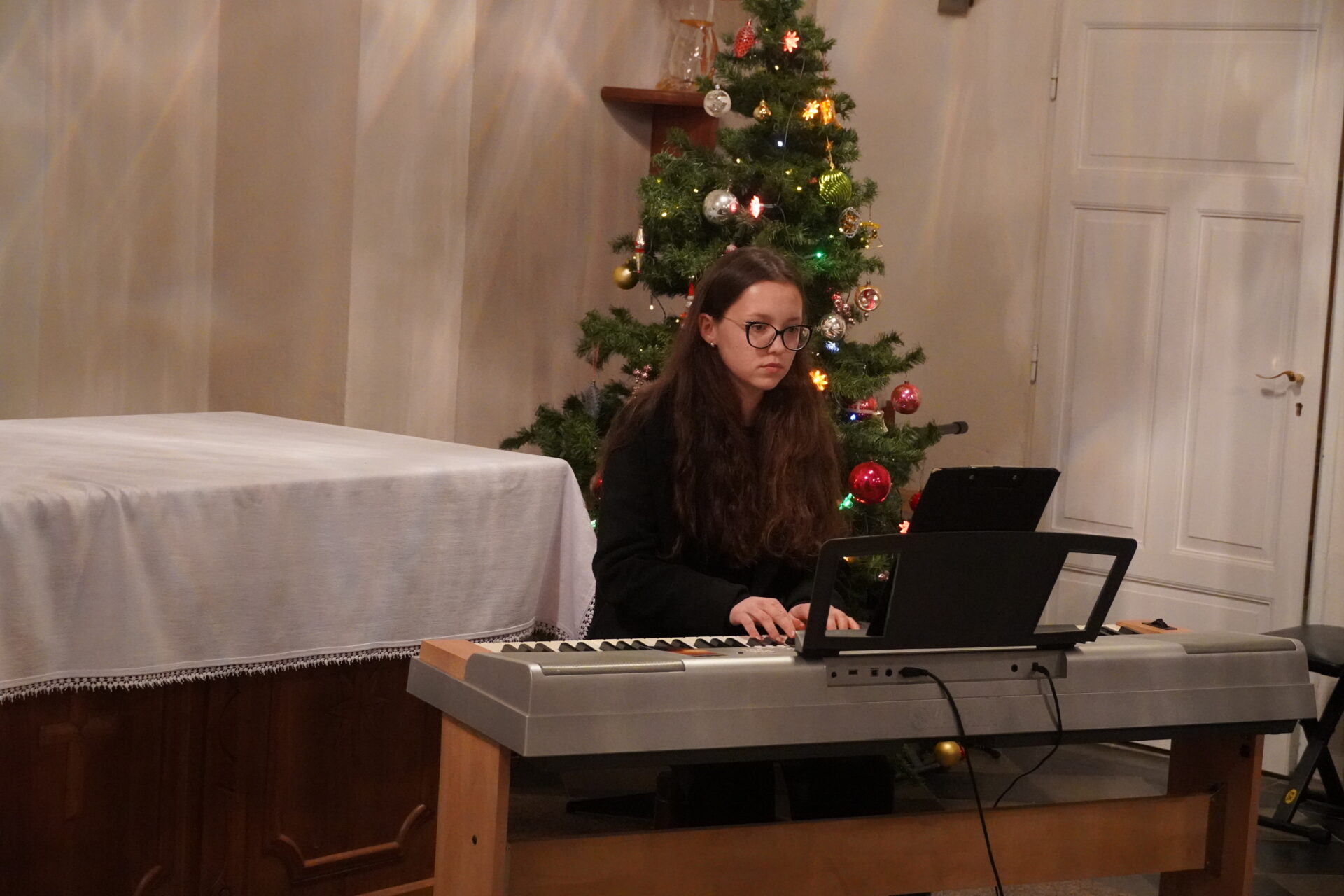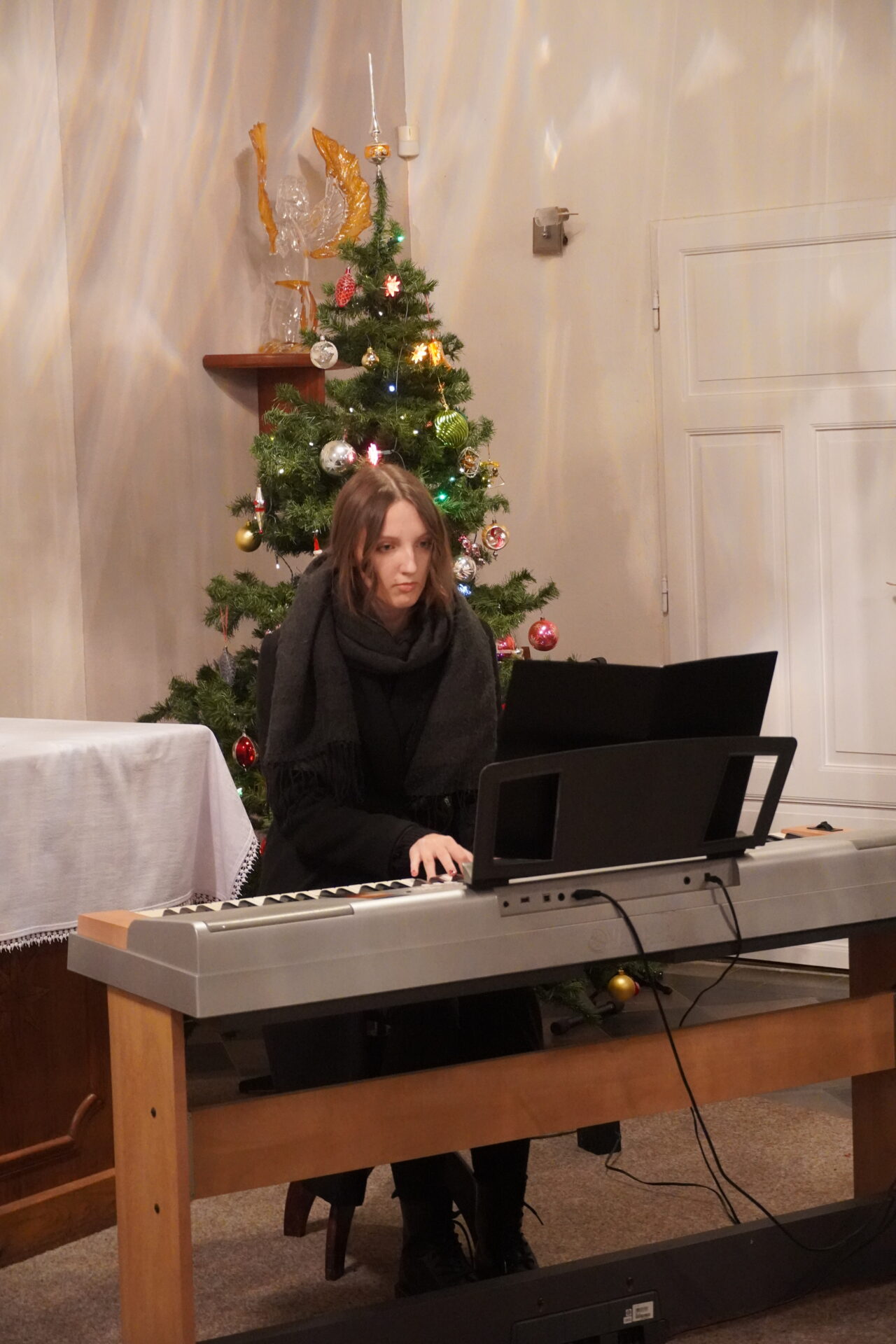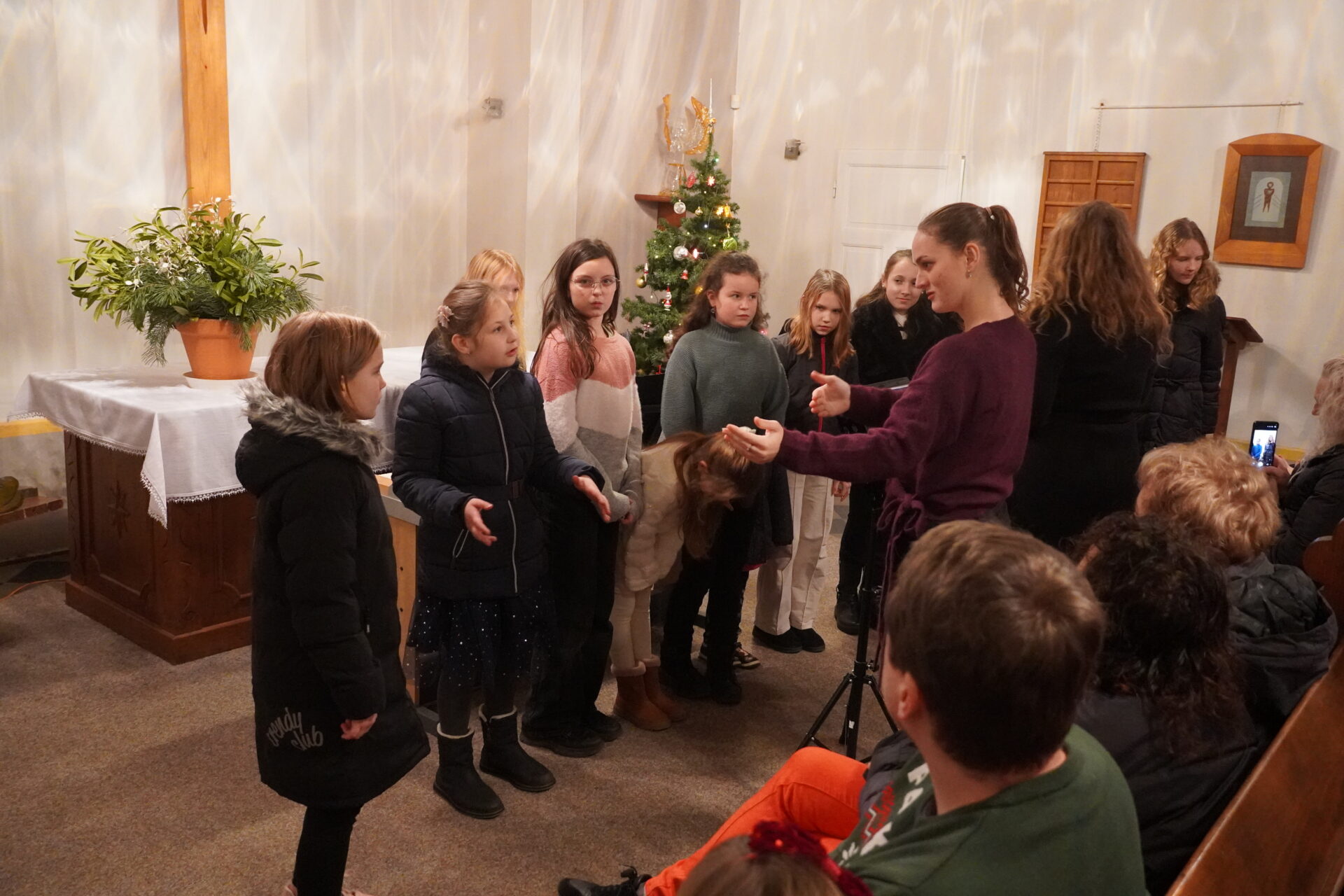 Na závěr koncertu se všichni účinkující i posluchači spojili při společném zpěvu známých koled. Tím jsme se symbolicky rozloučili a společně naladili na blížící se Vánoce.