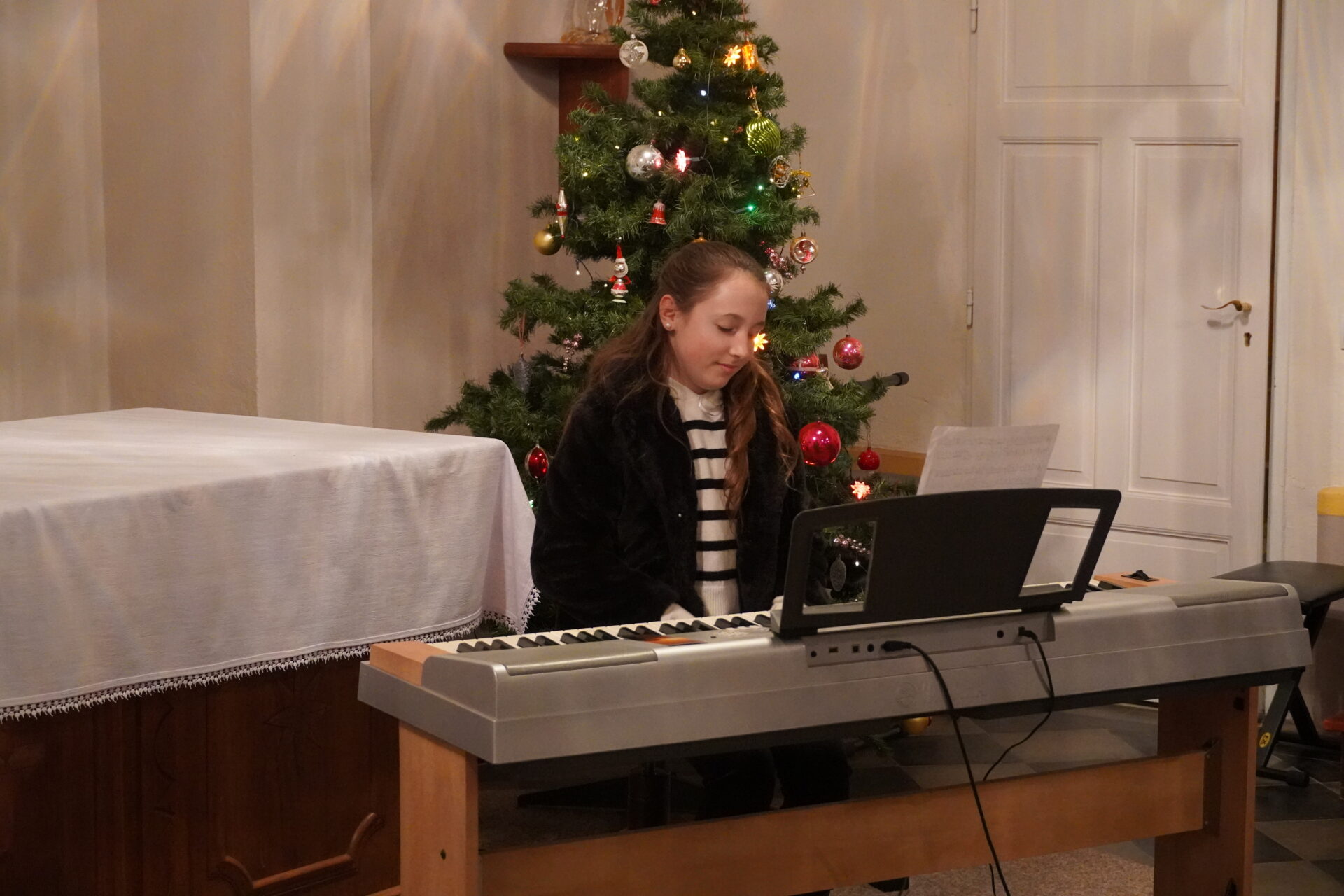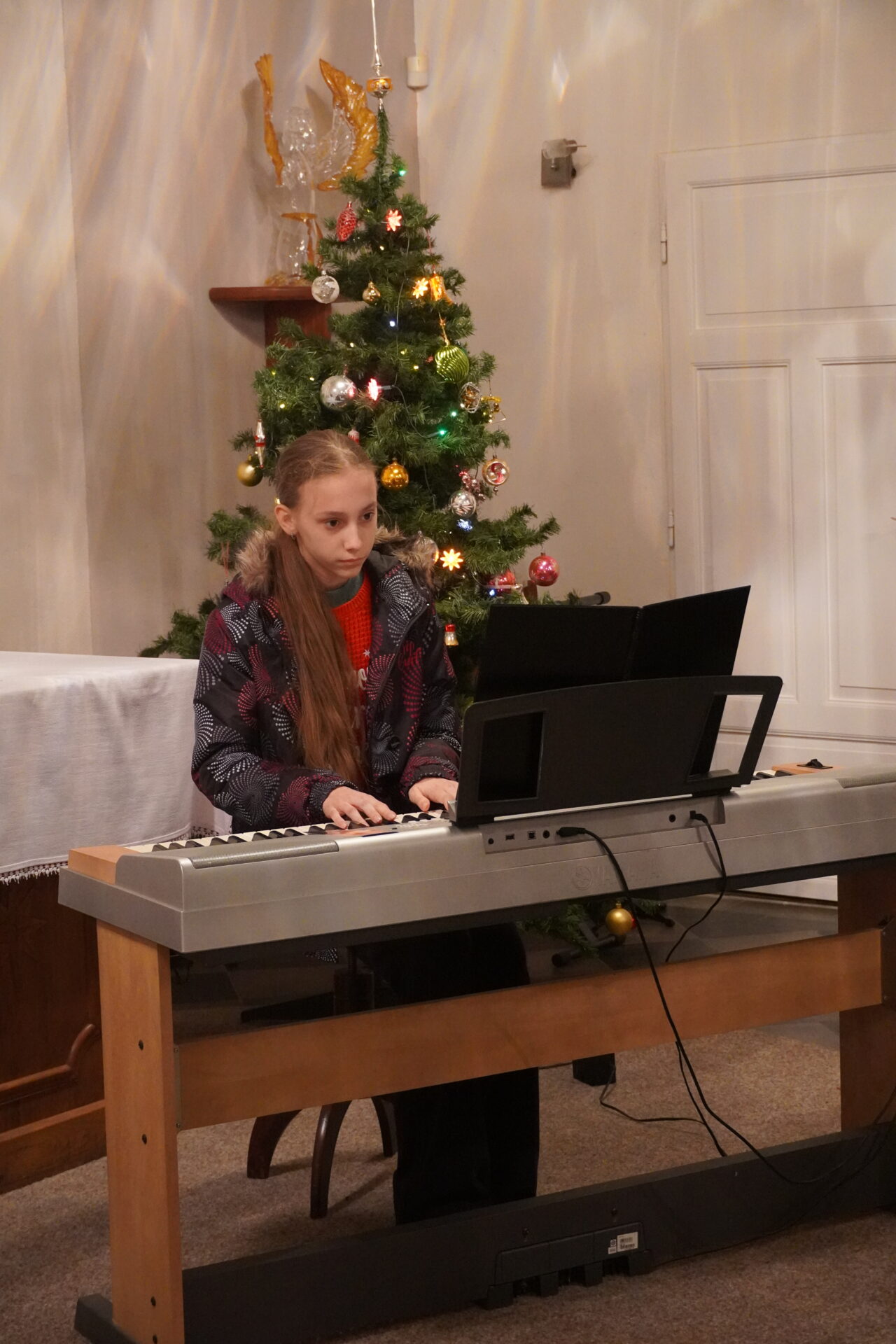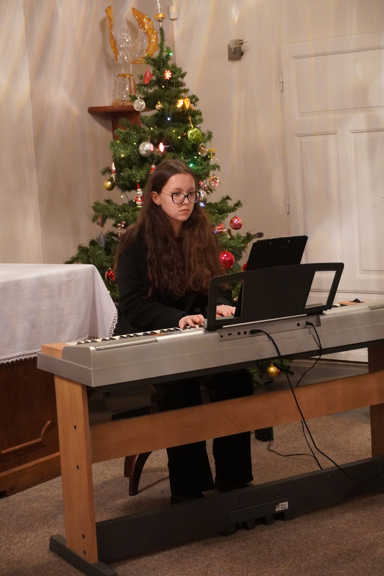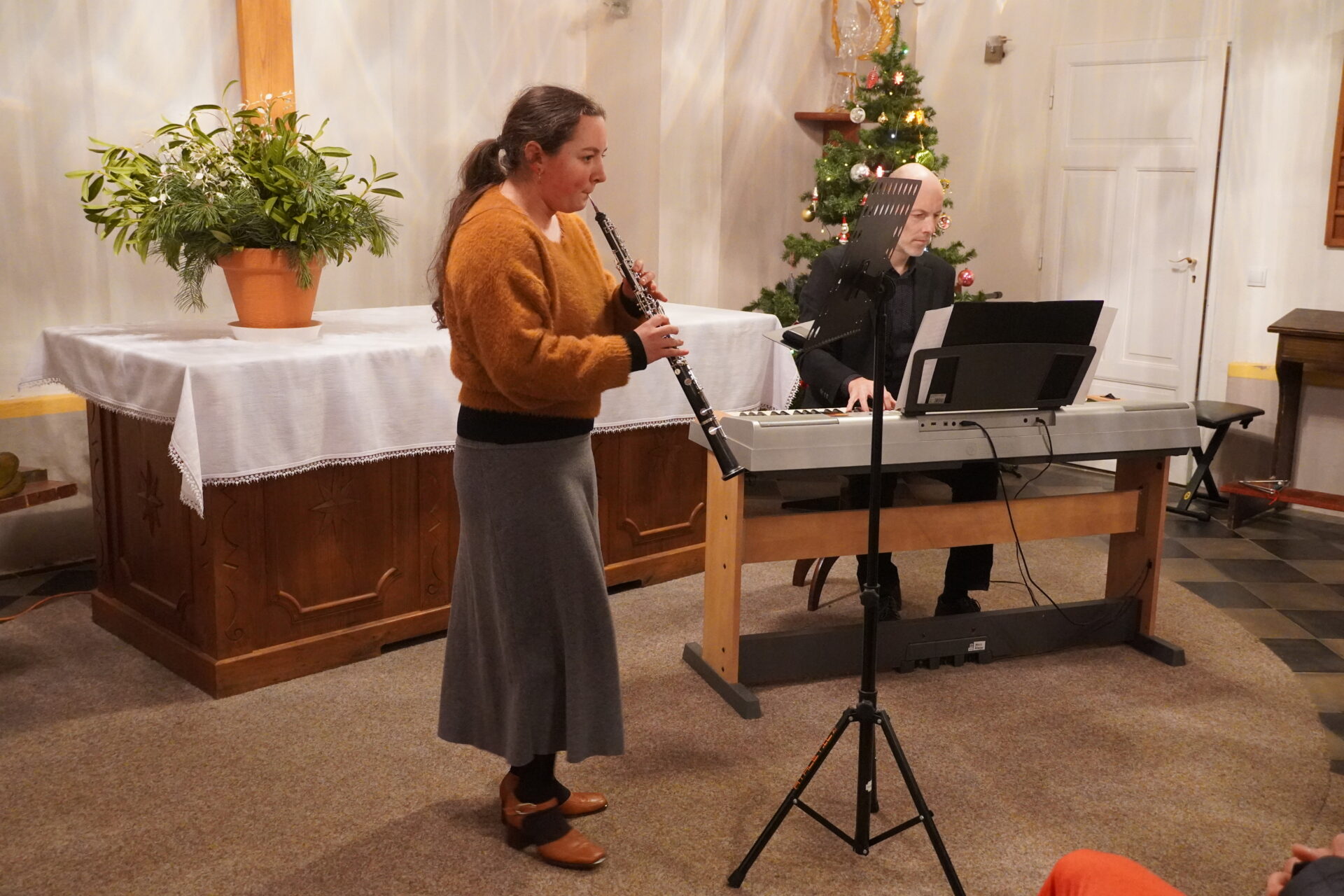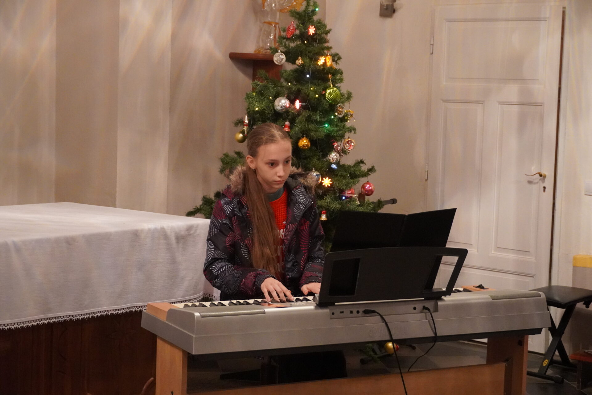 Na závěr koncertu se všichni účinkující i posluchači spojili při společném zpěvu známých koled. Tím jsme se symbolicky rozloučili a společně naladili na blížící se Vánoce.