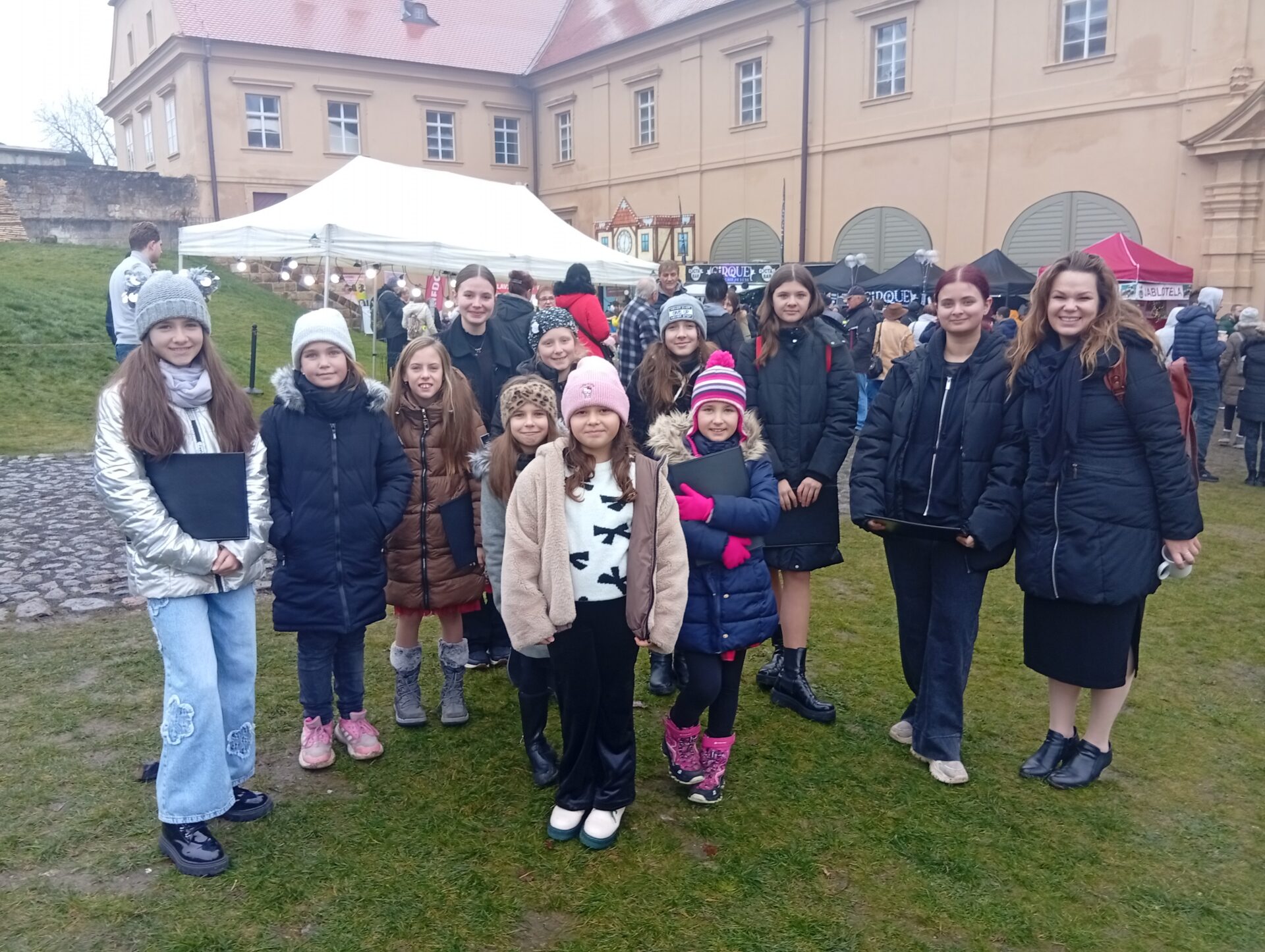 Ve třetí adventní neděli, 14. prosince 2025, jsme byly se svými žákyněmi pozvány k vystoupení na Popelčiny vánoční trhy, které se konaly v nádherných prostorách zámku v Zákupech. Tato výjimečná událost nabídla návštěvníkům nejen tradiční řemeslné stánky a vánoční dobroty, ale také kouzelnou atmosféru blížících se Vánoc.
