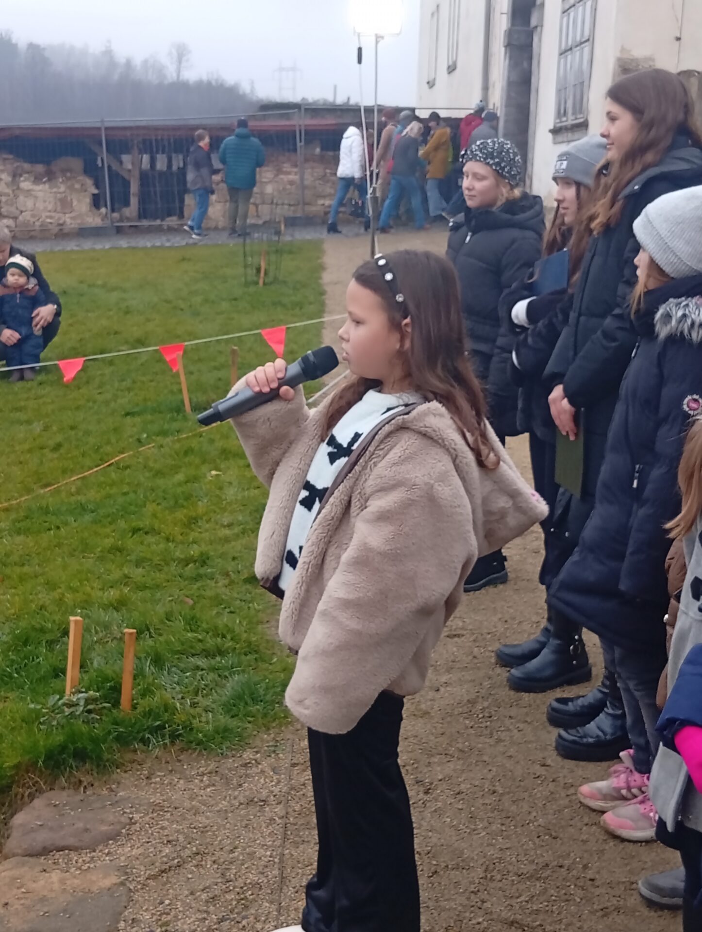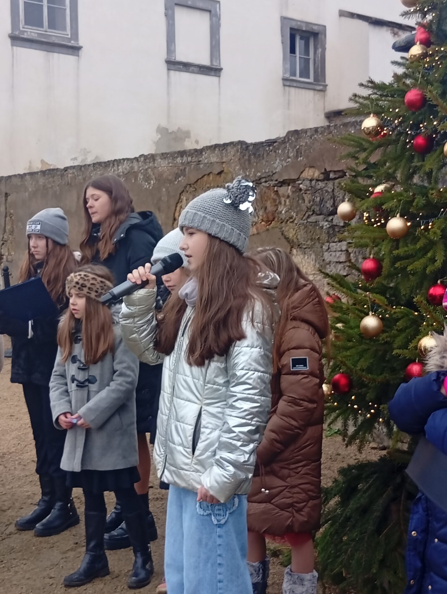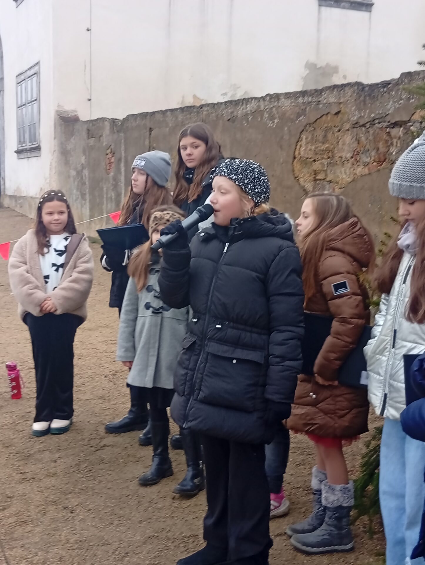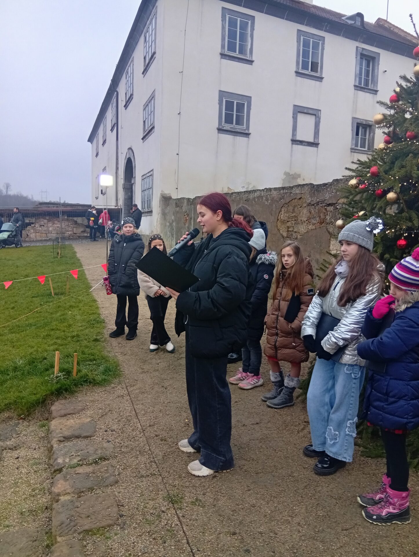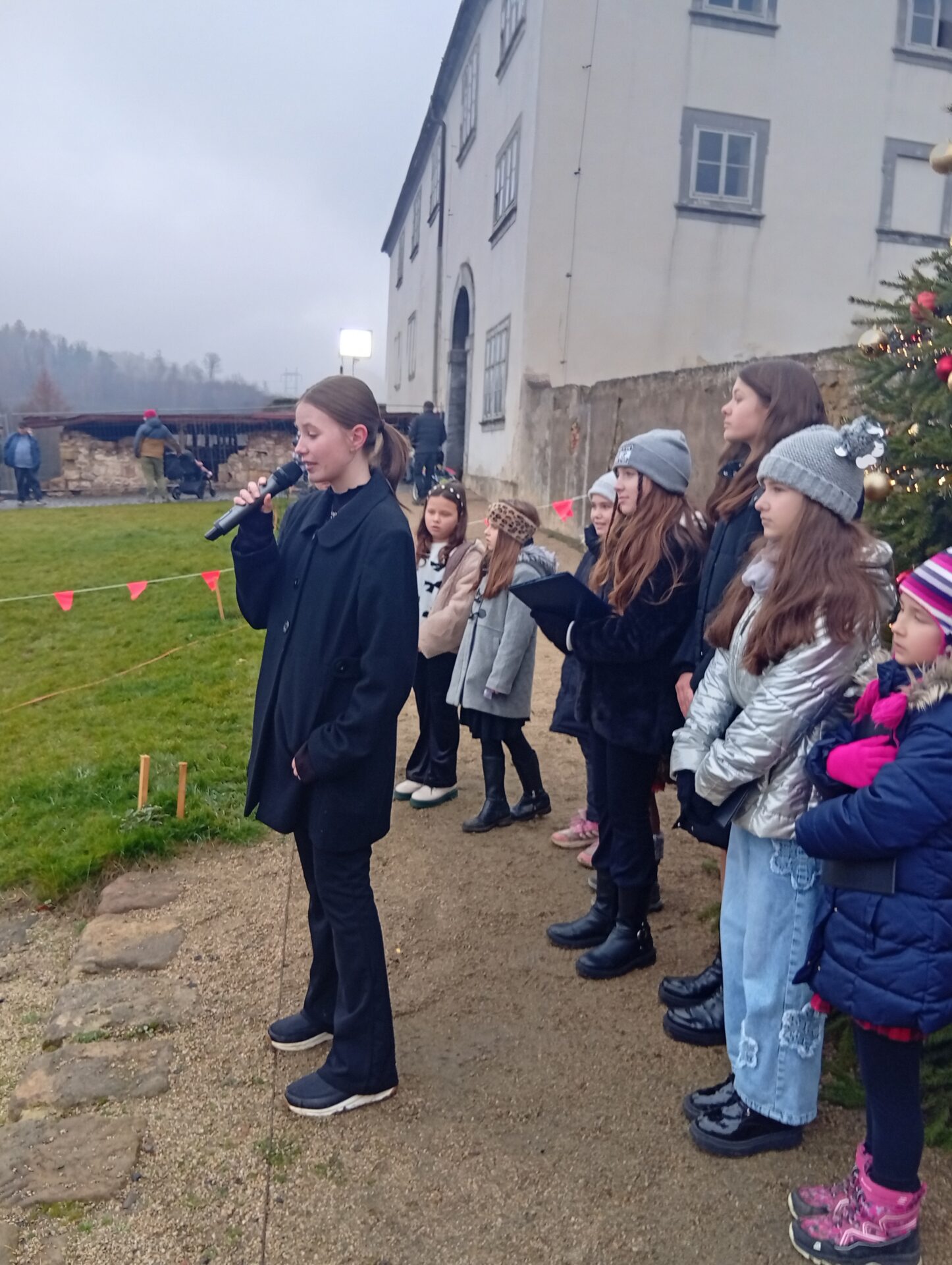 Naše žákyně zde vystoupily s pásmem koled a vánočních písní, kterými podtrhly sváteční ráz celé akce. Jejich zpěv se nesl zámeckými prostory a přispěl k vytvoření příjemné, klidné a radostné vánoční nálady, kterou si mohli vychutnat všichni přítomní.