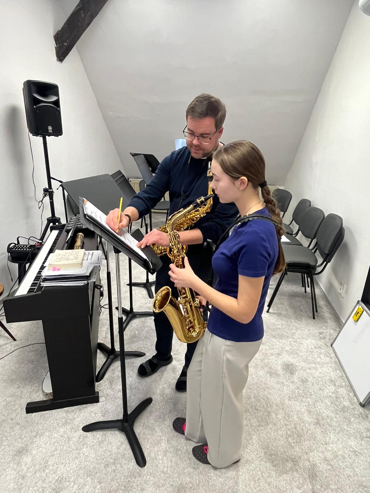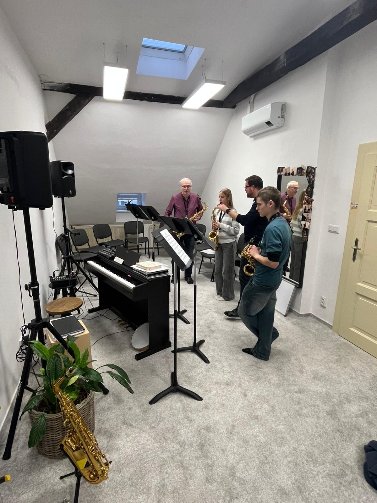 Dne 3. 2. 2026 se v prostorách ZUŠ Nový Bor uskutečnil odborný seminář pro žáky saxofonových tříd Pavla Hrice a Barbory Ptáčkové, který vedl pedagog Jan Vávra (ZUŠ Semily). Seminář proběhl v rámci inovativního vzdělávání a byl především zaměřen na cílenou přípravu koncertu saxofonů, který se uskuteční 24. 3. 2026 v ZUŠ Nový Bor.