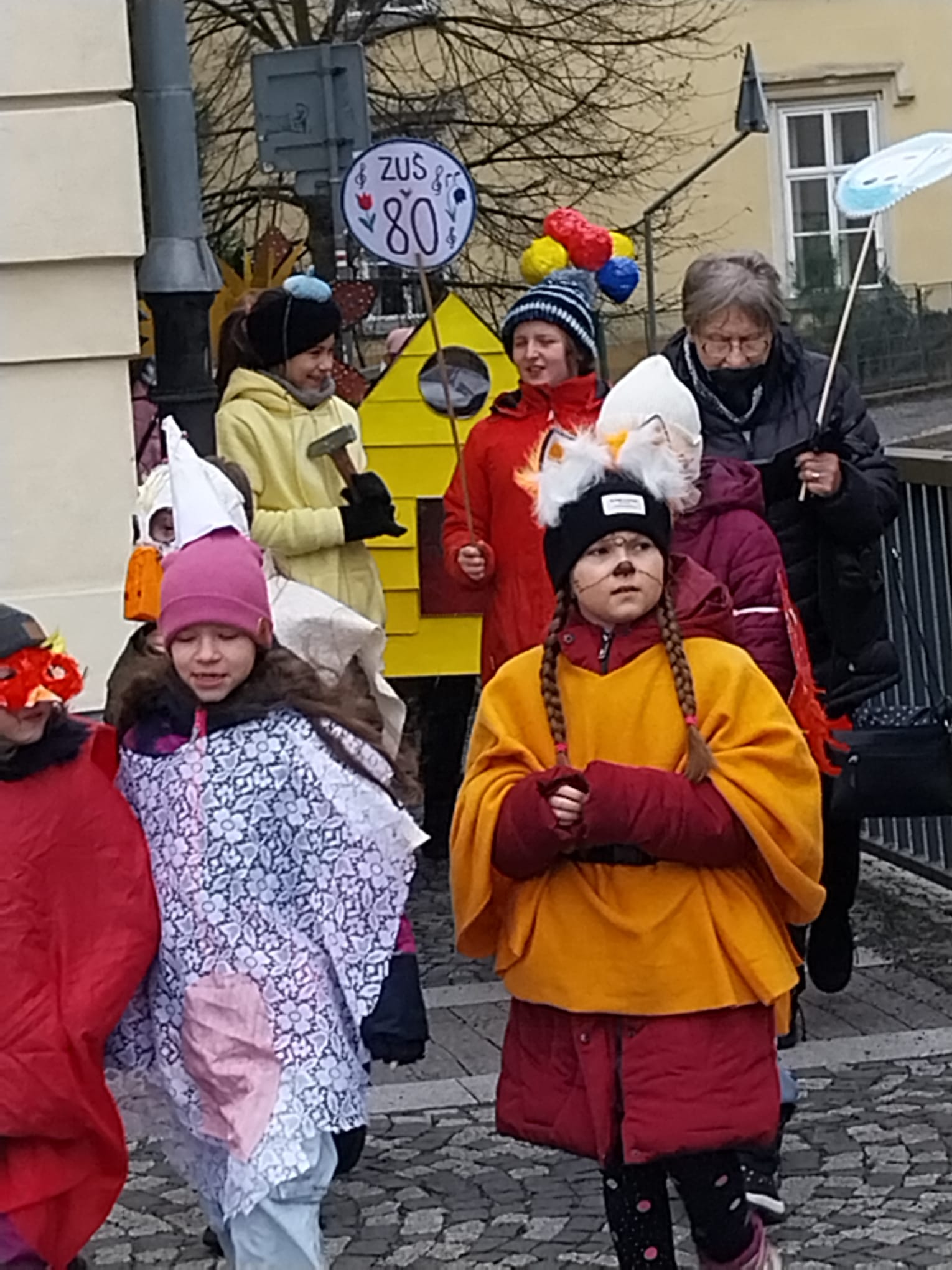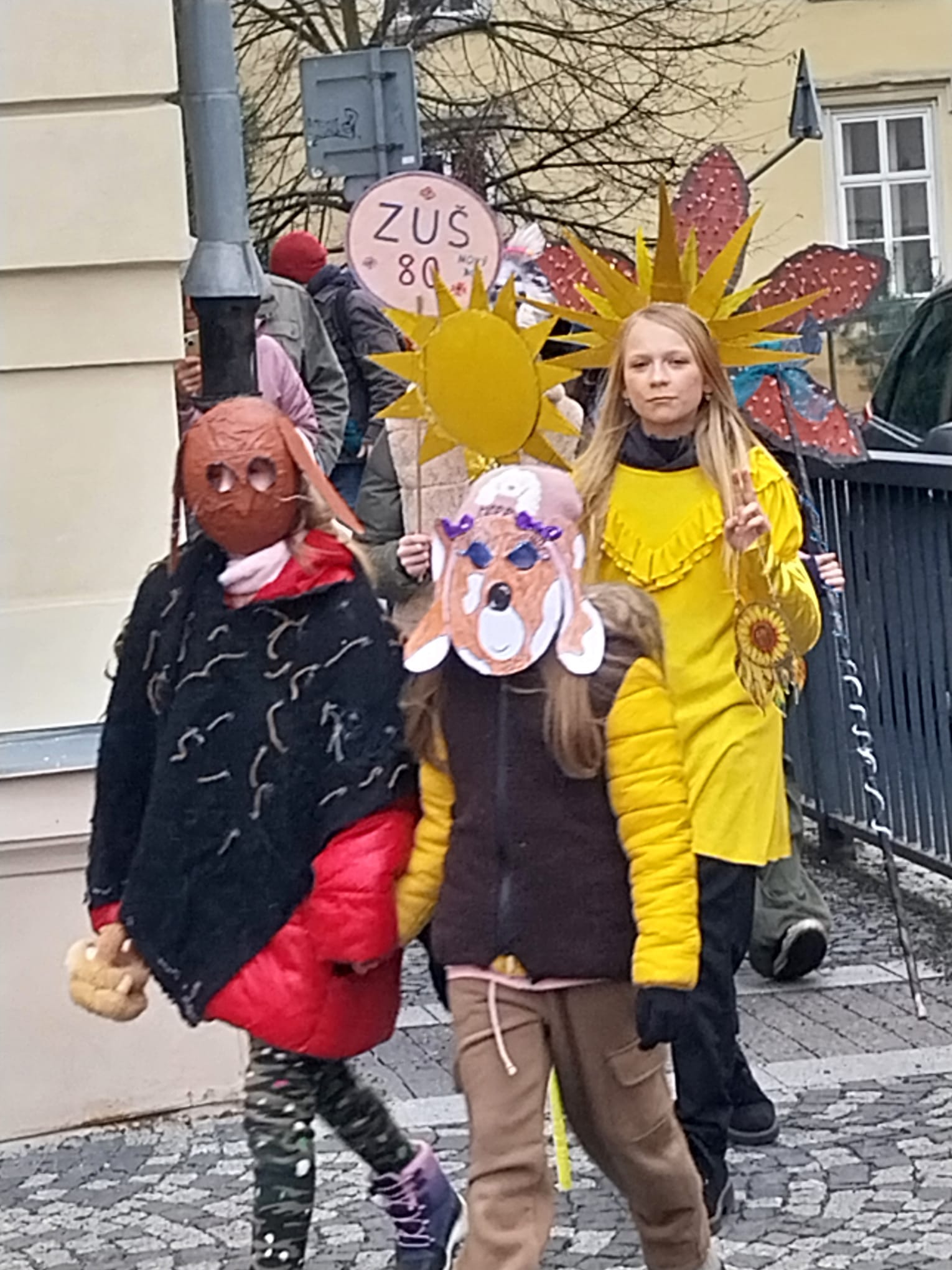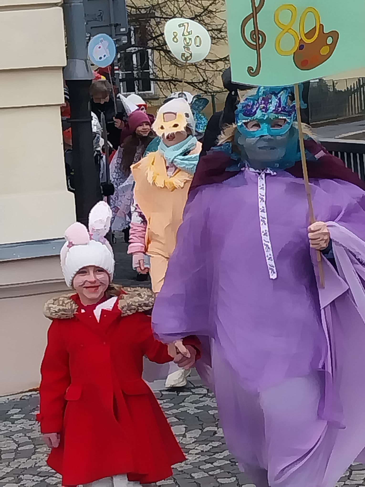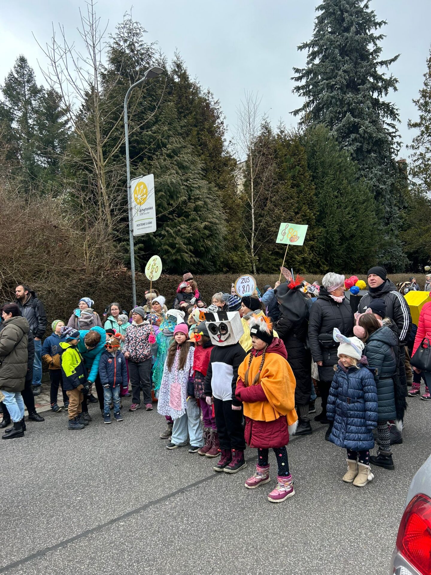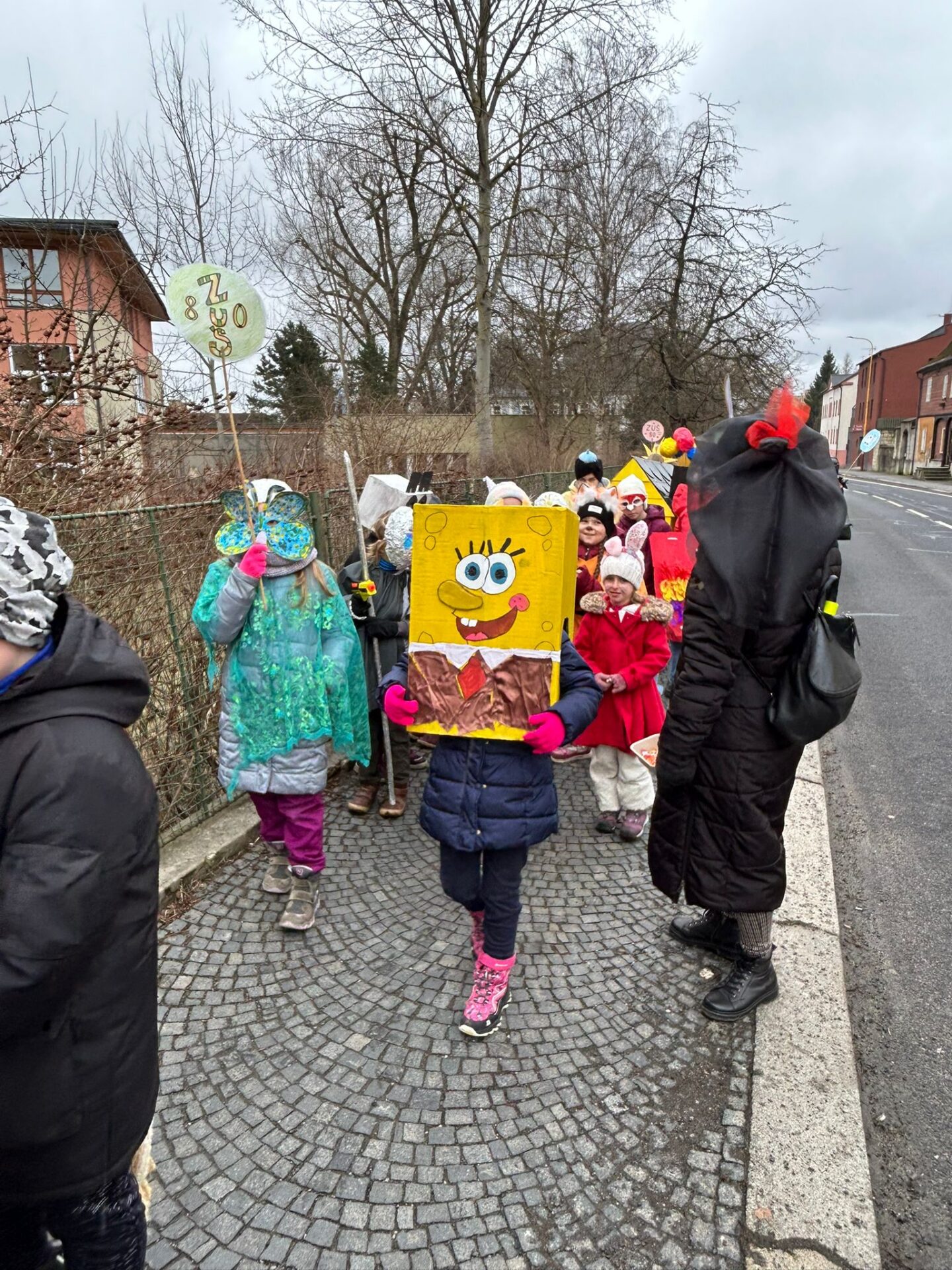 Přípravě jsme stejně jako v minulých letech věnovali mnoho času, během kterého vznikly krásné masky a kostýmy. V sobotu 14. února 2026 se tak téměř třicet dětí v originálních maskách zapojilo do masopustního průvodu. Spolu s jejich rodiči jsme v průvodu za bubeníky, mažoretkami a tanečnicemi prošli v rytmu samby městem až na náměstí, kde se konal další program.