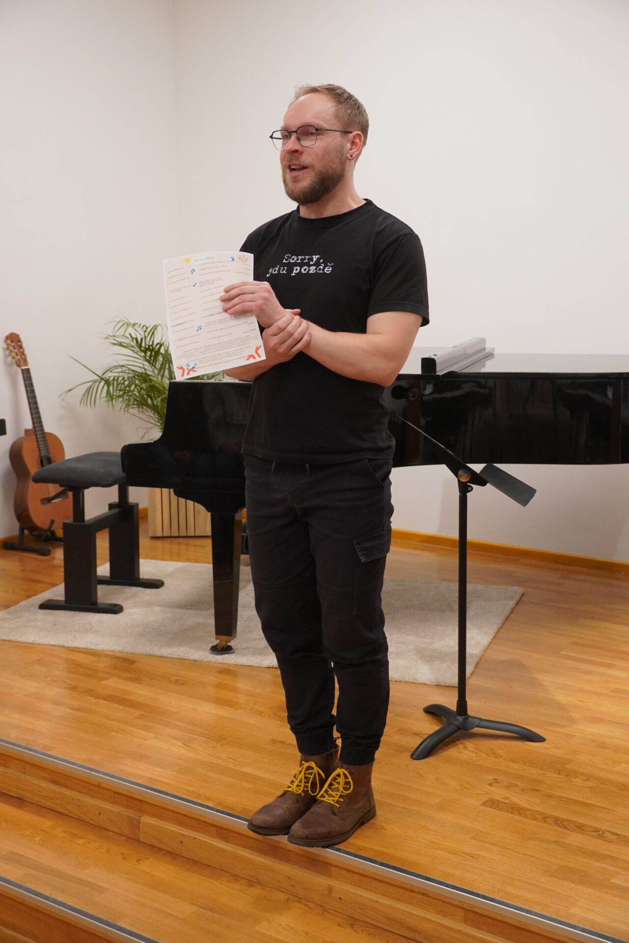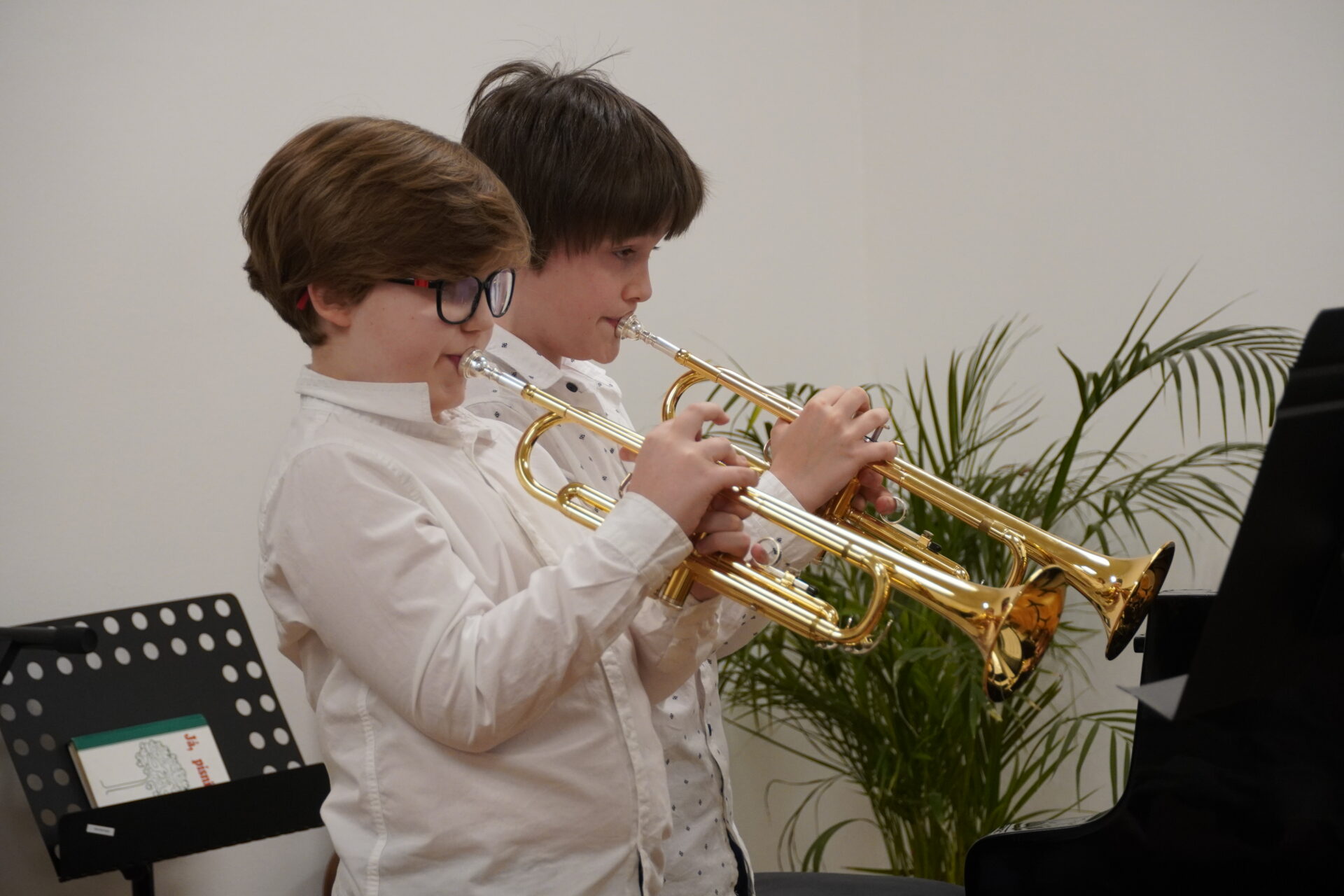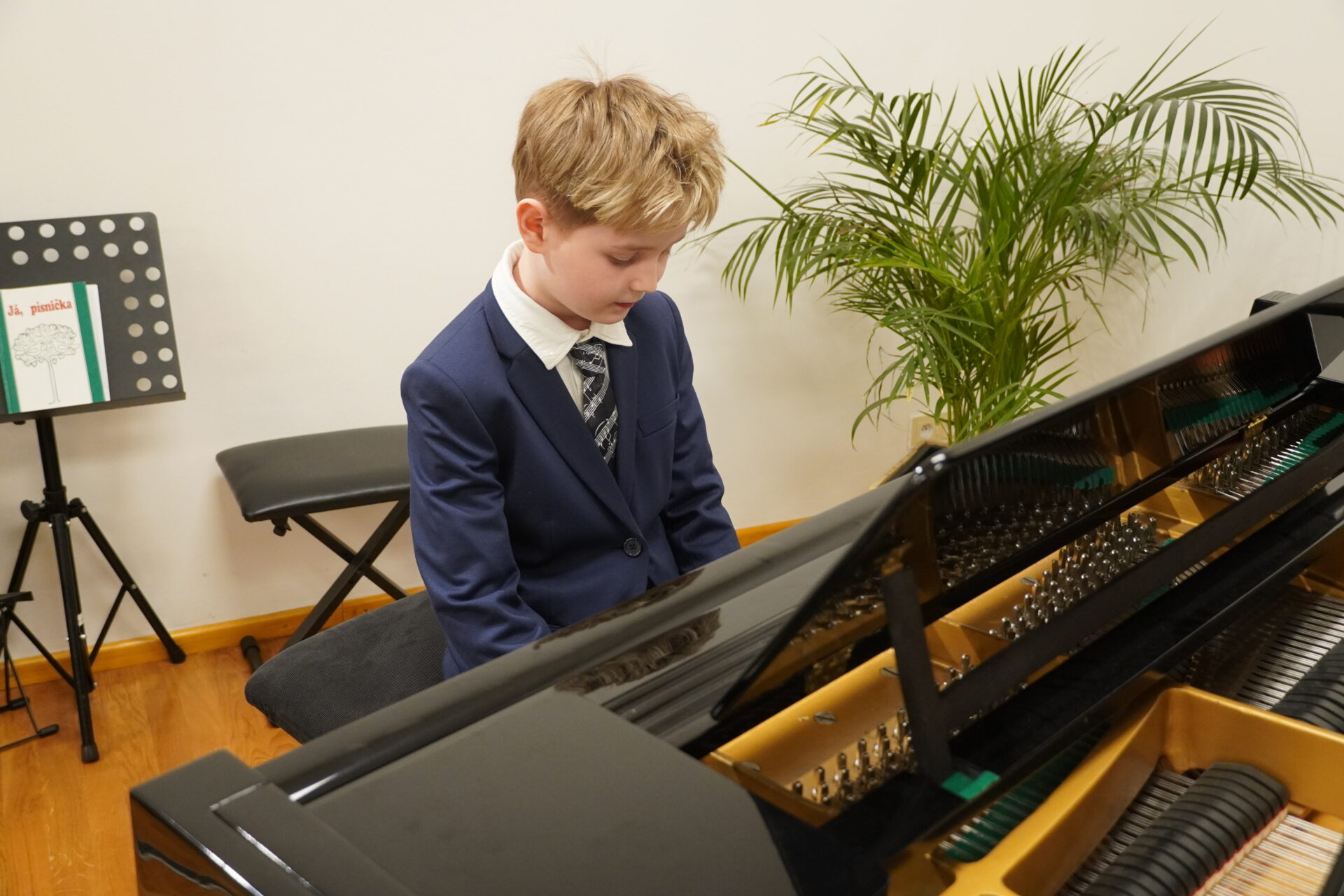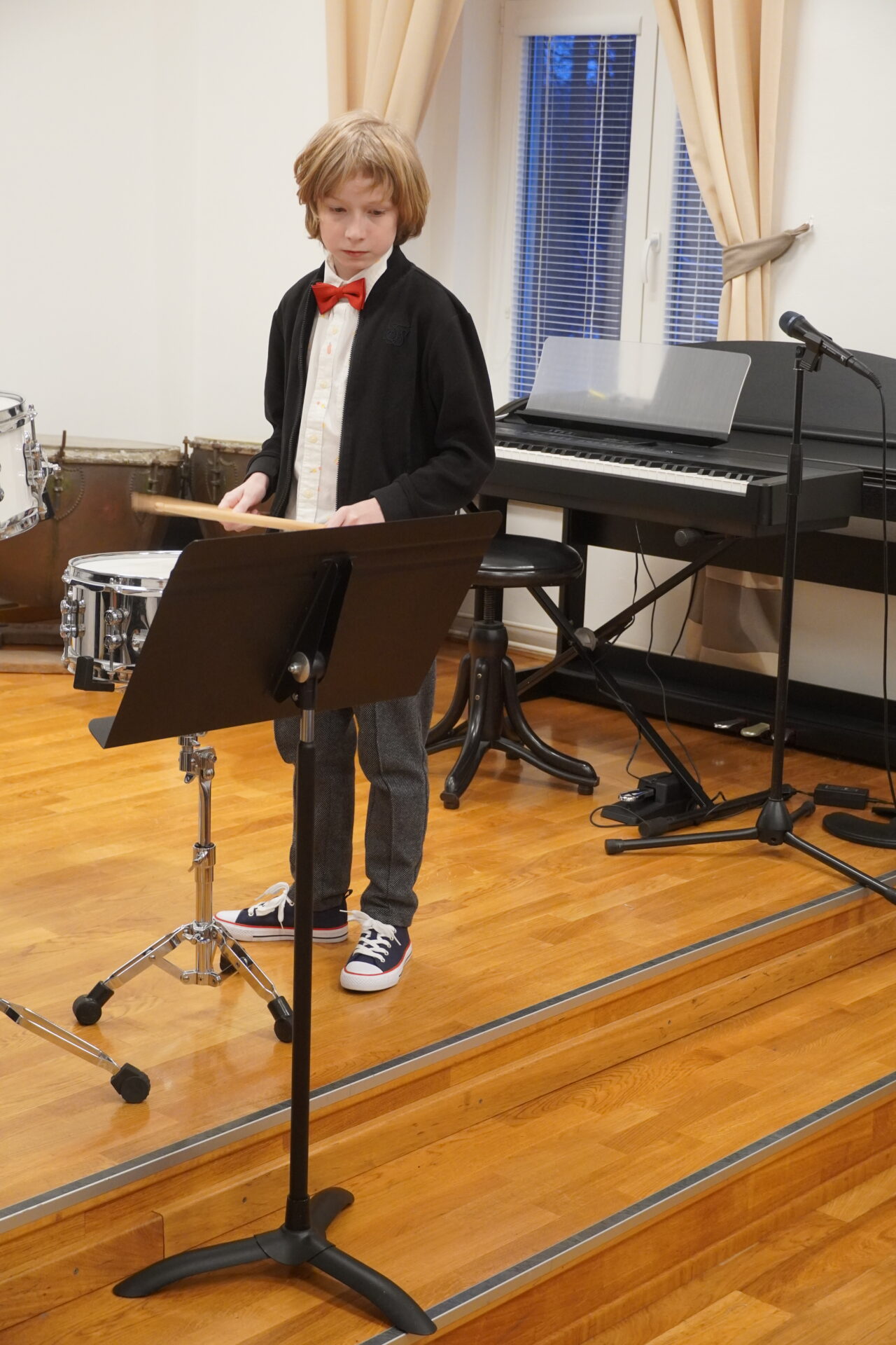 V úterý 17. února se uskutečnil v tomto školním roce poslední hudební podvečer. Program zahájil lidovými písněmi Žesťsoubor sestávající ze čtyř baskřídlovek a dvou trubek pod vedením pana učitele Jungmana. V pestrém programu nechyběly skladby pro klavír, zobcové a příčné flétny, trubky, baskřídlovky, saxofon, housle, kytaru, bicí nástroje a sólový zpěv. Kromě sólistů vystoupili instrumentalisté v řadě čísel v komorním obsazení. Celým koncertem provedl posluchače příjemně odlehčeným tónem pan učitel Jiskra.