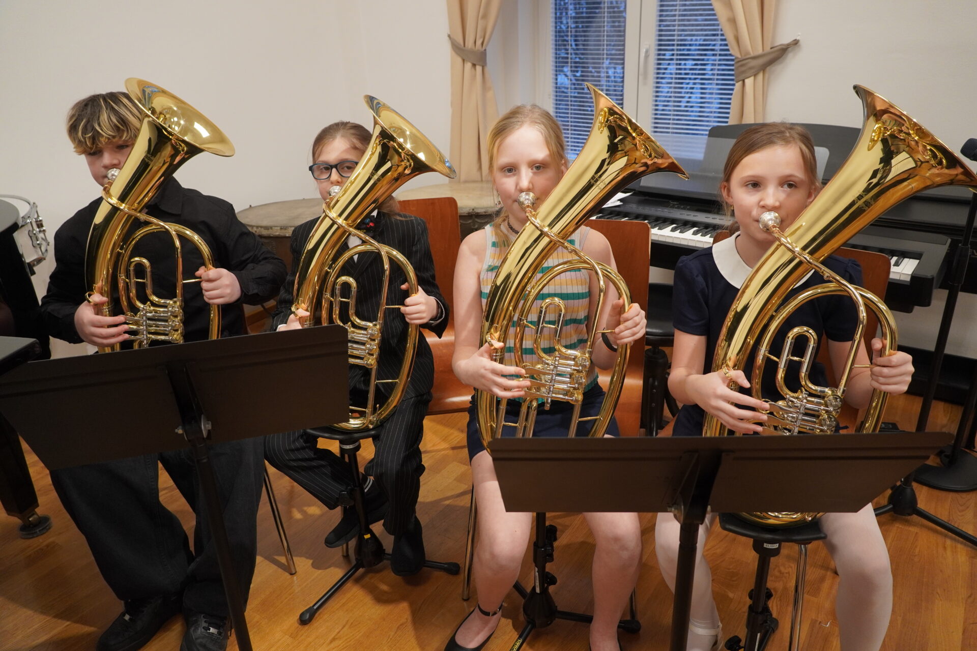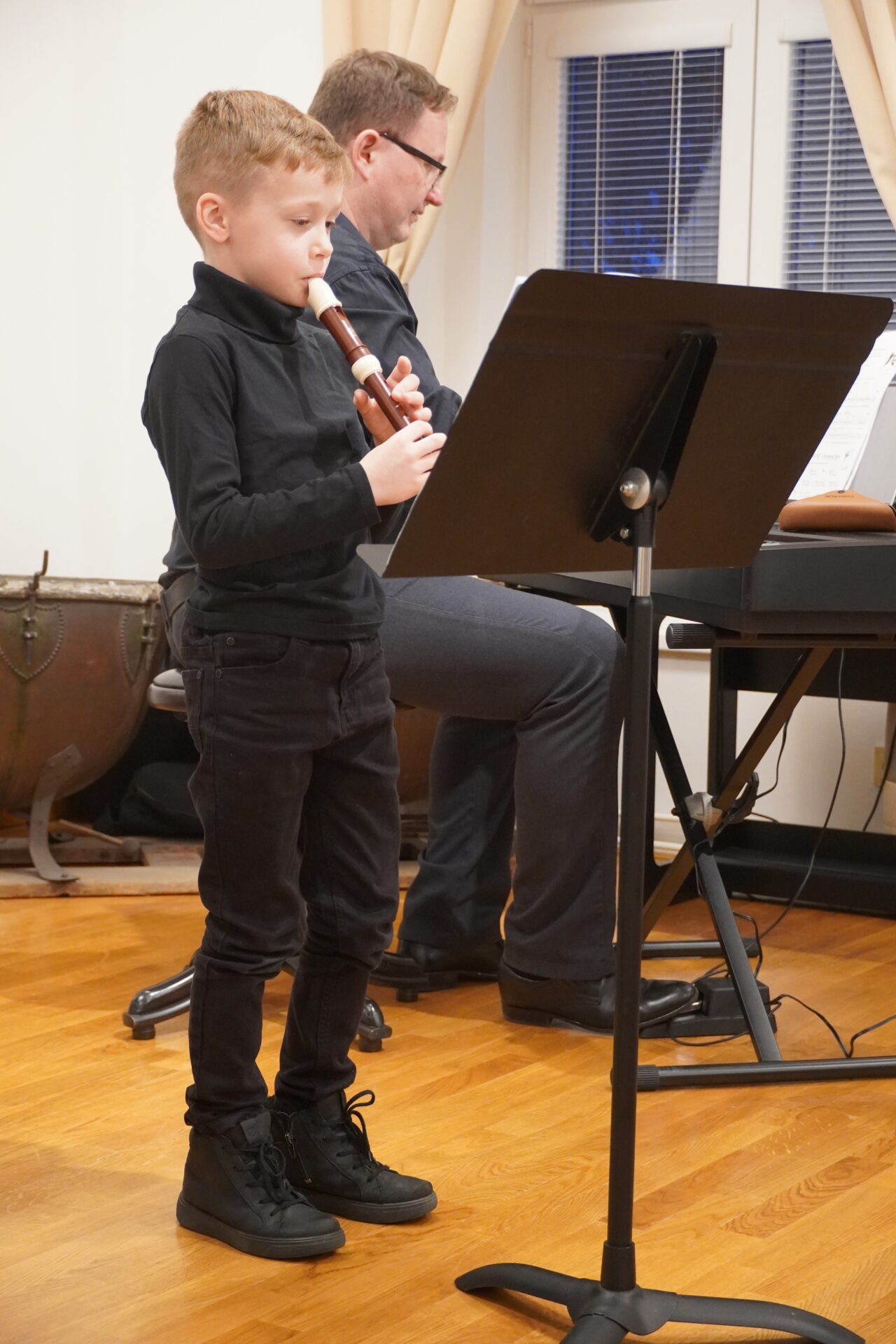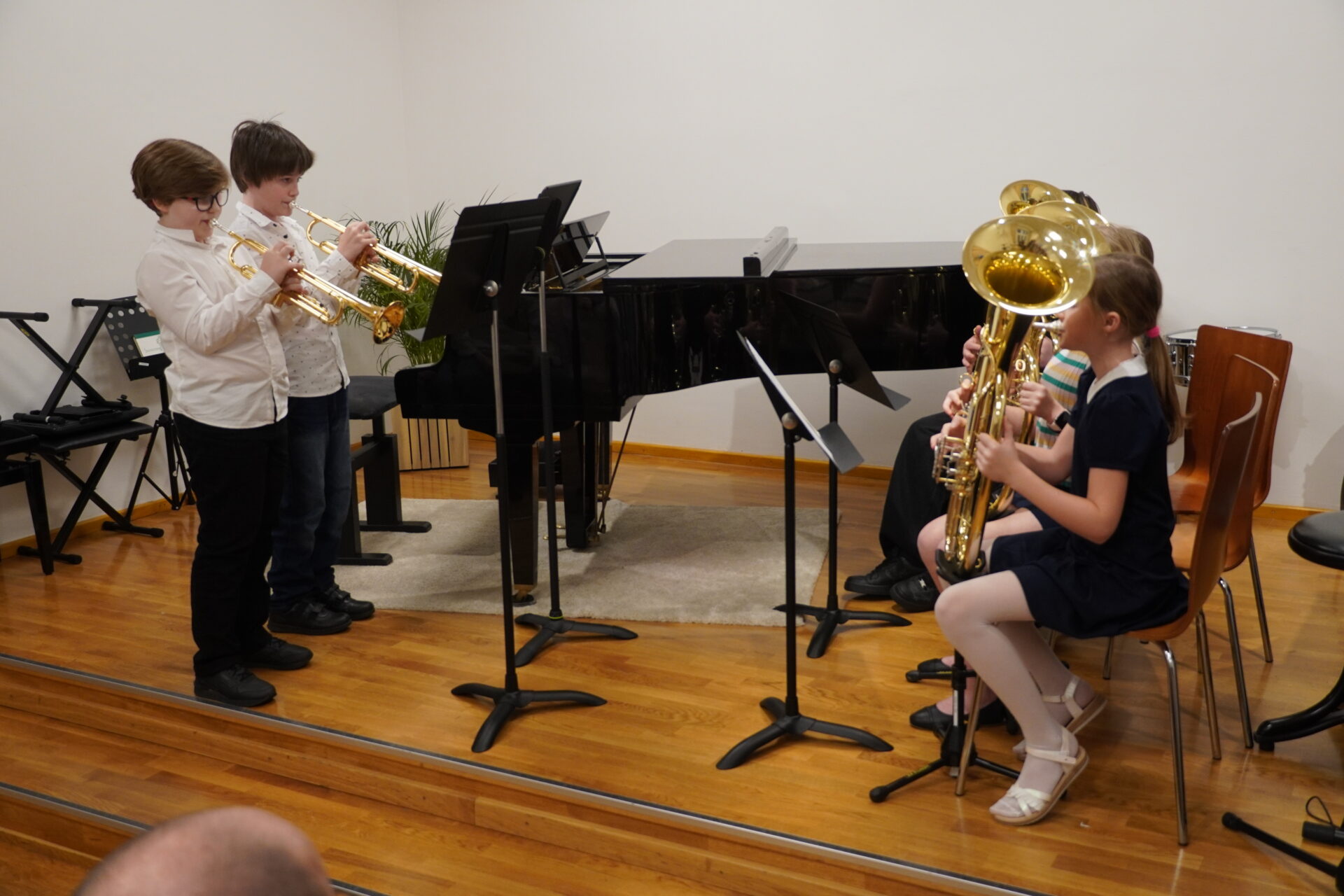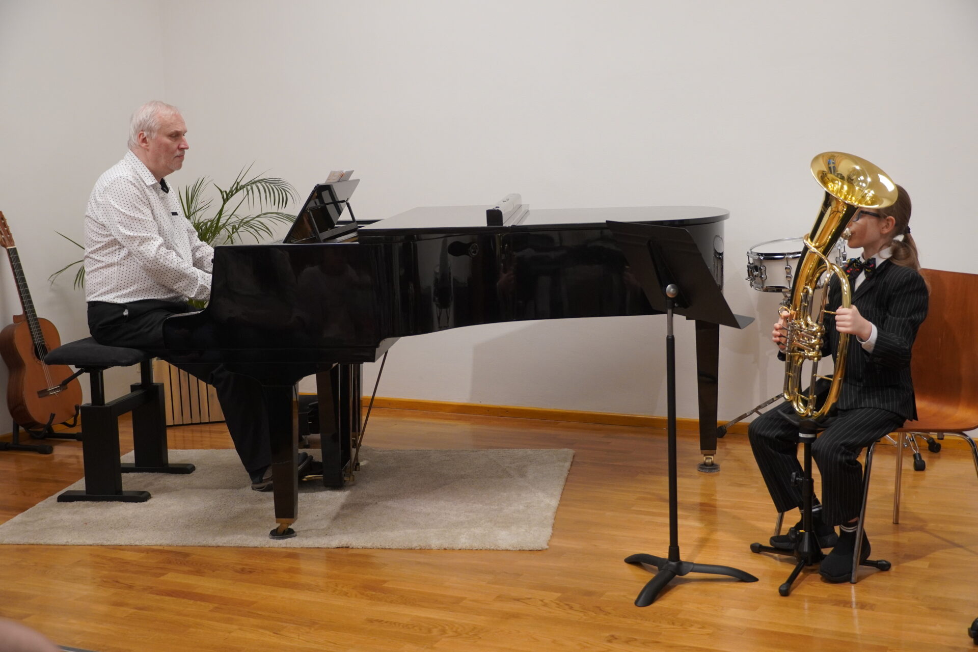 V úterý 17. února se uskutečnil v tomto školním roce poslední hudební podvečer. Program zahájil lidovými písněmi Žesťsoubor sestávající ze čtyř baskřídlovek a dvou trubek pod vedením pana učitele Jungmana. V pestrém programu nechyběly skladby pro klavír, zobcové a příčné flétny, trubky, baskřídlovky, saxofon, housle, kytaru, bicí nástroje a sólový zpěv. Kromě sólistů vystoupili instrumentalisté v řadě čísel v komorním obsazení. Celým koncertem provedl posluchače příjemně odlehčeným tónem pan učitel Jiskra.