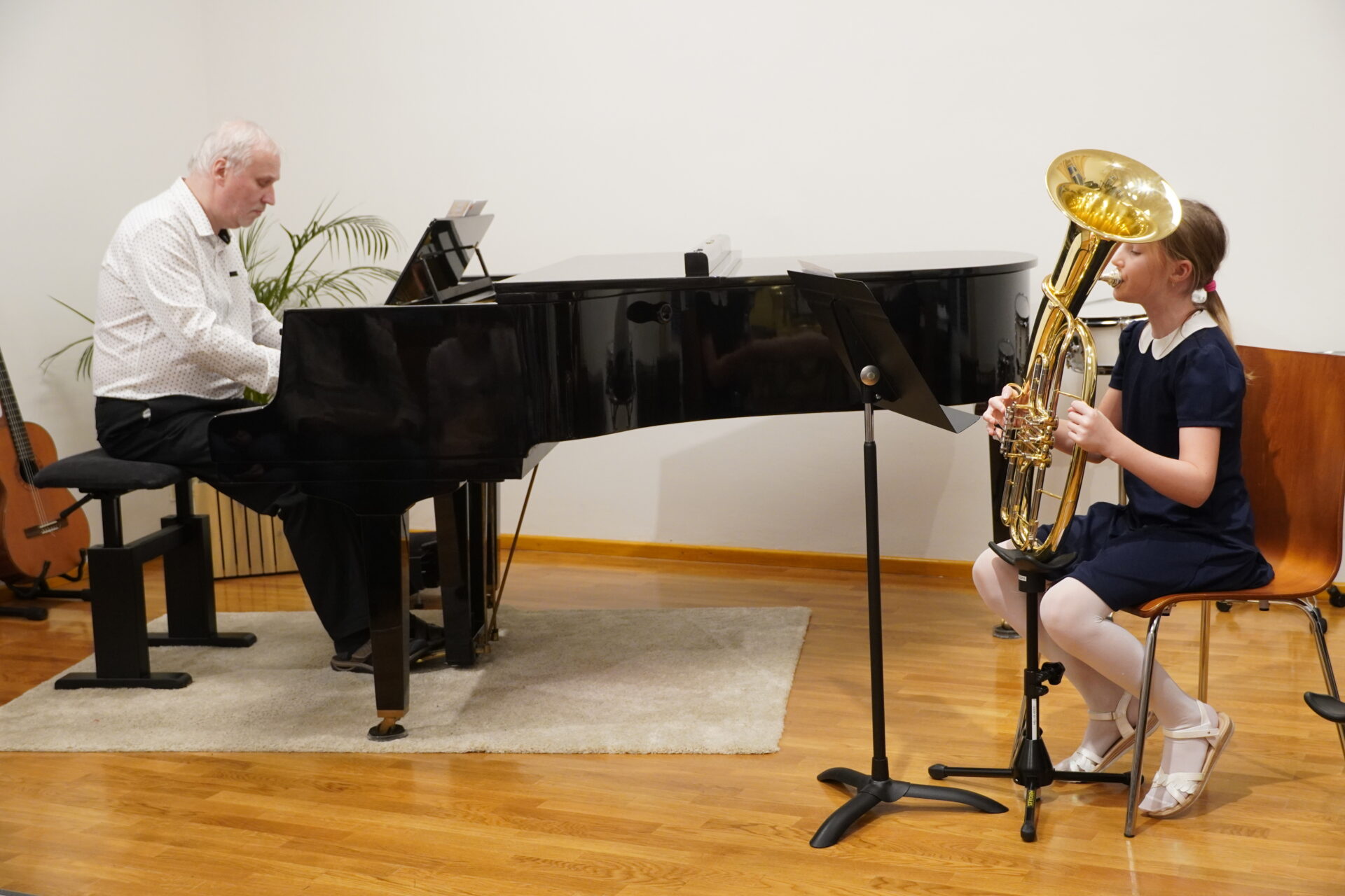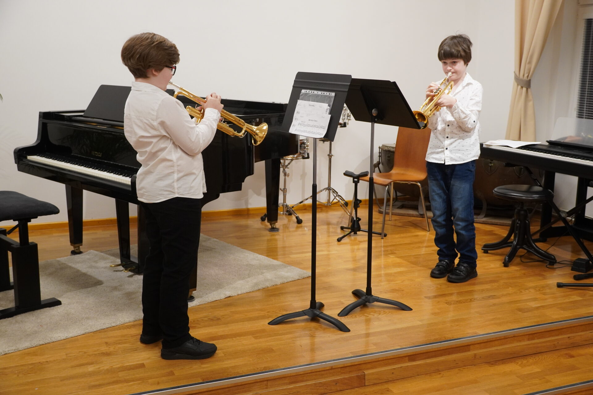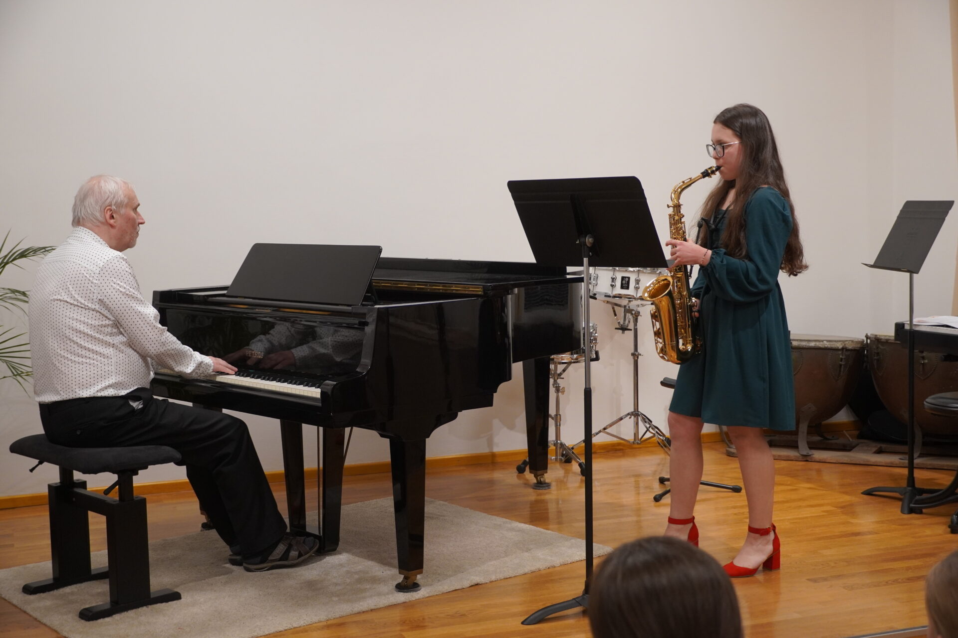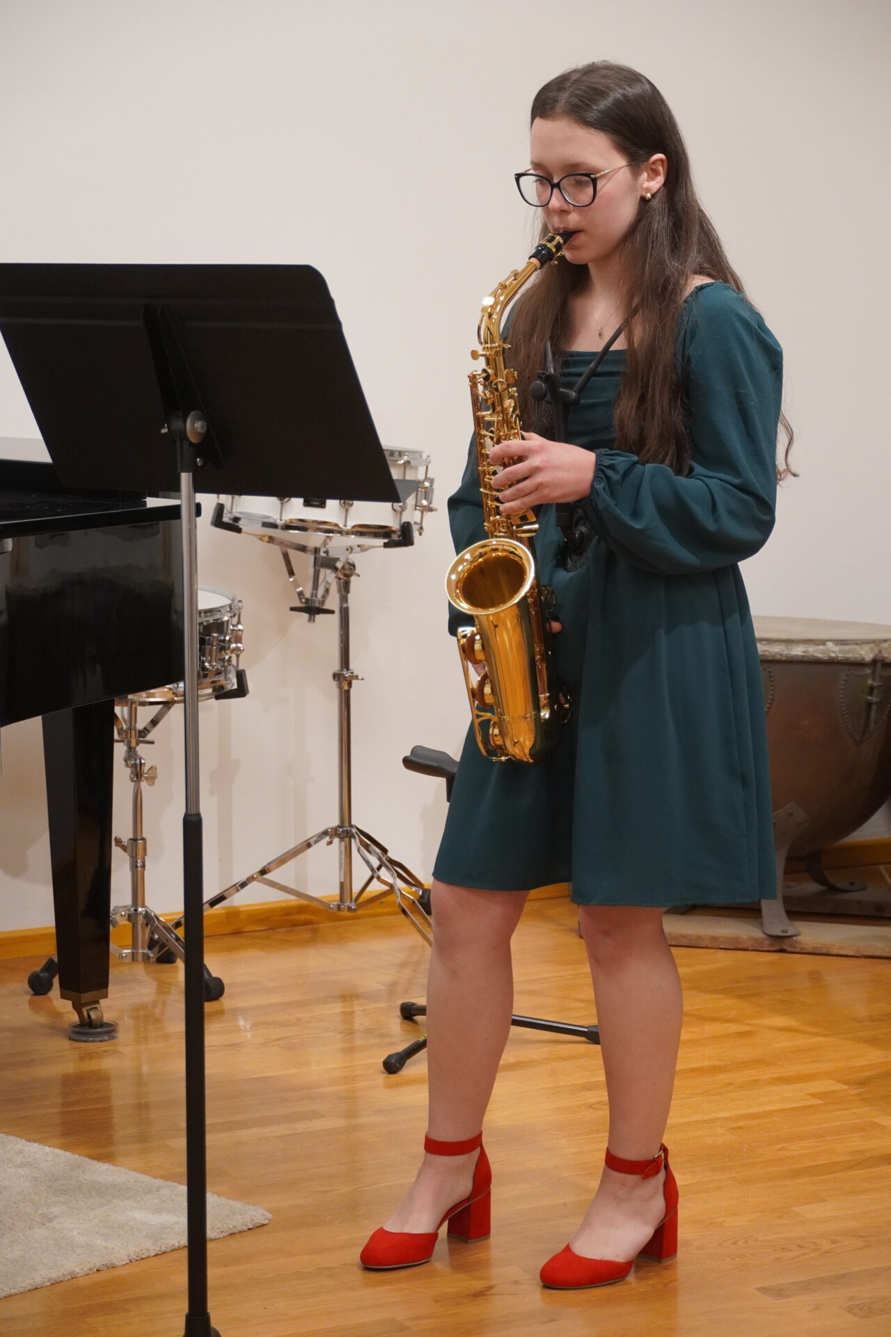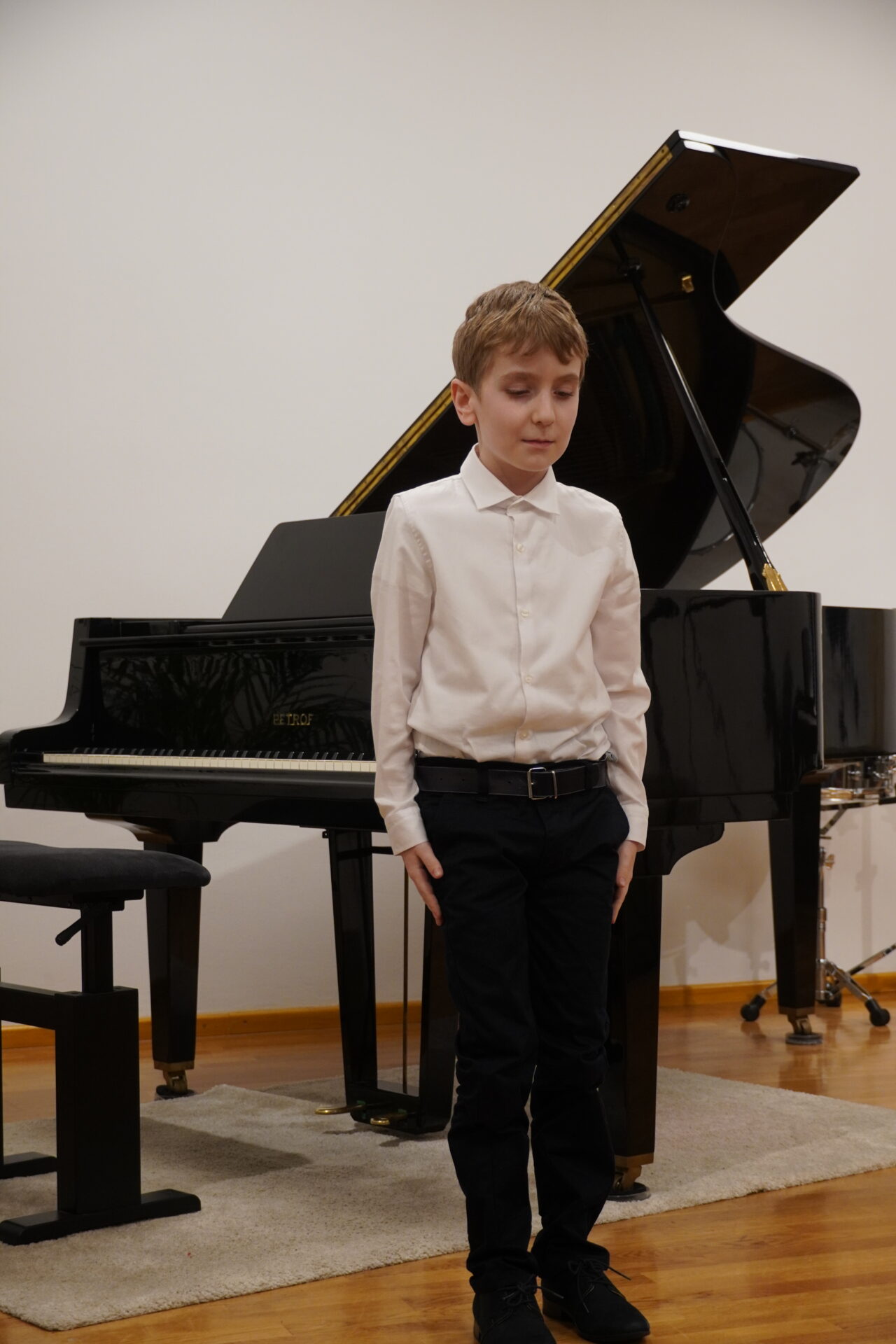 V úterý 17. února se uskutečnil v tomto školním roce poslední hudební podvečer. Program zahájil lidovými písněmi Žesťsoubor sestávající ze čtyř baskřídlovek a dvou trubek pod vedením pana učitele Jungmana. V pestrém programu nechyběly skladby pro klavír, zobcové a příčné flétny, trubky, baskřídlovky, saxofon, housle, kytaru, bicí nástroje a sólový zpěv. Kromě sólistů vystoupili instrumentalisté v řadě čísel v komorním obsazení. Celým koncertem provedl posluchače příjemně odlehčeným tónem pan učitel Jiskra.