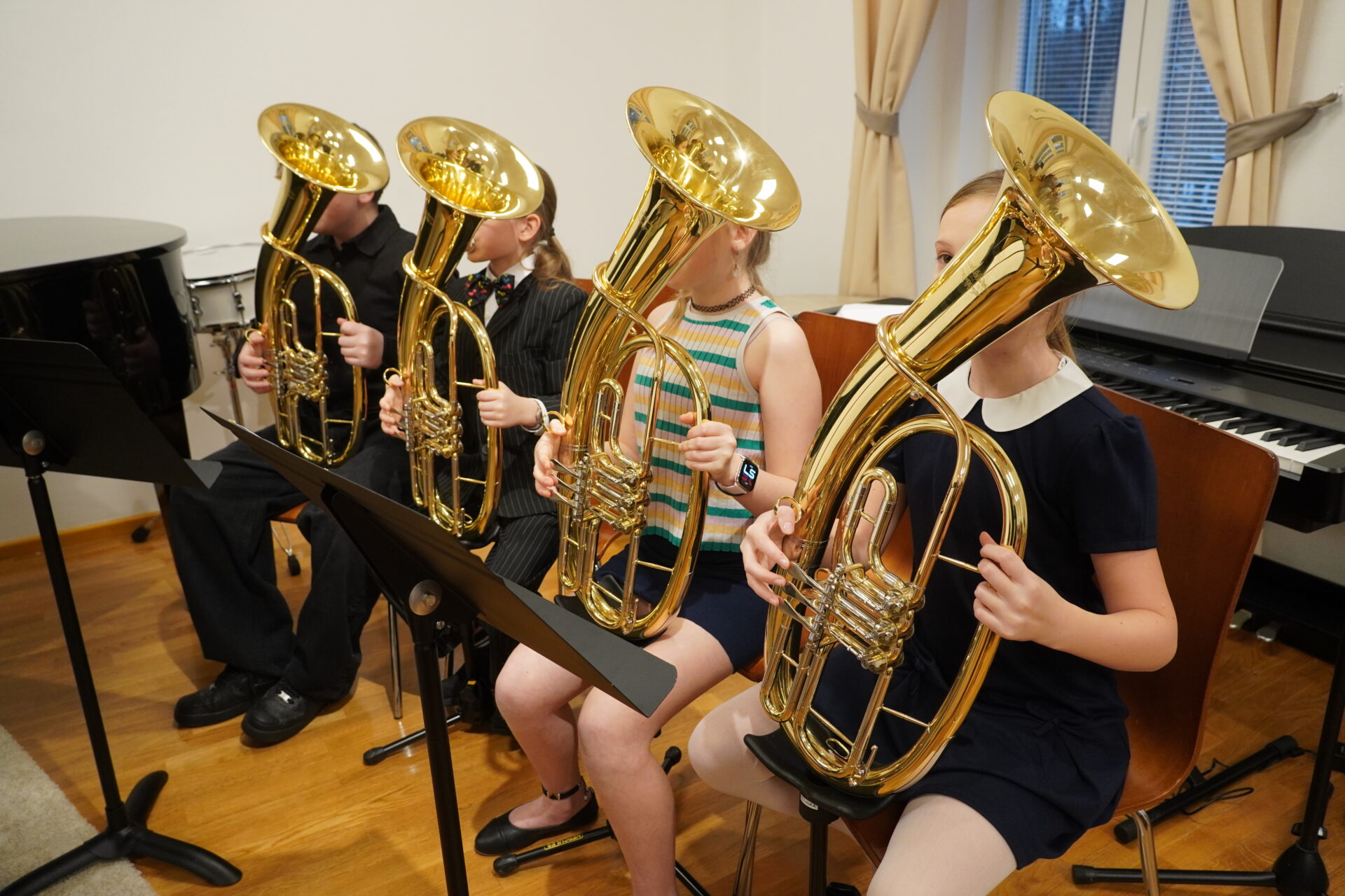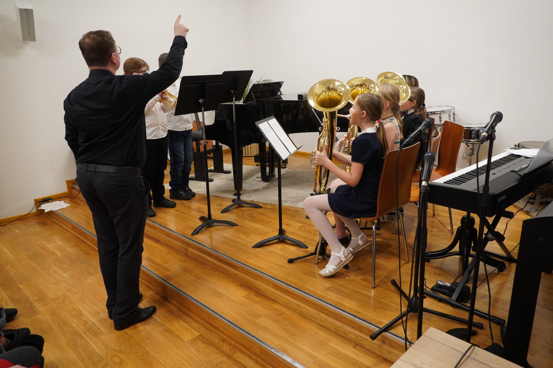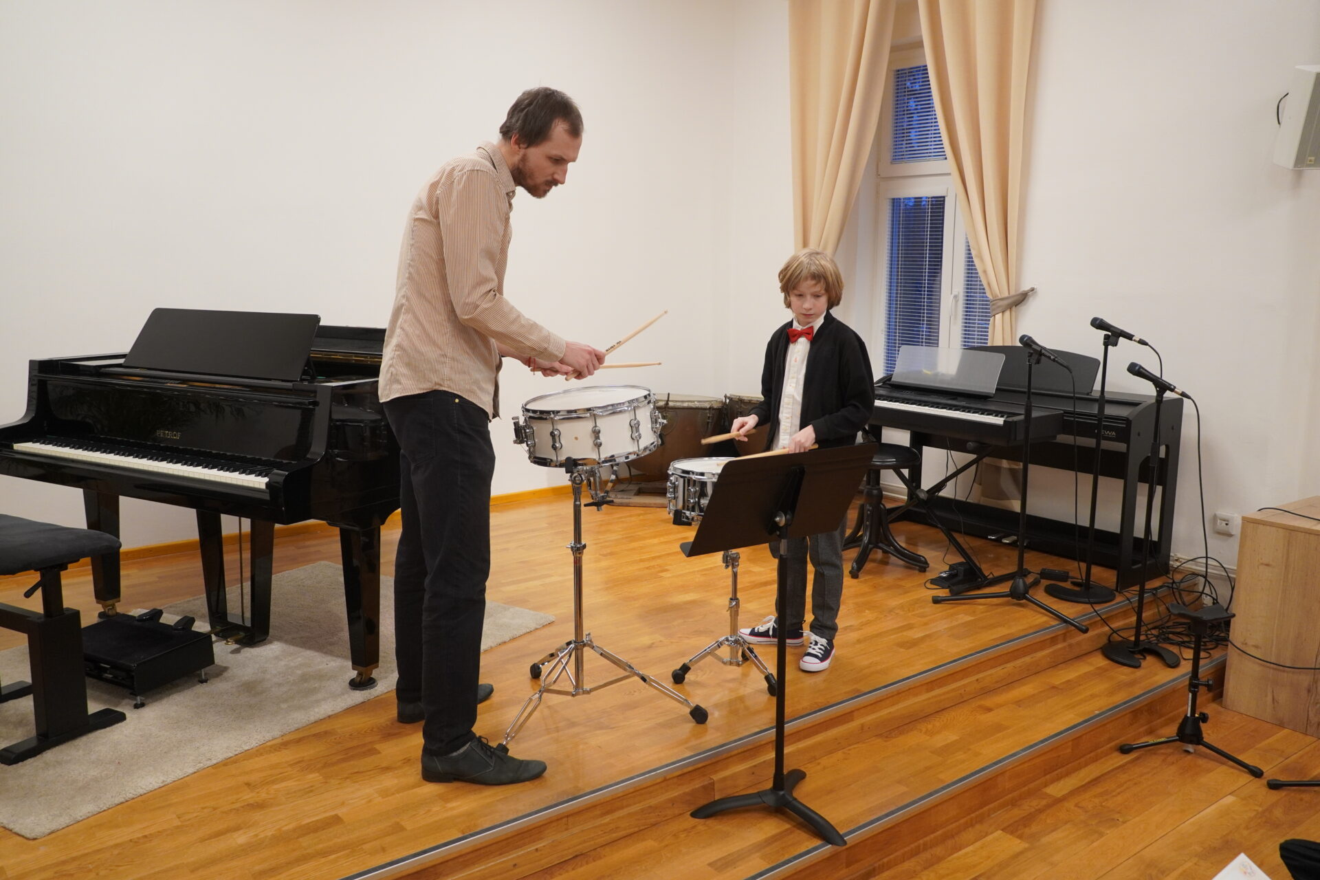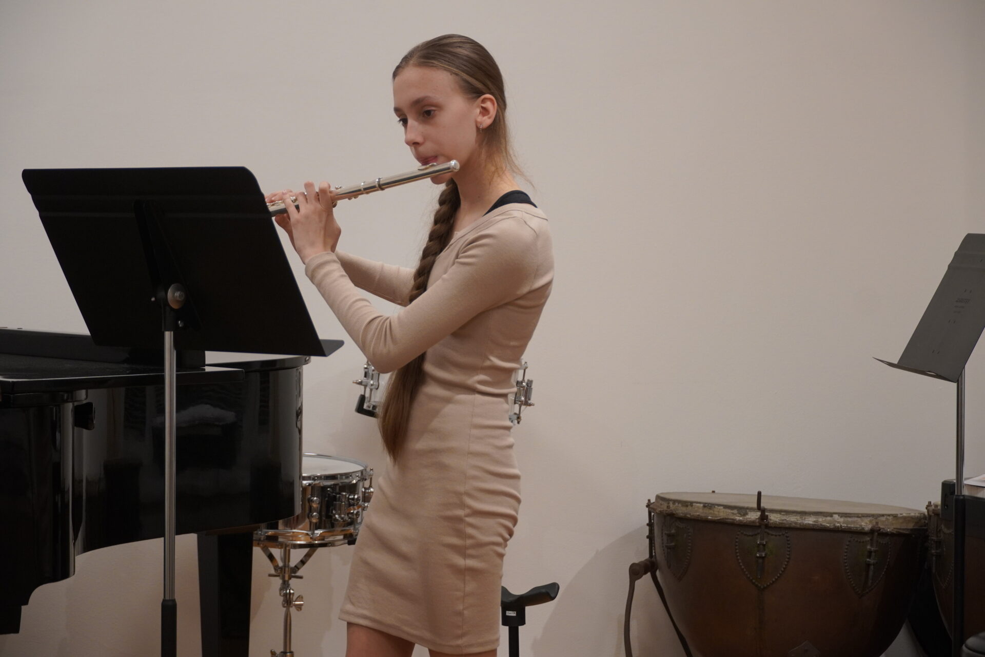 V úterý 17. února se uskutečnil v tomto školním roce poslední hudební podvečer. Program zahájil lidovými písněmi Žesťsoubor sestávající ze čtyř baskřídlovek a dvou trubek pod vedením pana učitele Jungmana. V pestrém programu nechyběly skladby pro klavír, zobcové a příčné flétny, trubky, baskřídlovky, saxofon, housle, kytaru, bicí nástroje a sólový zpěv. Kromě sólistů vystoupili instrumentalisté v řadě čísel v komorním obsazení. Celým koncertem provedl posluchače příjemně odlehčeným tónem pan učitel Jiskra.