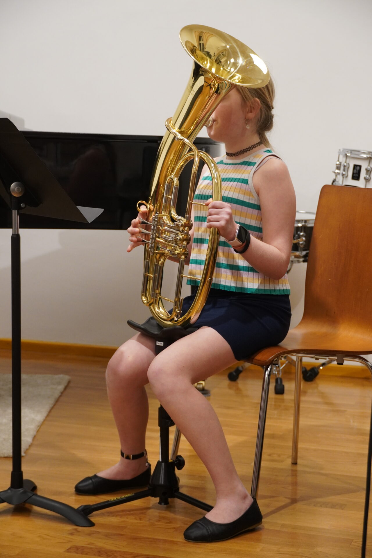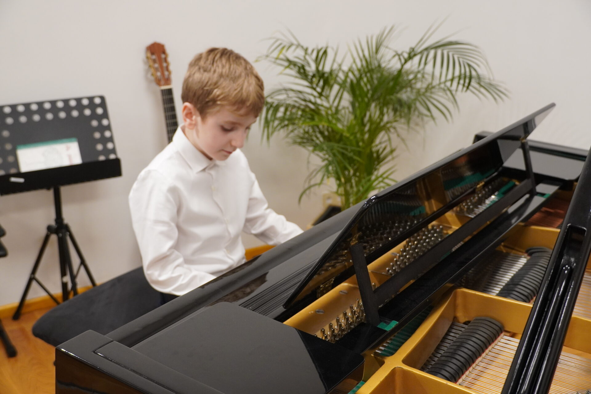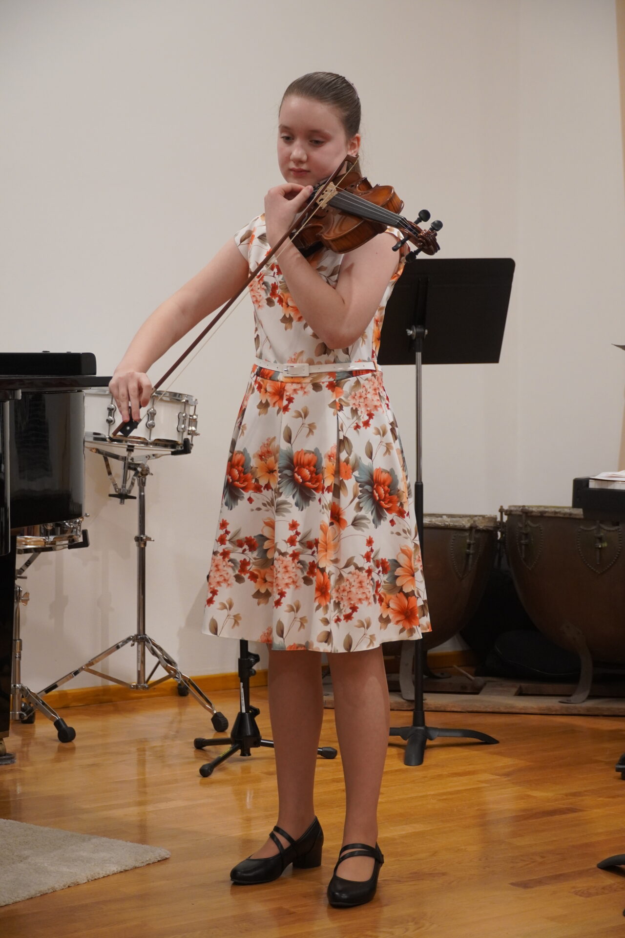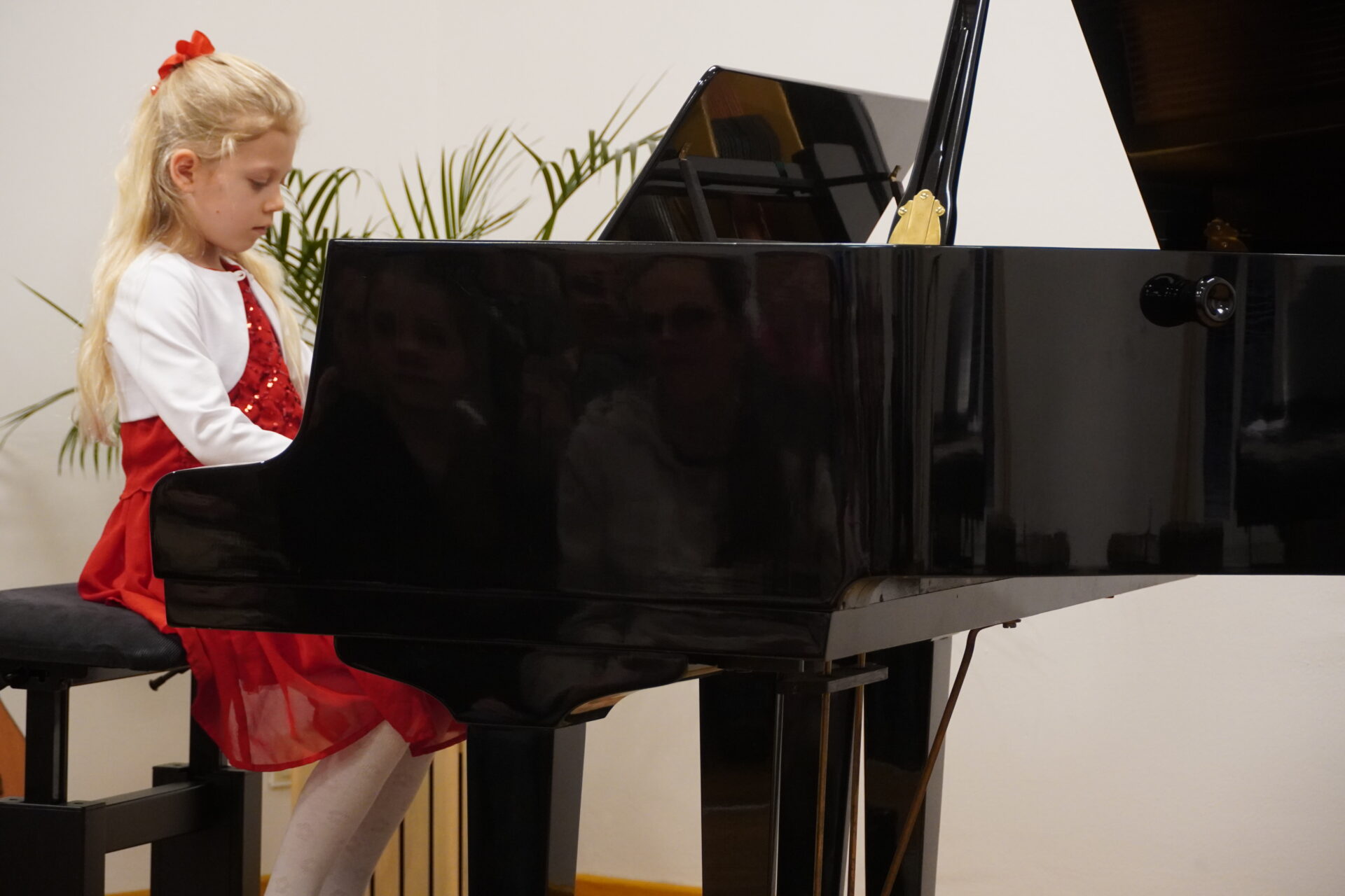V úterý 17. února se uskutečnil v tomto školním roce poslední hudební podvečer. Program zahájil lidovými písněmi Žesťsoubor sestávající ze čtyř baskřídlovek a dvou trubek pod vedením pana učitele Jungmana. V pestrém programu nechyběly skladby pro klavír, zobcové a příčné flétny, trubky, baskřídlovky, saxofon, housle, kytaru, bicí nástroje a sólový zpěv. Kromě sólistů vystoupili instrumentalisté v řadě čísel v komorním obsazení. Celým koncertem provedl posluchače příjemně odlehčeným tónem pan učitel Jiskra.