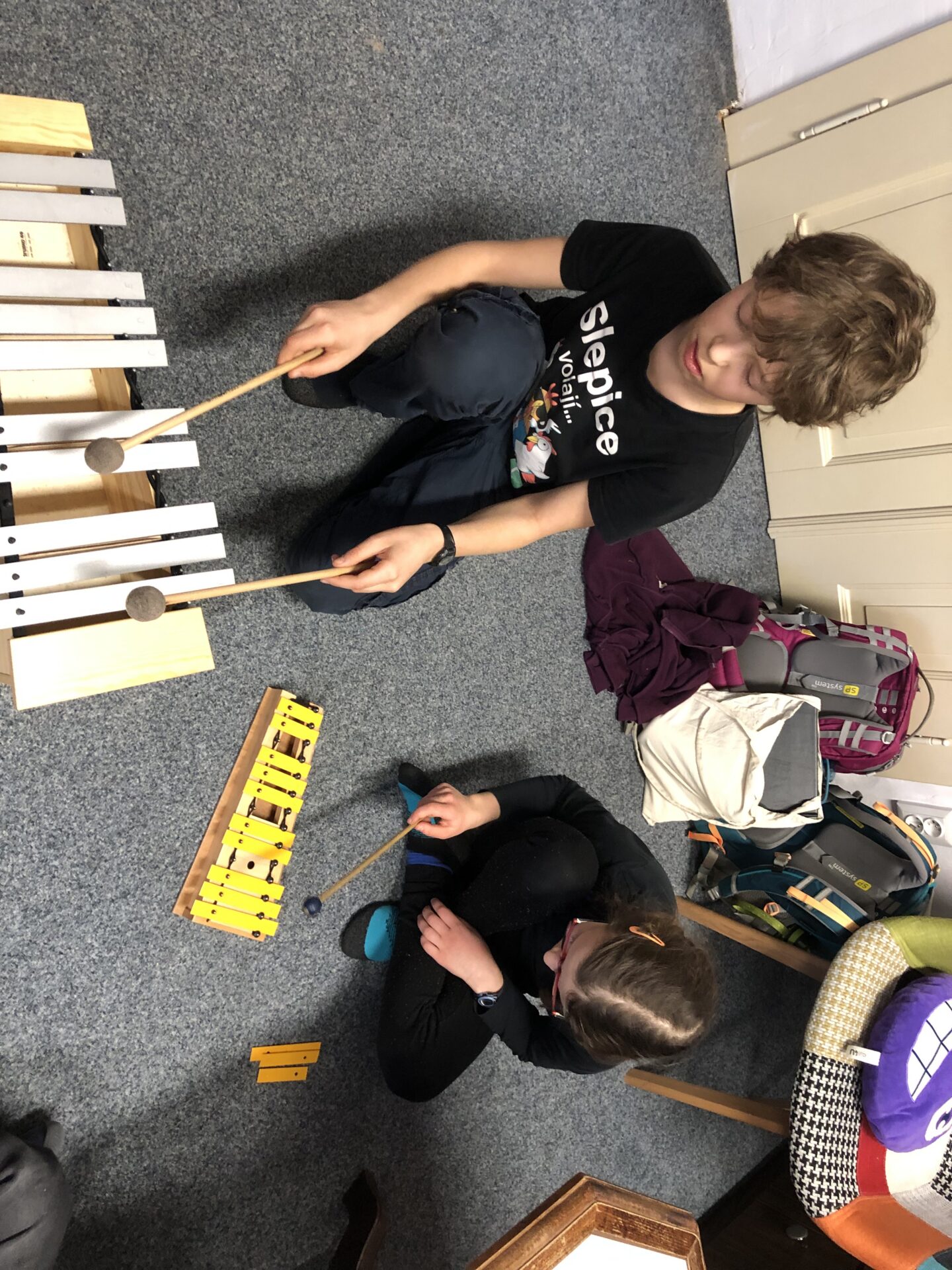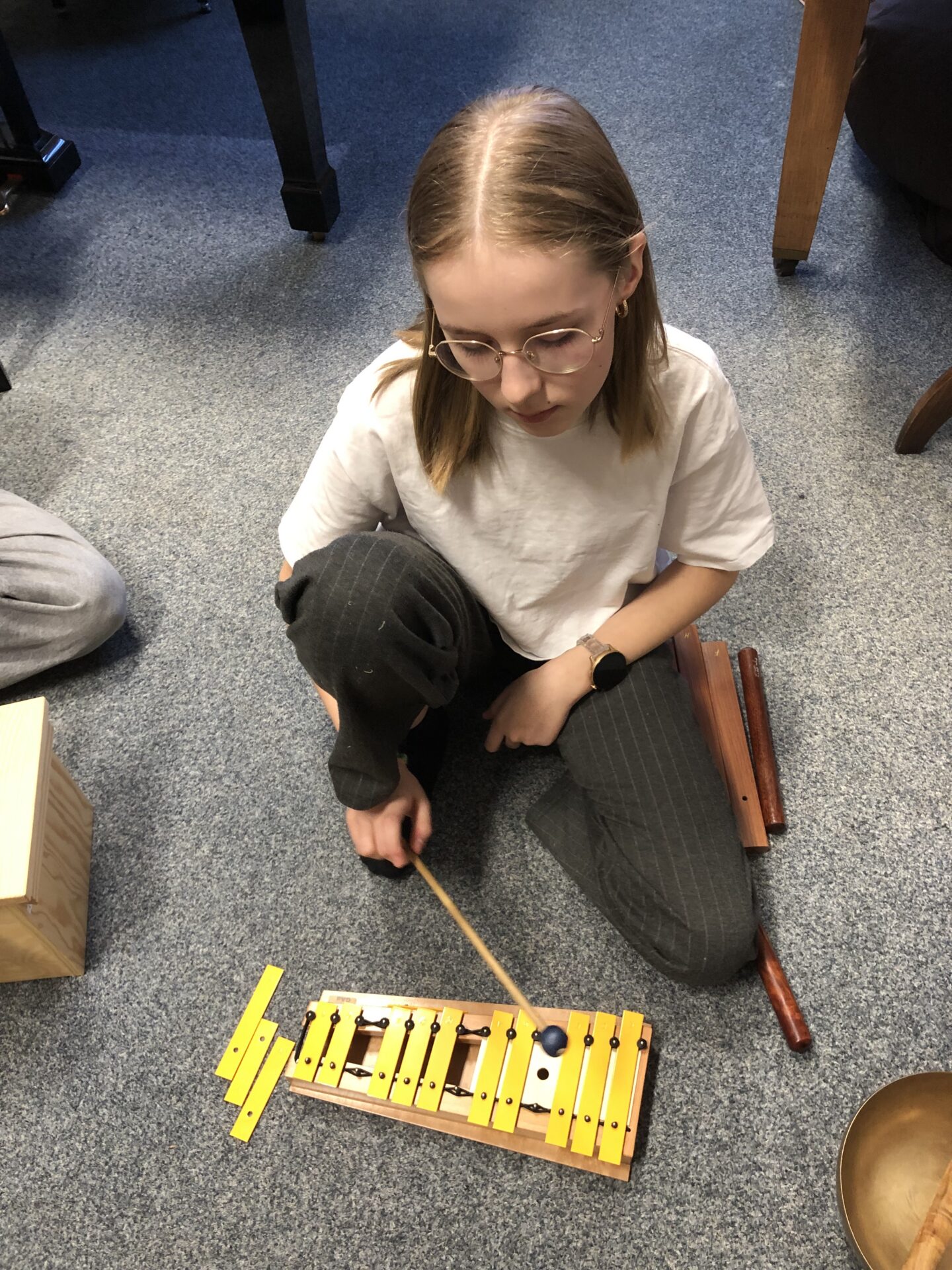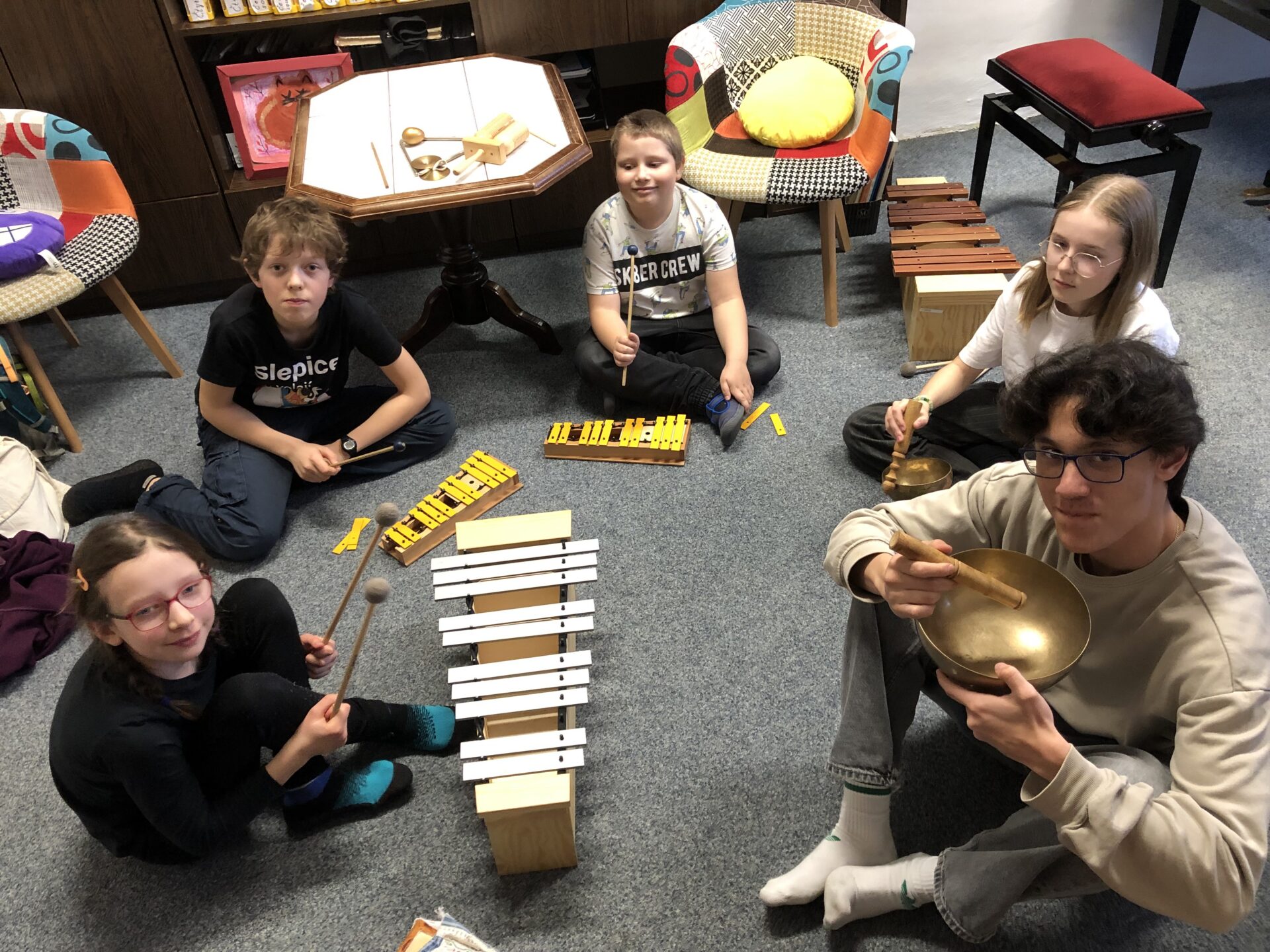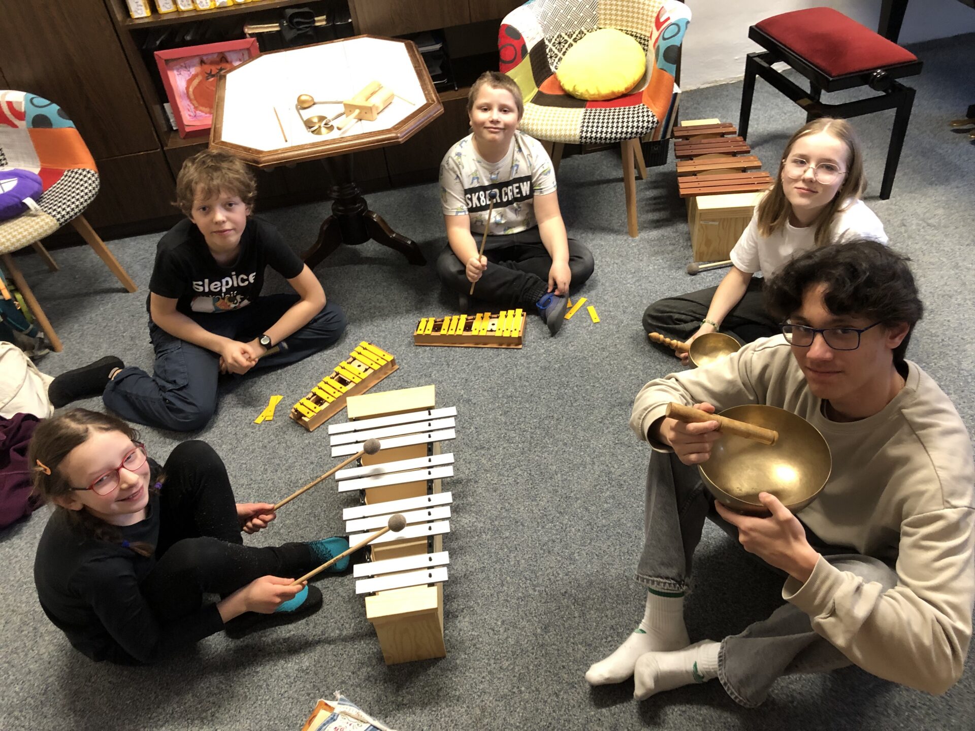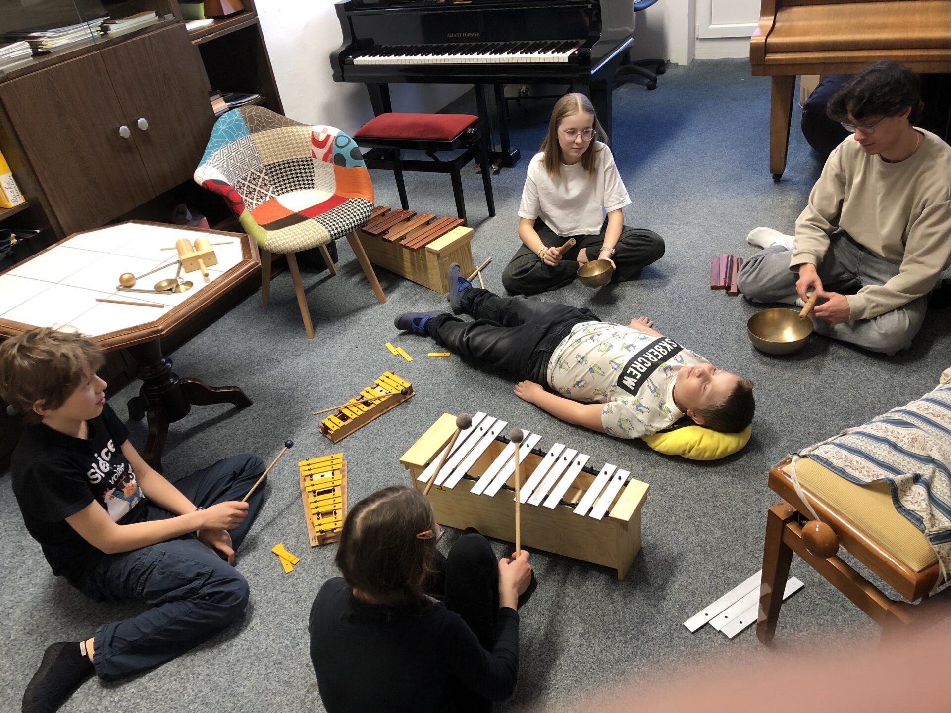 Hudební improvizaci si s dětmi užíváme dvakrát do roka na speciální dílně. Naplníme naši třídu hudebními nástroji jako je metalofon, xylofon, zvonkohra, dřívka, činely, buben a pak s nimi čarujeme. Letos jsme zvolili jako téma muzikoterapii a zvukomalbu. A tak nám přibyly i tibetské mísy, jejichž něžný a relaxační zvuk se krásně propojil s jemností metalofonu a zvonkoher. Vyzkoušeli jsme si navodit klidnou relaxační atmosféru a pomocí zvuků pohladit duši. Nejprve velmi ostýchavě, později s invencí a skvělými nápady hledaly děti harmonie a prolínání zvuků. A bavilo nás i vytvářet pomocí nástrojů déšť či třpyt hvězd, mlžný opar a další a další zvukomalebné doprovody. Občas je fajn, když si klavírista takhle odskočí k jiným nástrojům a užije si jejich barevnost. Děti dílny velmi bavily a já se těším, co vymyslíme na příště.