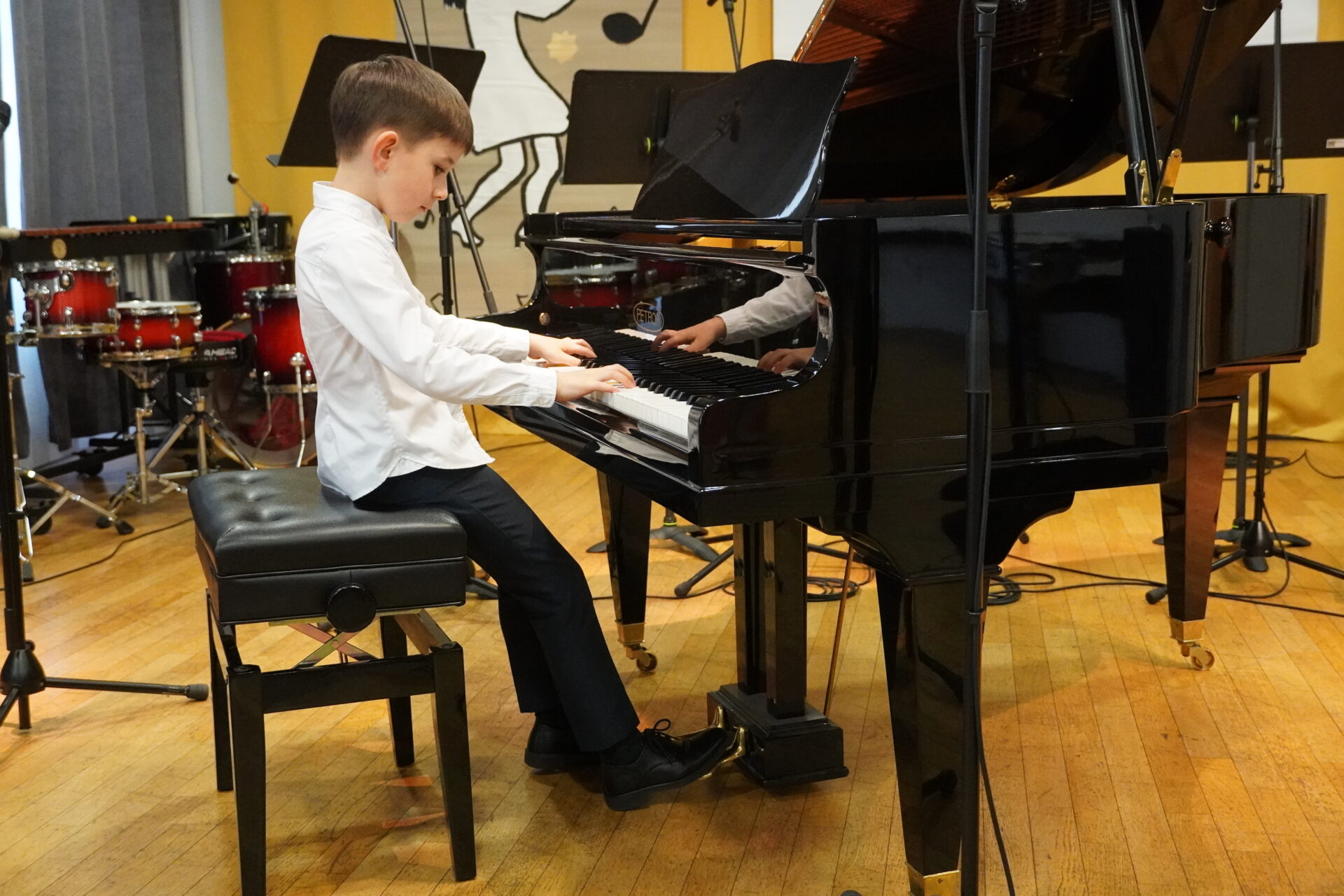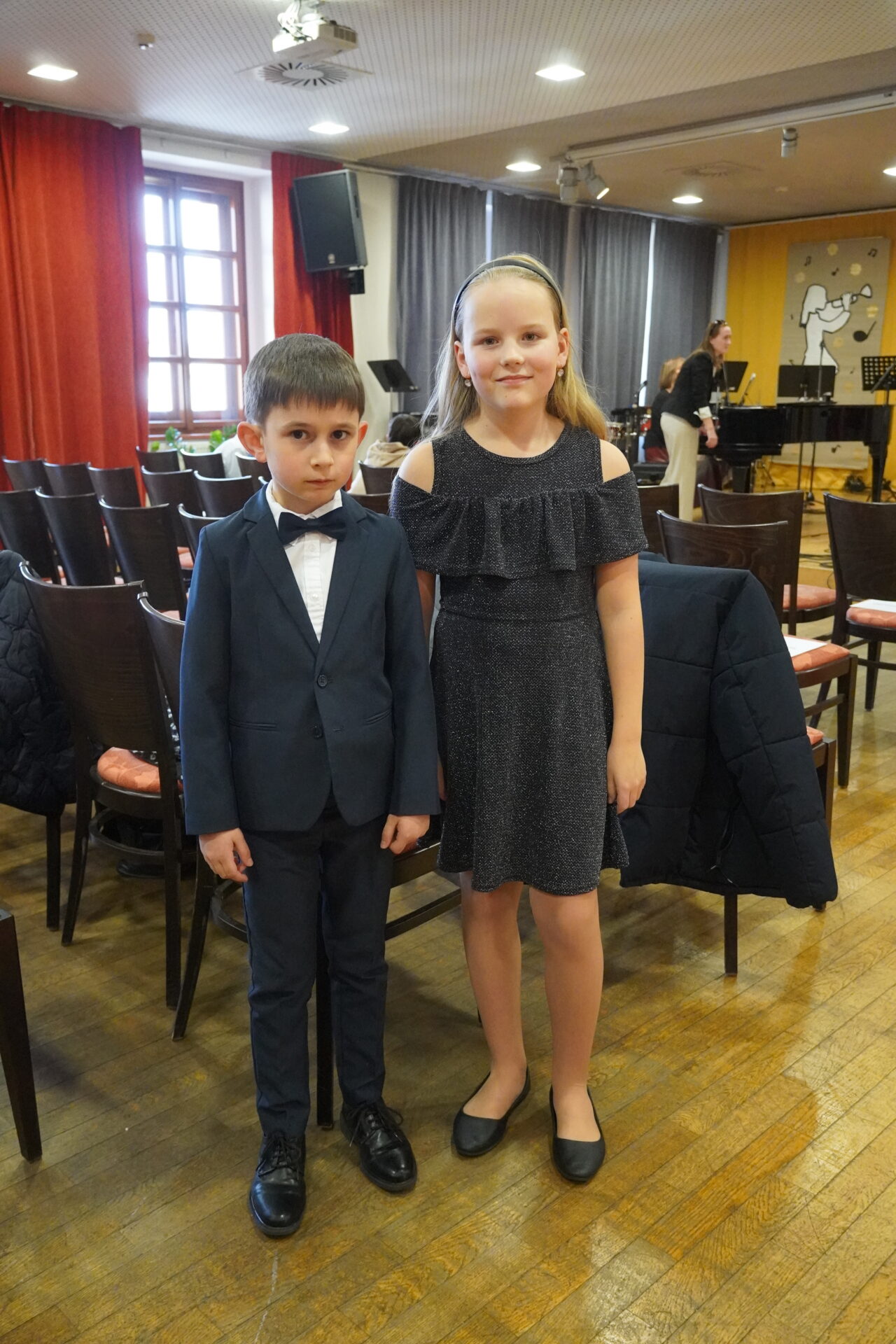 26. března se po roce uskutečnil tradiční koncert, na kterém se vždy sejdou zástupci všech základních uměleckých škol českolipského okresu. Pomyslný kamion s nápisem ZUŠ TOUR 2026 tentokrát dojel do Kulturního domu Koruna v Žandově. Jak už bývá zvykem, program těchto akcí je velmi pestrý, protože každá škola vyšle na koncert žáky z různých studijních zaměření. Mladí muzikanti navíc vystupují v rámci různých nástrojových obsazení. Koncert zahájil smyčcový orchestr ze Cvikova. Následovali perkusisté z České Lípy a Doks, kteří hráli jako sólisté na malý bubínek, vibrafon či v souboru bicích nástrojů. ZUŠ Doksy zastupovala také žákyně na lesní roh. Žandovské flétnistky vystoupily v triu i sólově. Z mimoňské školy přijelo trio složené ze dvou houslí a klavíru. Naši školu reprezentovali mladí klavíristé Jaroslav Bayer a Emma Poláčková, kteří si připravili tři skladby. Celý program zakončili hostitelé čtyřruční klavírní úpravou slavné melodie ze seriálu Cirkus Humberto. Večerem provedla posluchače paní ředitelka Alena Losová, která na konci poděkovala žákům, pedagogům, ředitelům i rodičům za podporu tohoto krásného projektu.