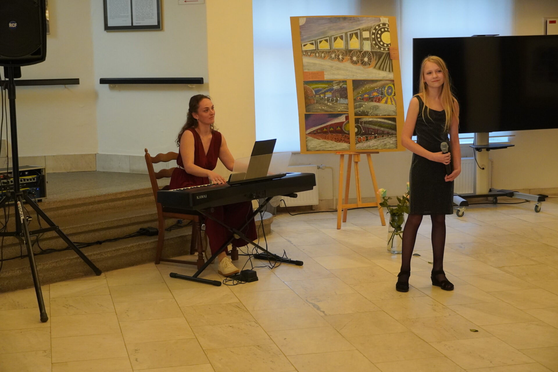 Po oficiálním přivítání hostů, ředitelů a pedagogů ze všech zúčastněných škol přišel na řadu další hudební zážitek. Adélka Michvotová společně se svou paní učitelkou Barborou Ptáčkovou předvedla vystoupení, které si vysloužilo zasloužený obdiv – a nejedno uznalé pokývání hlavou v publiku.
