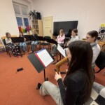 Odpoledne dorazili žáci vybaveni spacáky, karimatkami, plyšáky a samozřejmě flétnami – protože bez těch by to bylo spíš soustředění přežití než hudební. Už od čtyř hodin jsme pilně cvičili a musím říct, že tempo bylo obdivuhodné. Stihli jsme toho tolik, že by se za to nestyděl ani profesionální orchestr (který by si ale asi dal víc přestávek na kávu).