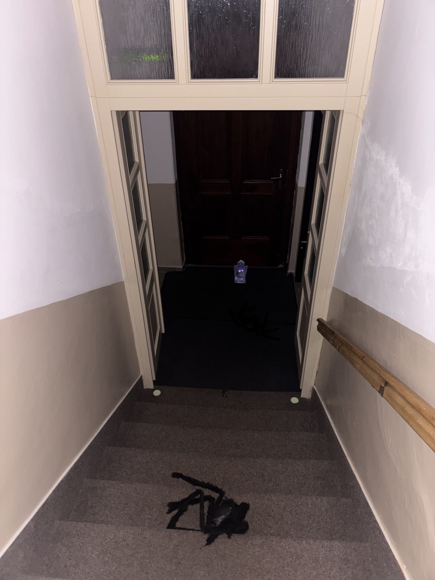 A ta dnešní? Ta byla opravdu výživná. Vedla ze sborovny až do tajemného sklepení, kde čekal kostlivec (ano, skutečný… no dobře, skoro skutečný), který střežil vajíčka jako poklad nejvyšší hodnoty. Úkolem bylo vajíčko získat a tím dokázat, že účastníci dorazili až na konec. Cestou na ně padali pavouci, lucerny vrhaly děsivé stíny a zněla hudba, která by vyděsila i odvážnější jedince než naše flétnisty.