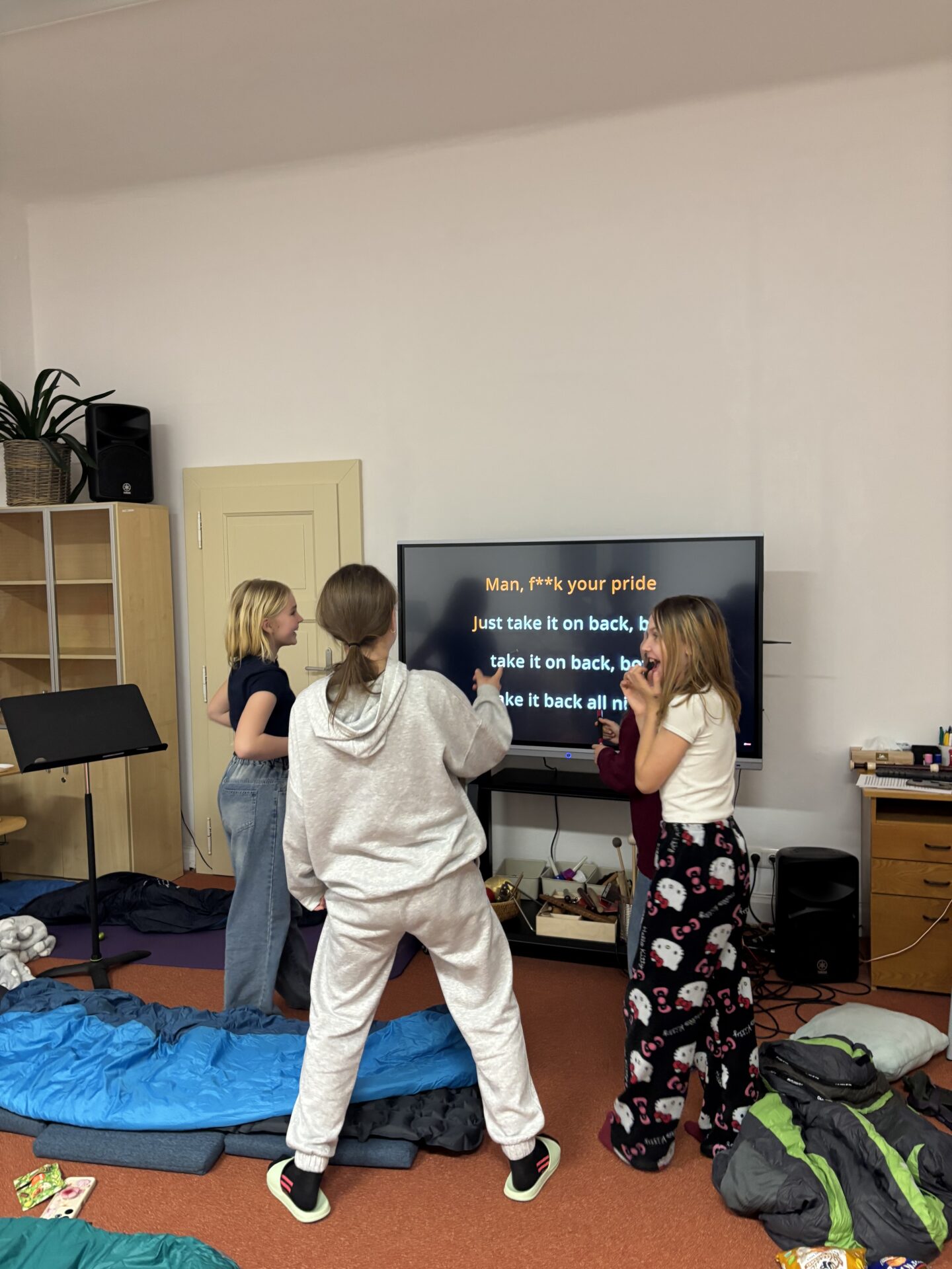 Ale přiznejme si – co žáky opravdu láká na přespávačce? Ano, hudba… a hned potom pizza, hostina, karaoke, tanec, ponocování a legendární bojovka.