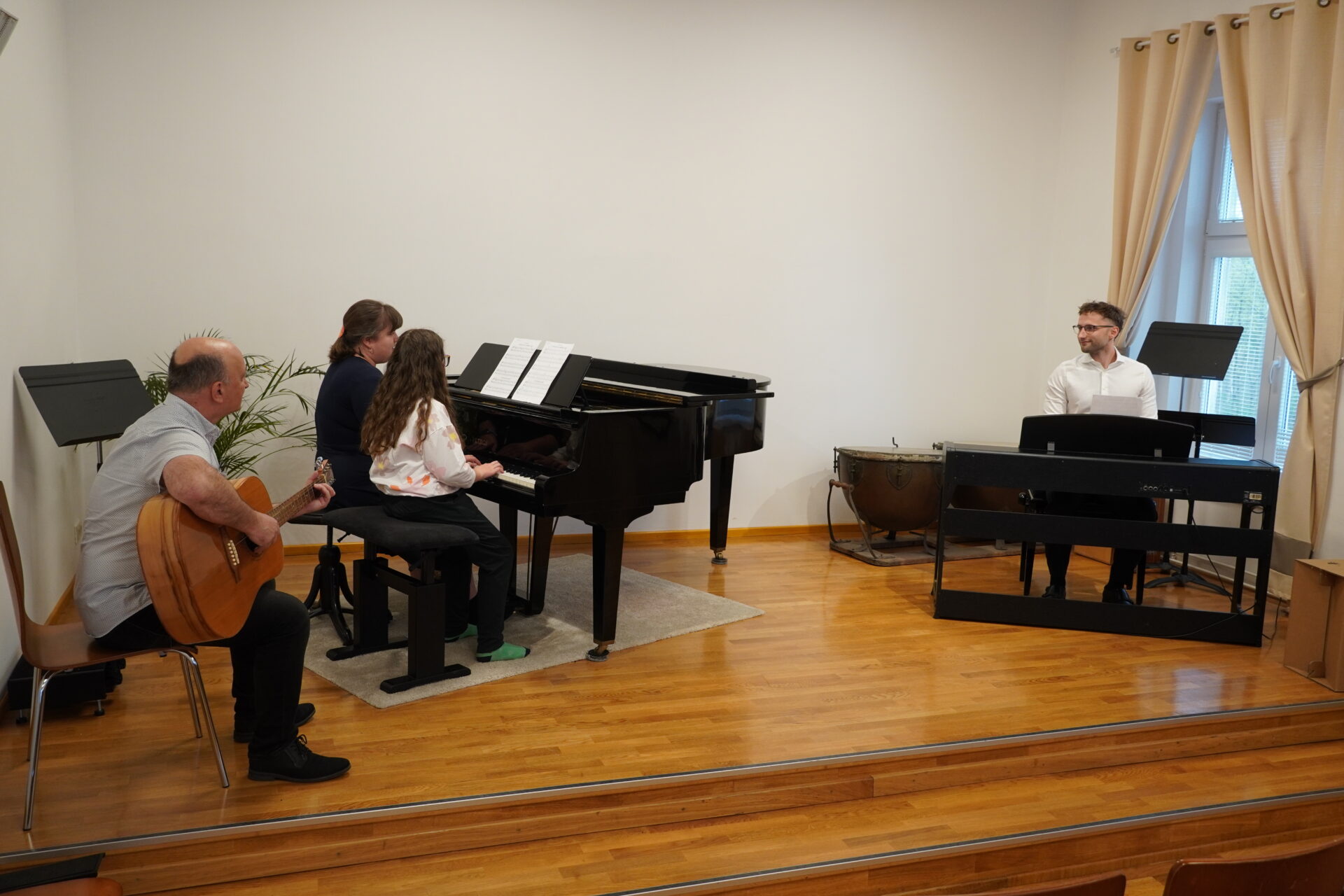 Jsou tradice, které je radost udržovat. A Rodinné muzicírování už pomalu, ale jistě tradicí je. Vždy má přívlastky veselé, radostné, živé, plné úsměvů a vzájemně podporující. V záhlaví pamětního listu je douška: Základní umělecká škola v Novém Boru uděluje statečným rodinám Pamětní list. Ano, jsou to opravdu statečné rodiny, které se pro to jedno společné odpoledne semknou a připraví program. Letos byly dva koncerty, na kterých si zahrálo a zazpívalo celkem 18 rodin. Rodiny byly letos hodně samostatné a od nás učitelů potřebovaly pouze minimální pomoc. Na koncertech zazněly lidové písničky, drobet filmové muziky, nějaká ta folková muzika, ale i hudba klasická. Moc pěkná a pestrá jarní kytička. Z nástrojového obsazení převažoval klavír. Ale zastoupena byla i flétna, bicí, housle, zpěv, kytara, trubka, pozoun, drobné Orffovy nástroje a další instrumenty. Věříme, že tyto koncerty přispějí k rodinnému muzicírování, že se rodiny sejdou a něco společného tvoří. Nejen jednou v roce, ale častěji a třeba i pravidelně. Všem zúčastněným děkujeme za jejich krásná vystoupení a učitelům za přípravu a pomoc při nácviku.