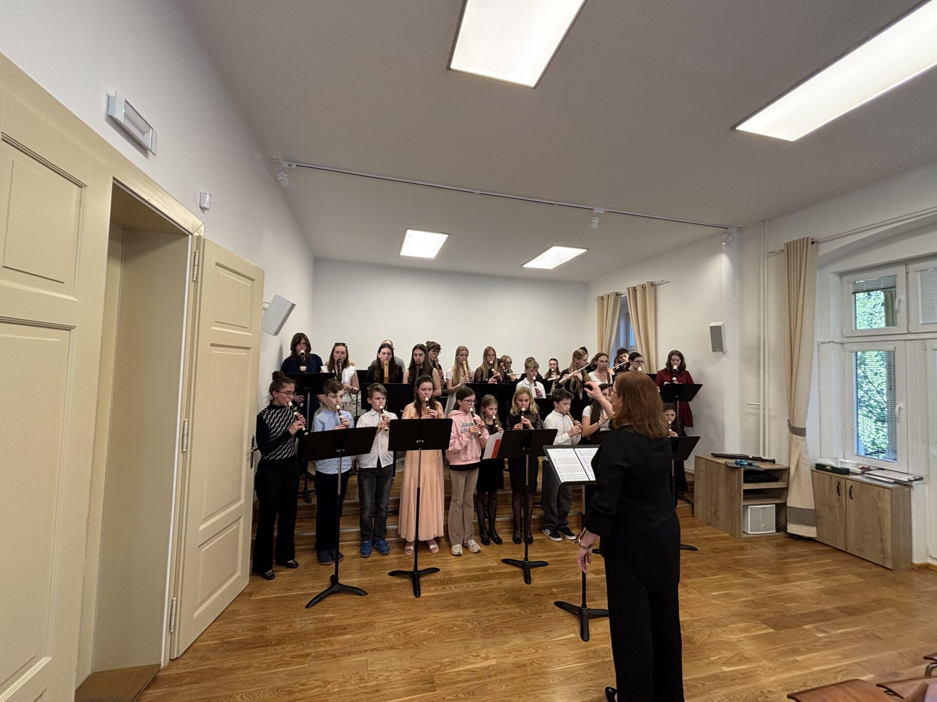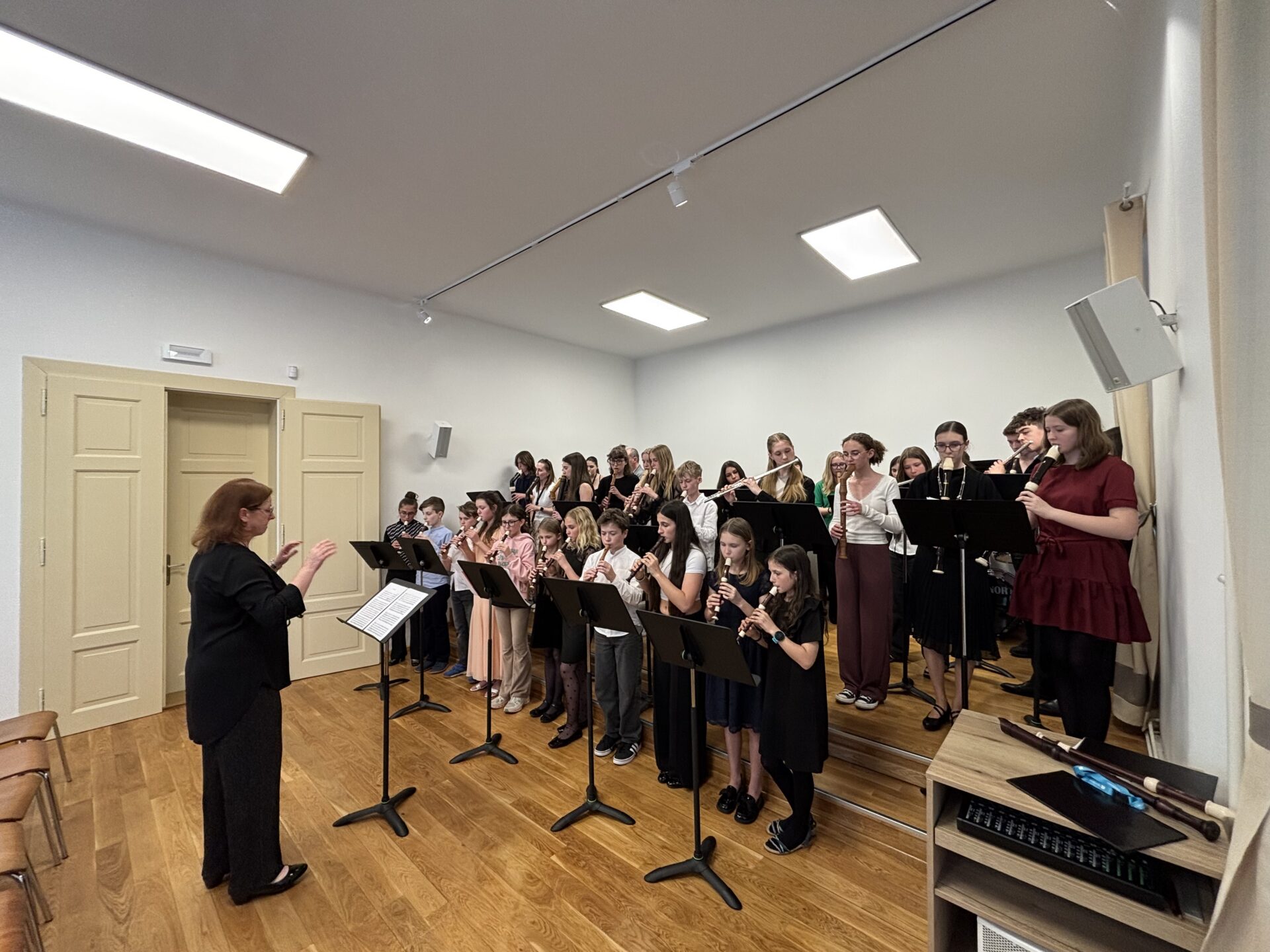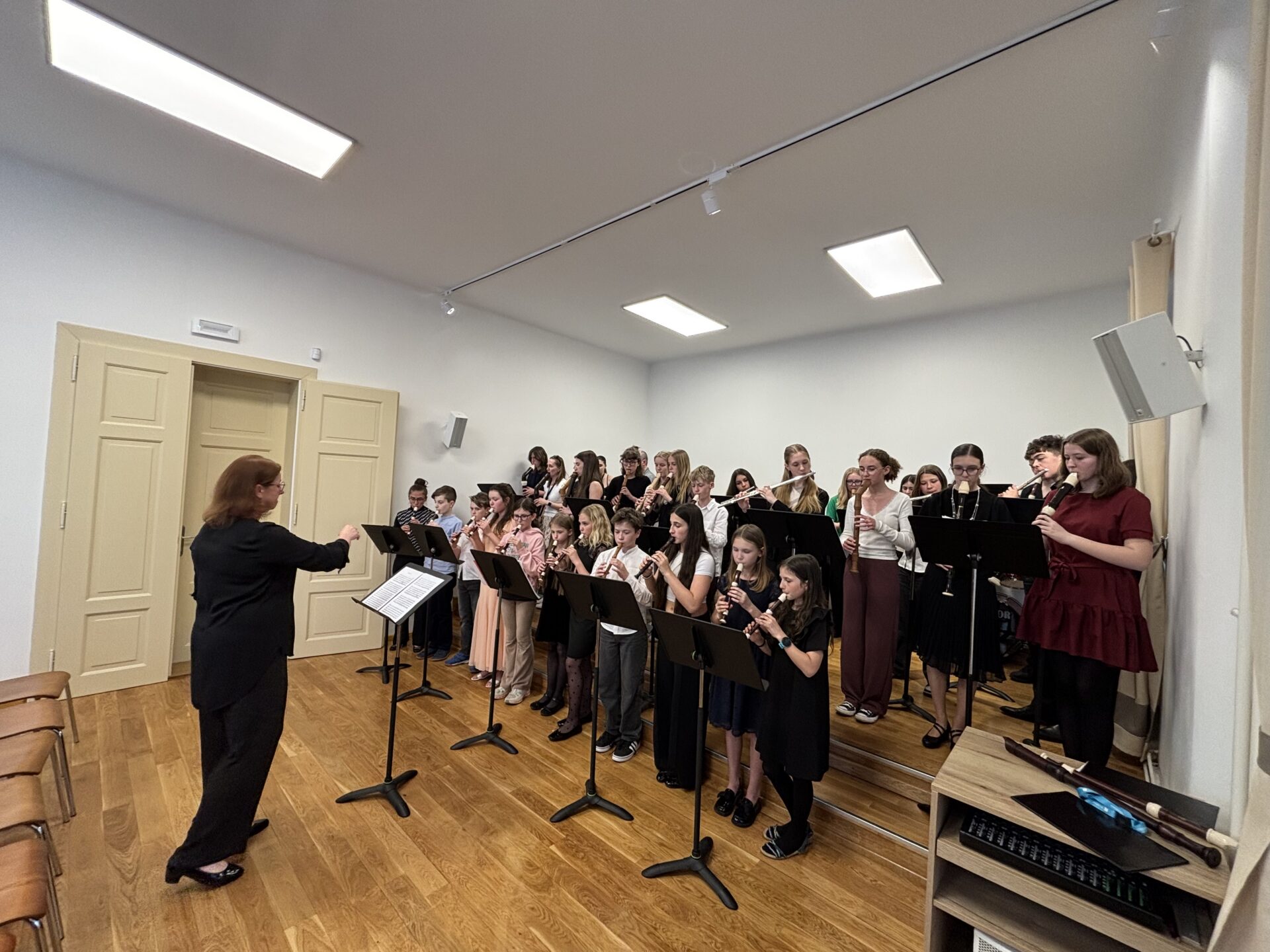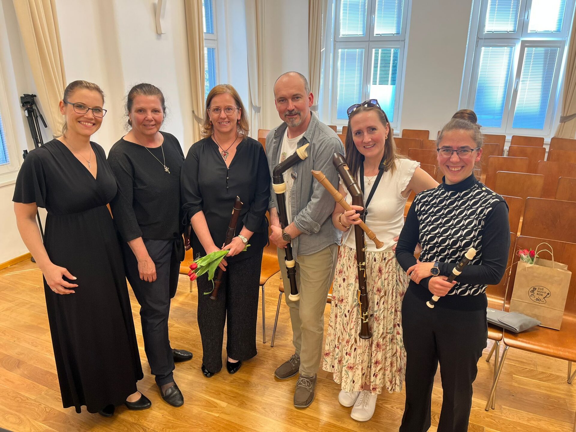 Dnešní den na naší ZUŠ se nesl ve znamení fléten, hudby a společného tvoření. Školu zaplnili mladí flétnisté hned z pěti základních uměleckých škol – z Chabařovic, Doks, Žandova, Mladé Boleslavi a domácího Nového Boru. Od ranních hodin se tak koncertní sál rozezněl tóny, které spojovaly žáky napříč městy i ročníky.