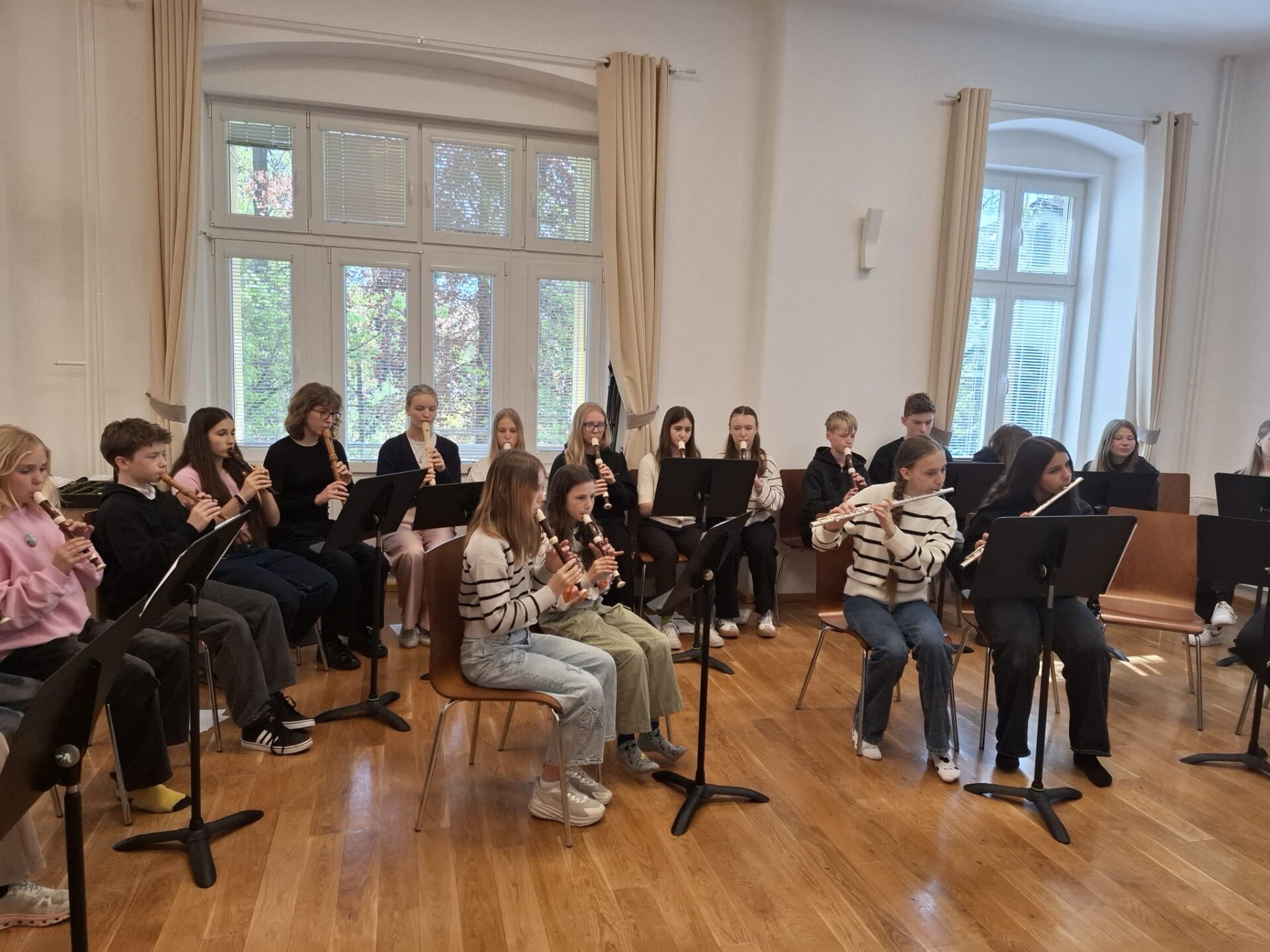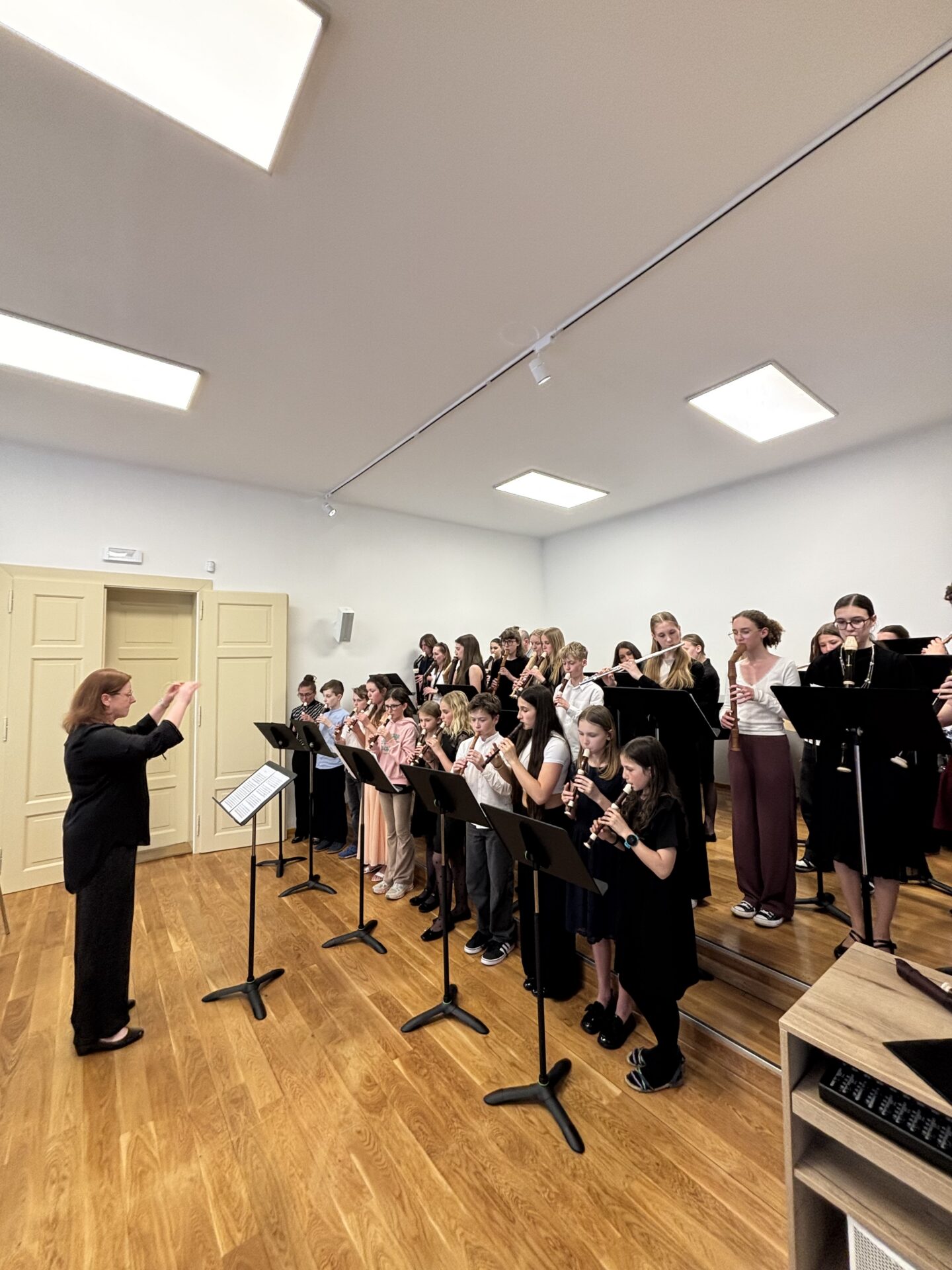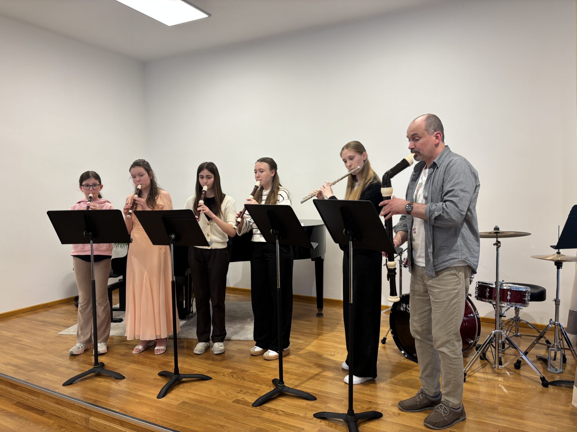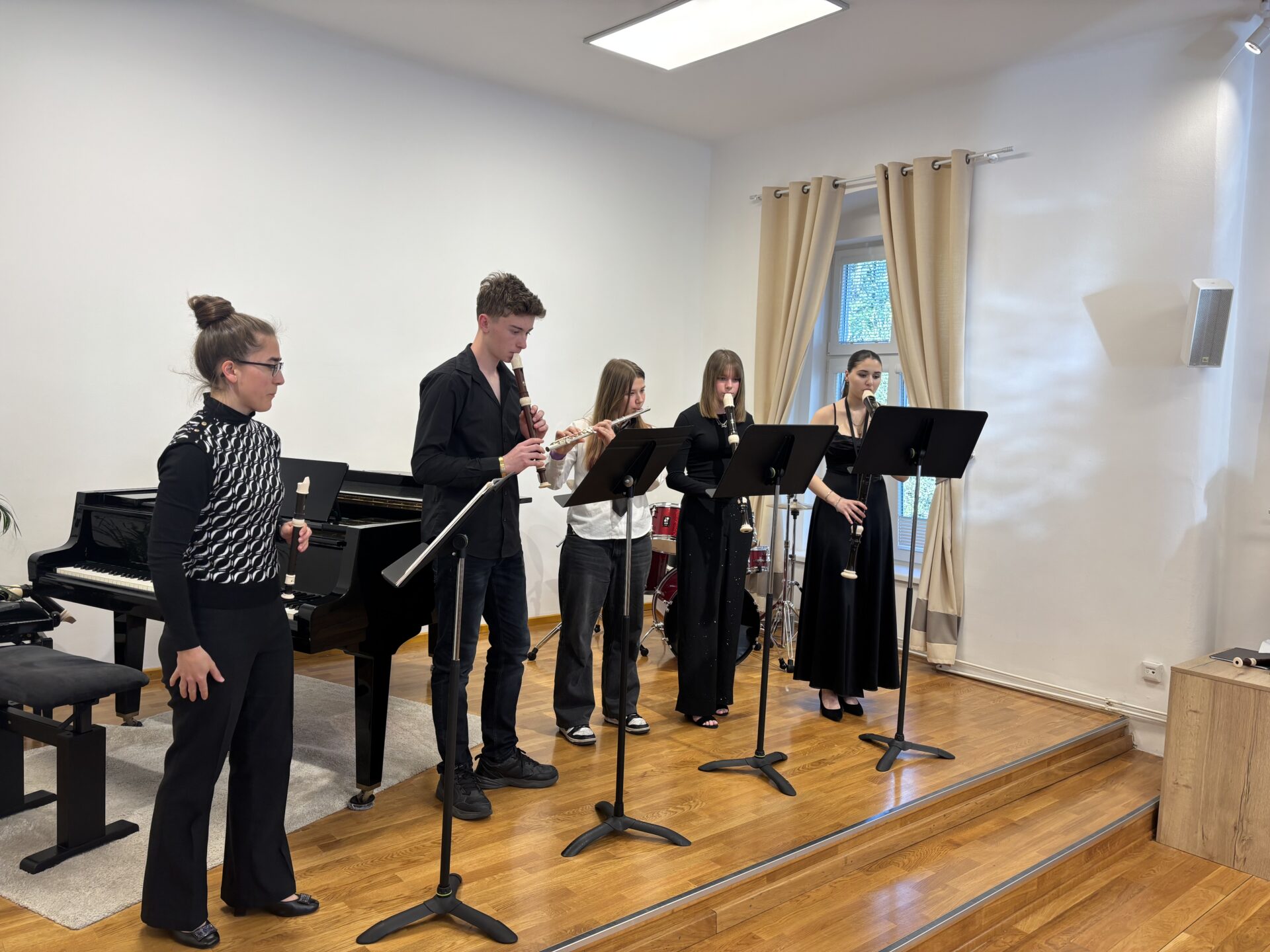 Dnešní den na naší ZUŠ se nesl ve znamení fléten, hudby a společného tvoření. Školu zaplnili mladí flétnisté hned z pěti základních uměleckých škol – z Chabařovic, Doks, Žandova, Mladé Boleslavi a domácího Nového Boru. Od ranních hodin se tak koncertní sál rozezněl tóny, které spojovaly žáky napříč městy i ročníky.