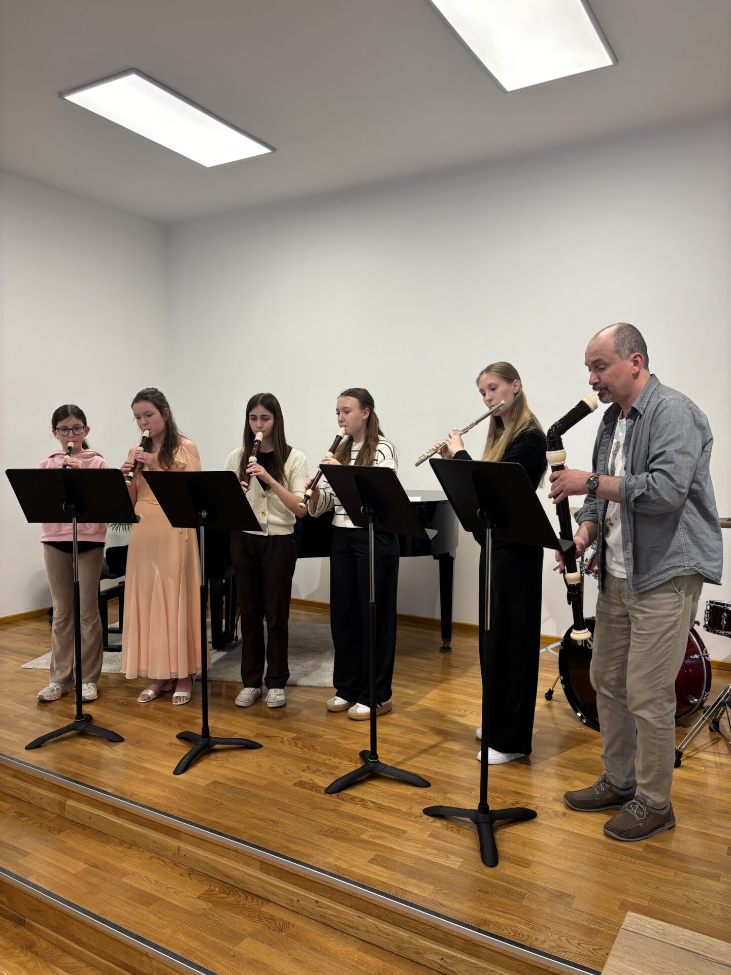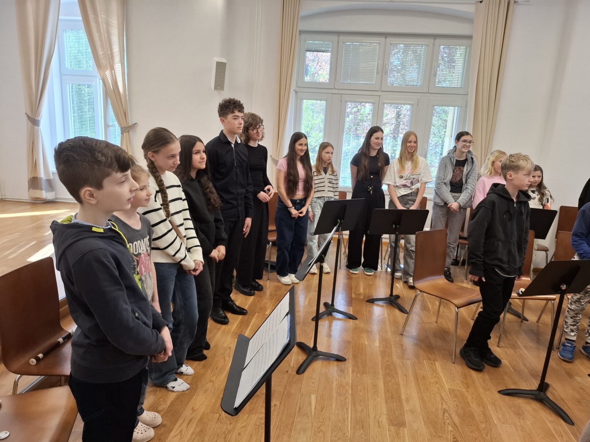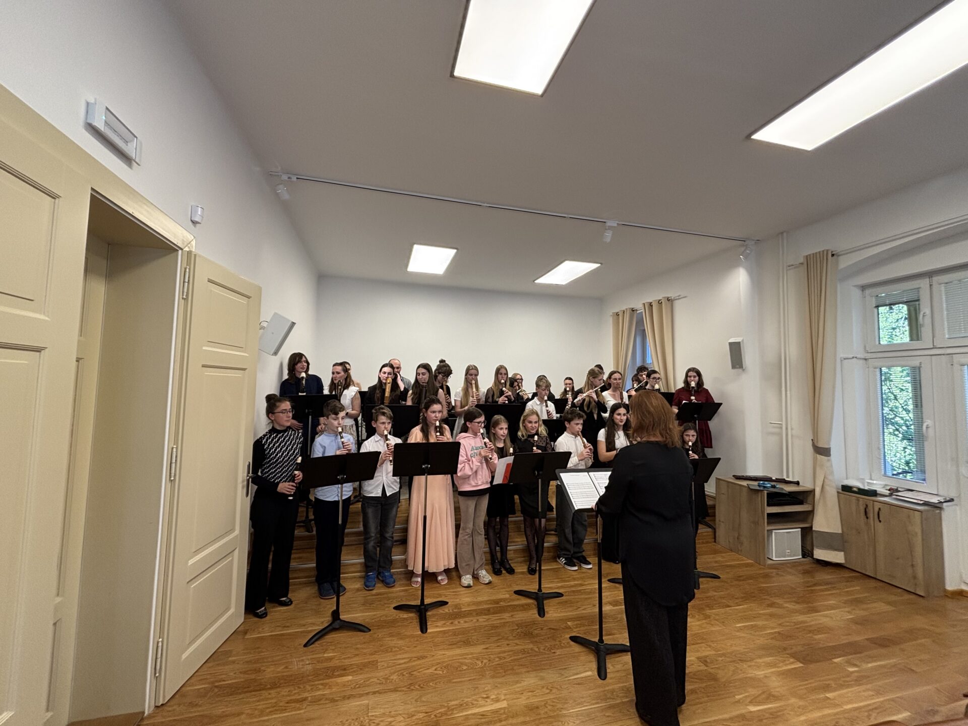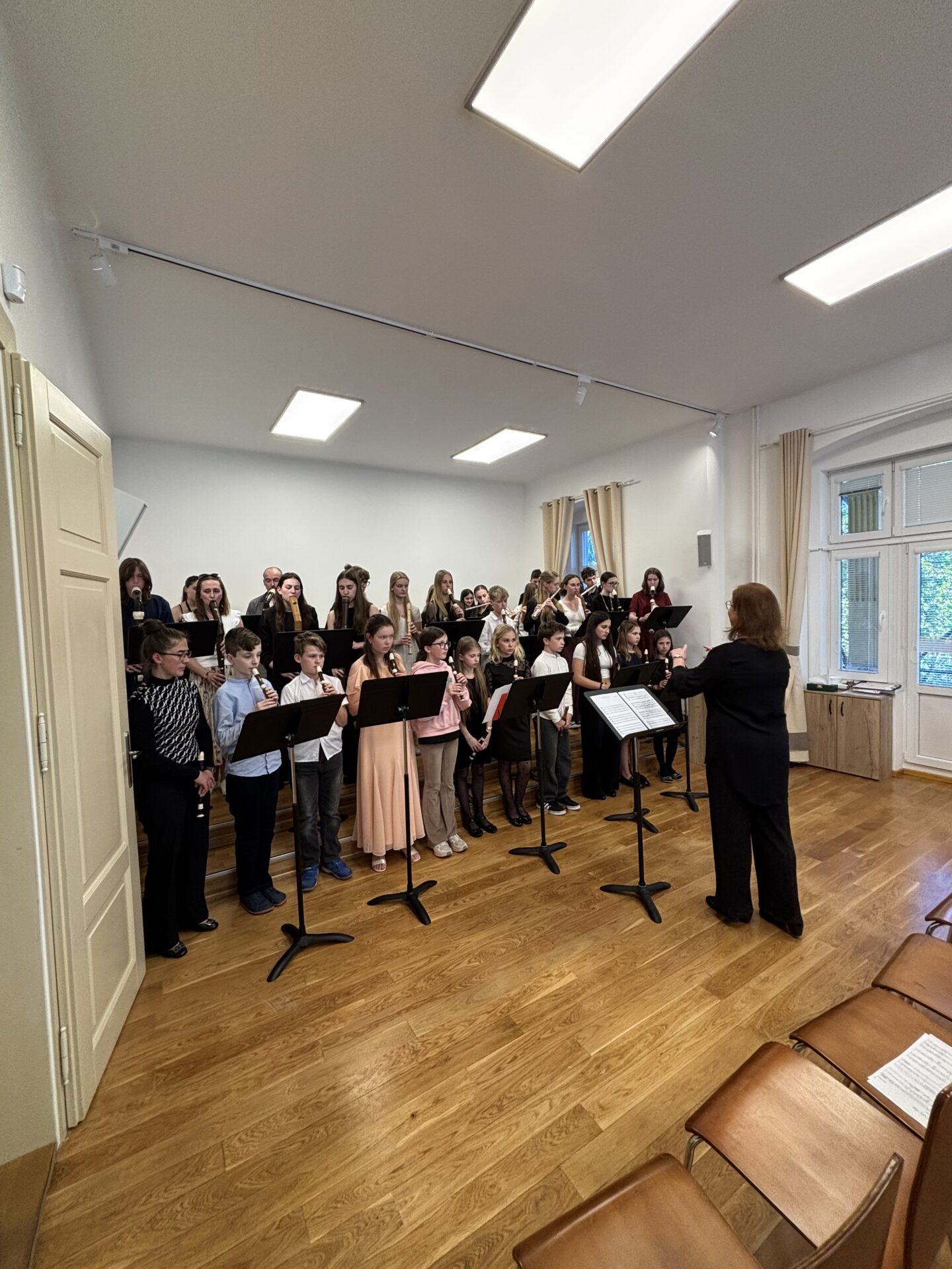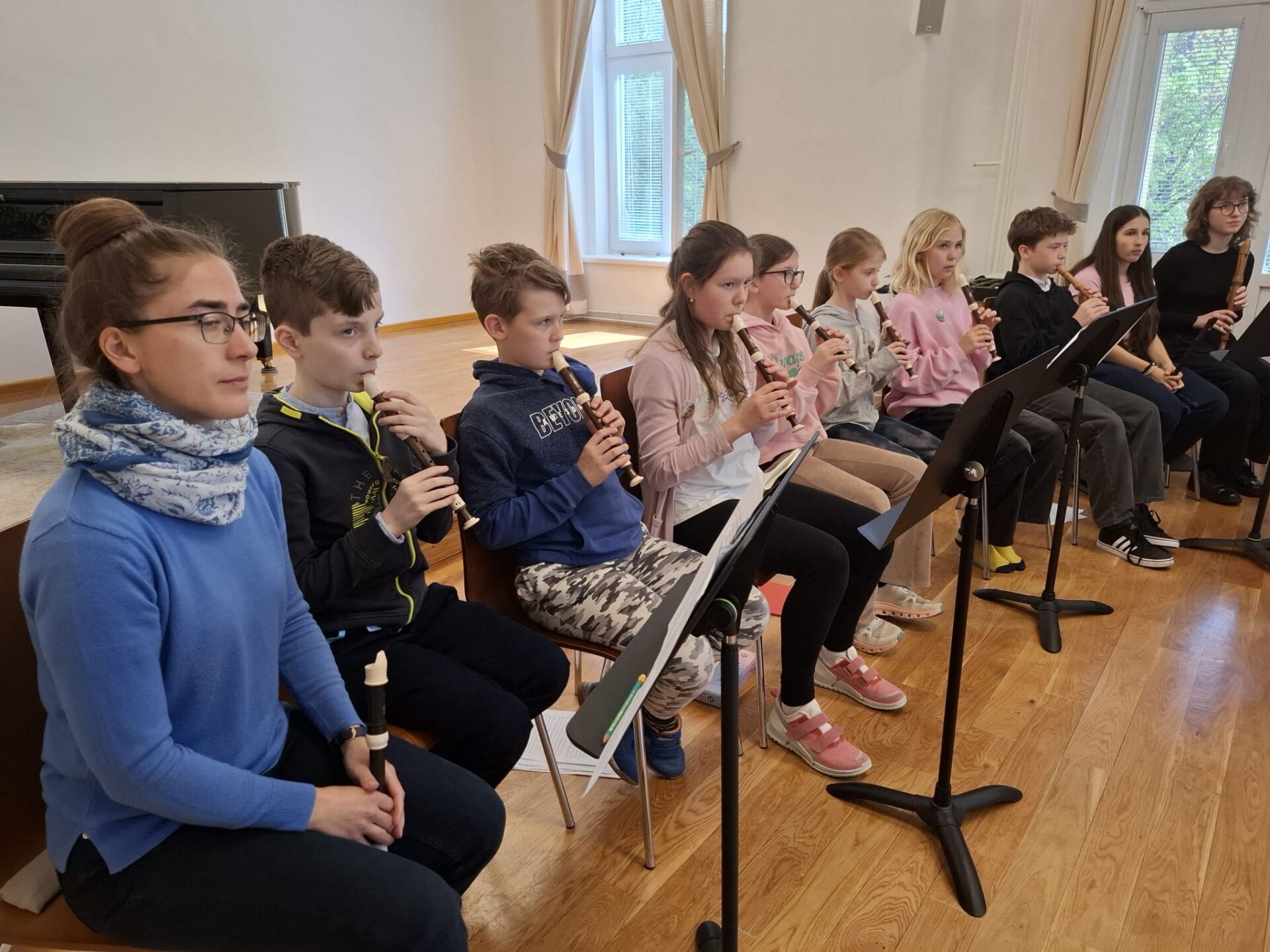 Dnešní den na naší ZUŠ se nesl ve znamení fléten, hudby a společného tvoření. Školu zaplnili mladí flétnisté hned z pěti základních uměleckých škol – z Chabařovic, Doks, Žandova, Mladé Boleslavi a domácího Nového Boru. Od ranních hodin se tak koncertní sál rozezněl tóny, které spojovaly žáky napříč městy i ročníky.