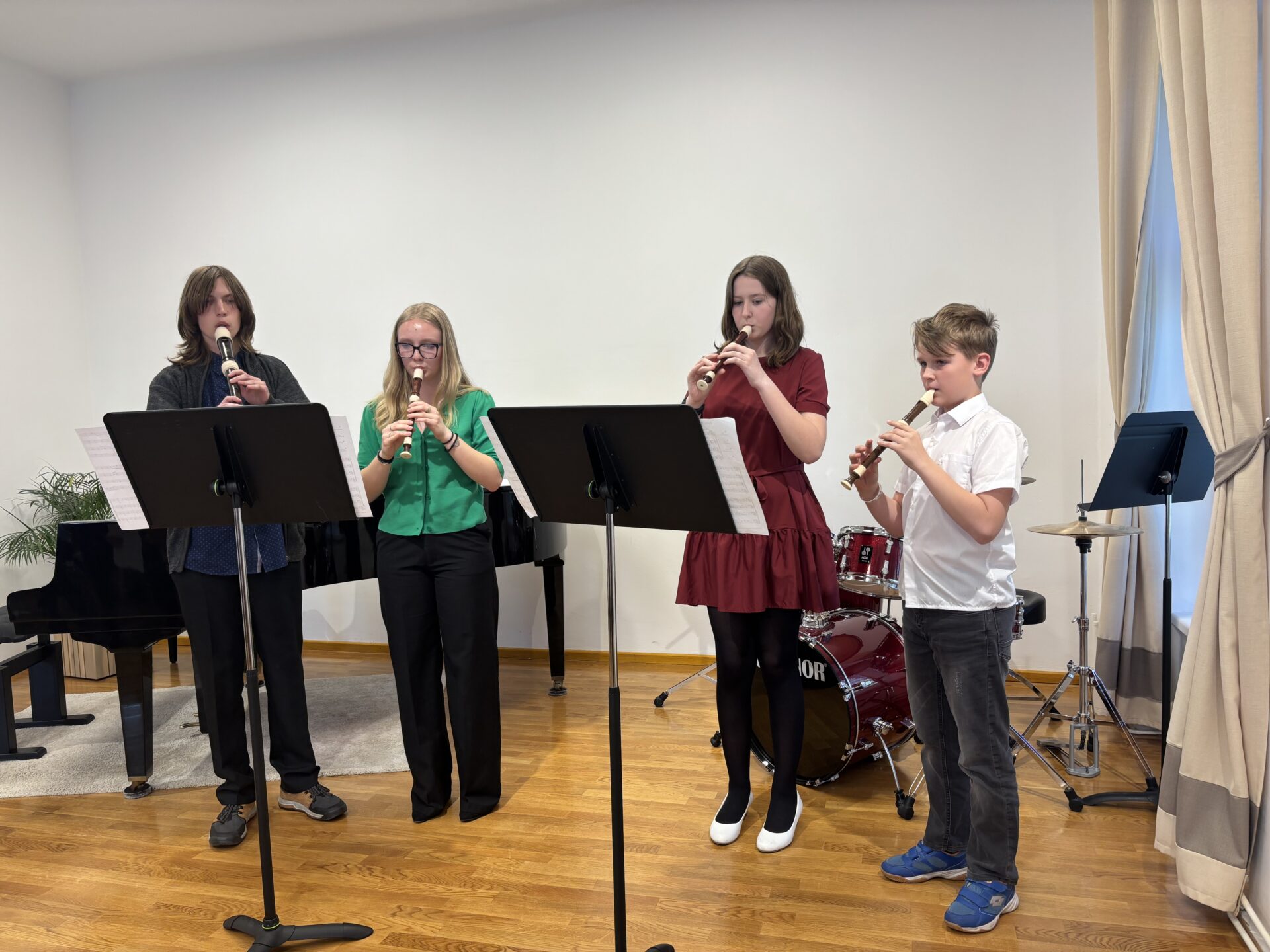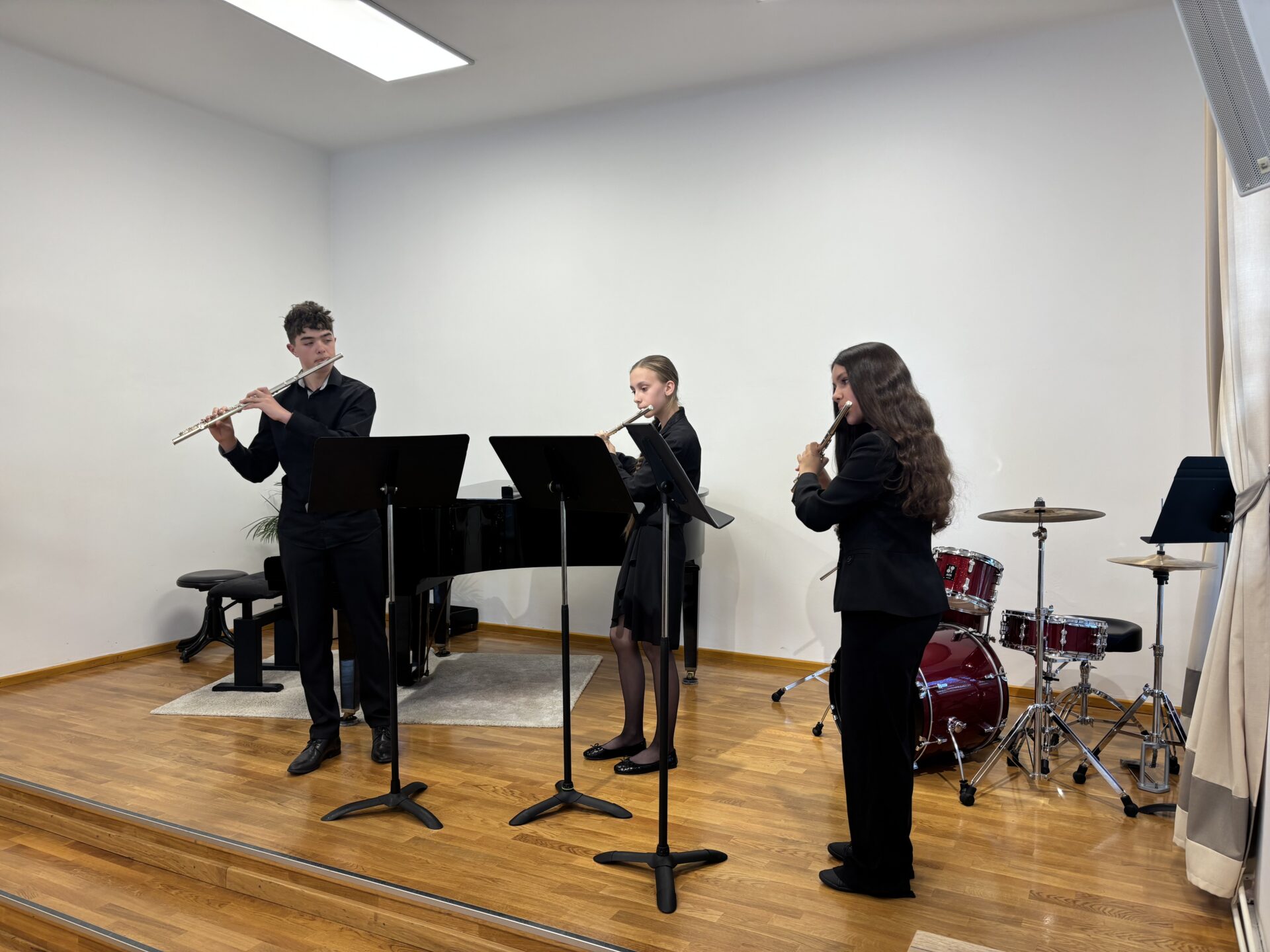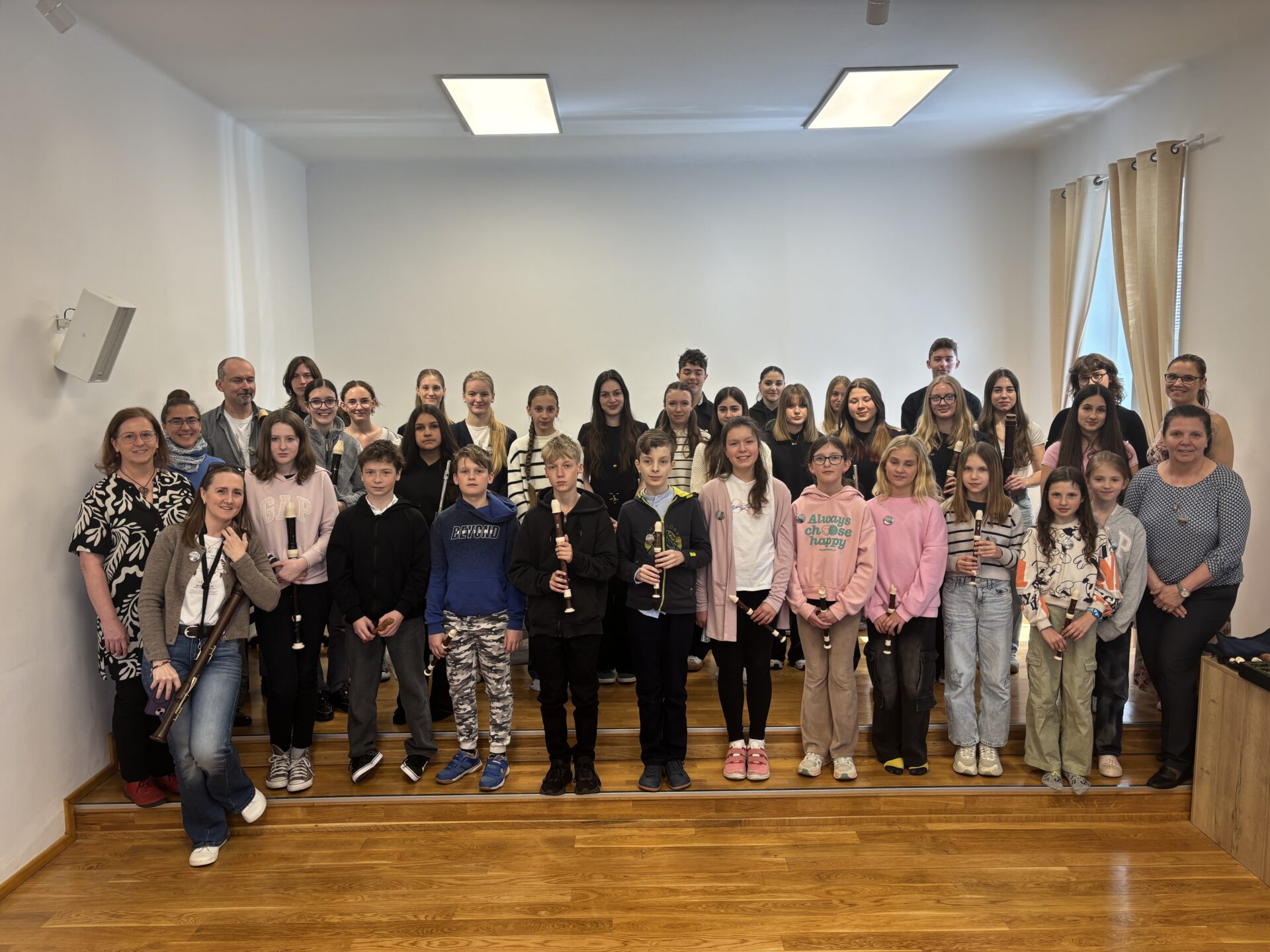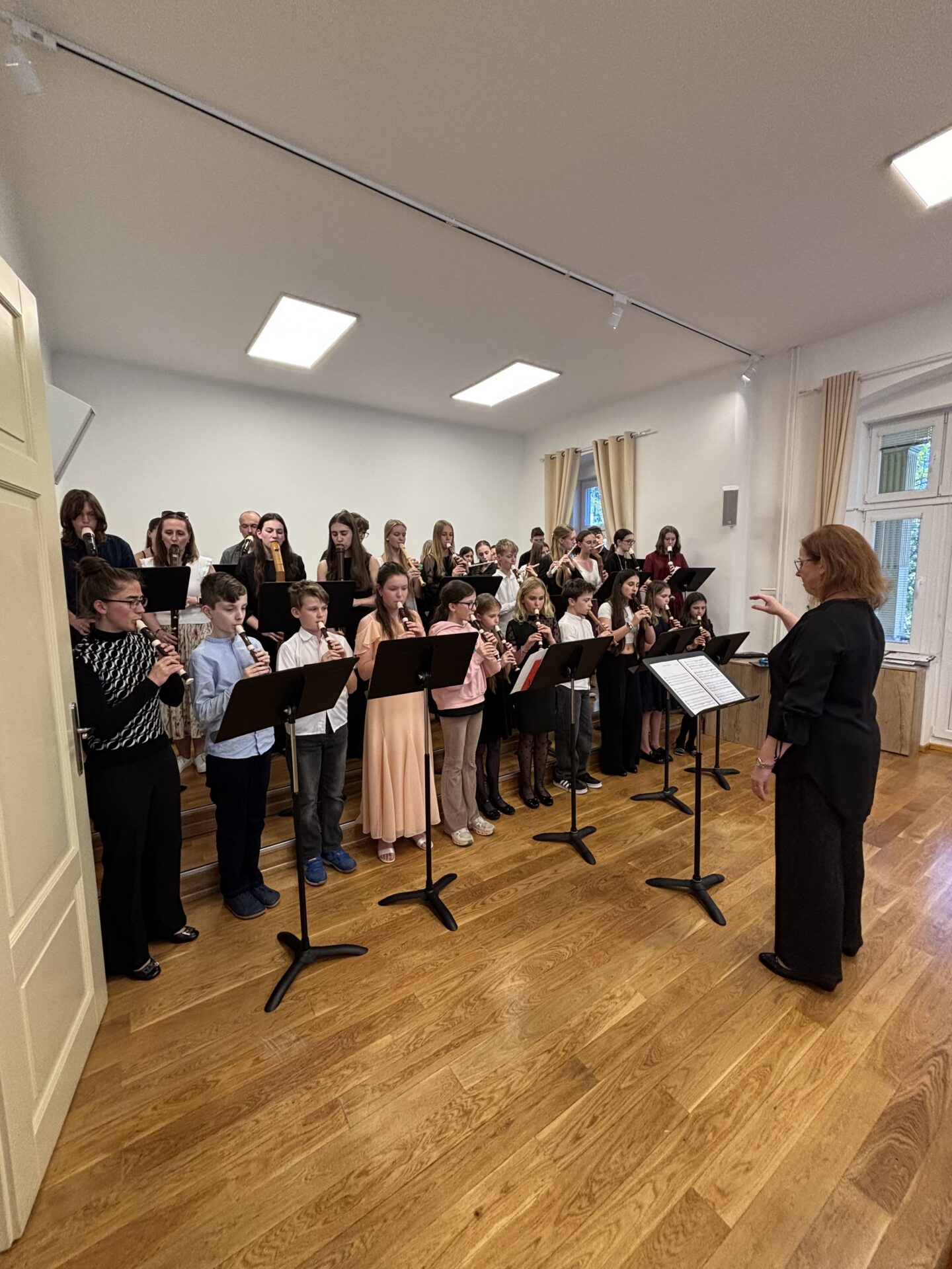 Dnešní den na naší ZUŠ se nesl ve znamení fléten, hudby a společného tvoření. Školu zaplnili mladí flétnisté hned z pěti základních uměleckých škol – z Chabařovic, Doks, Žandova, Mladé Boleslavi a domácího Nového Boru. Od ranních hodin se tak koncertní sál rozezněl tóny, které spojovaly žáky napříč městy i ročníky.