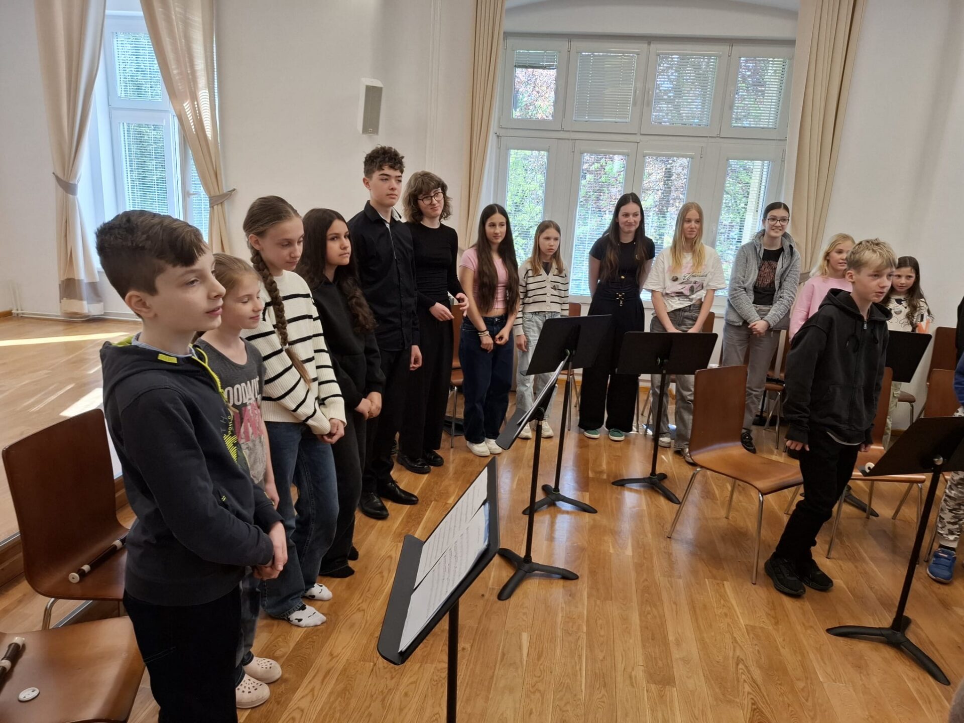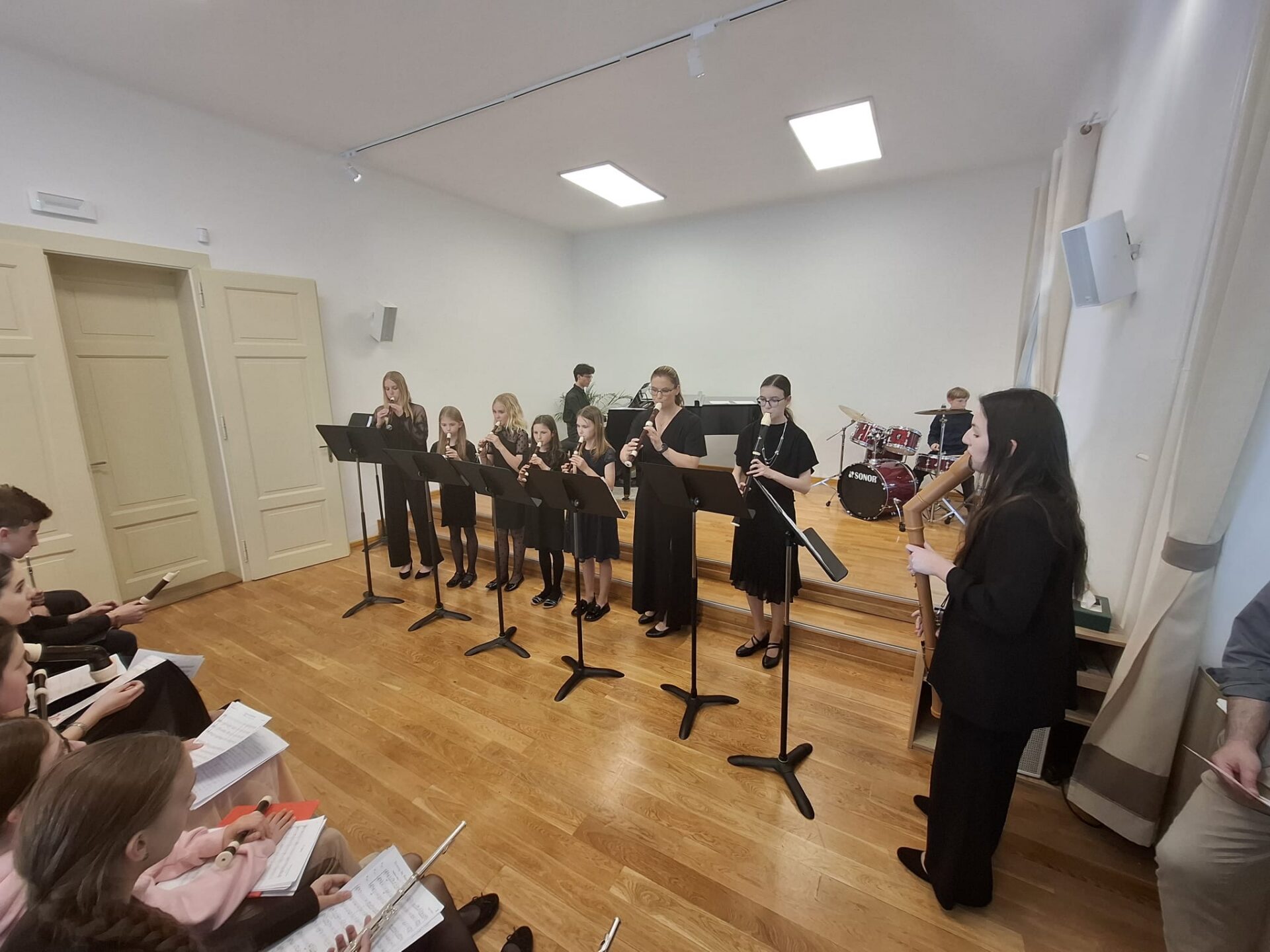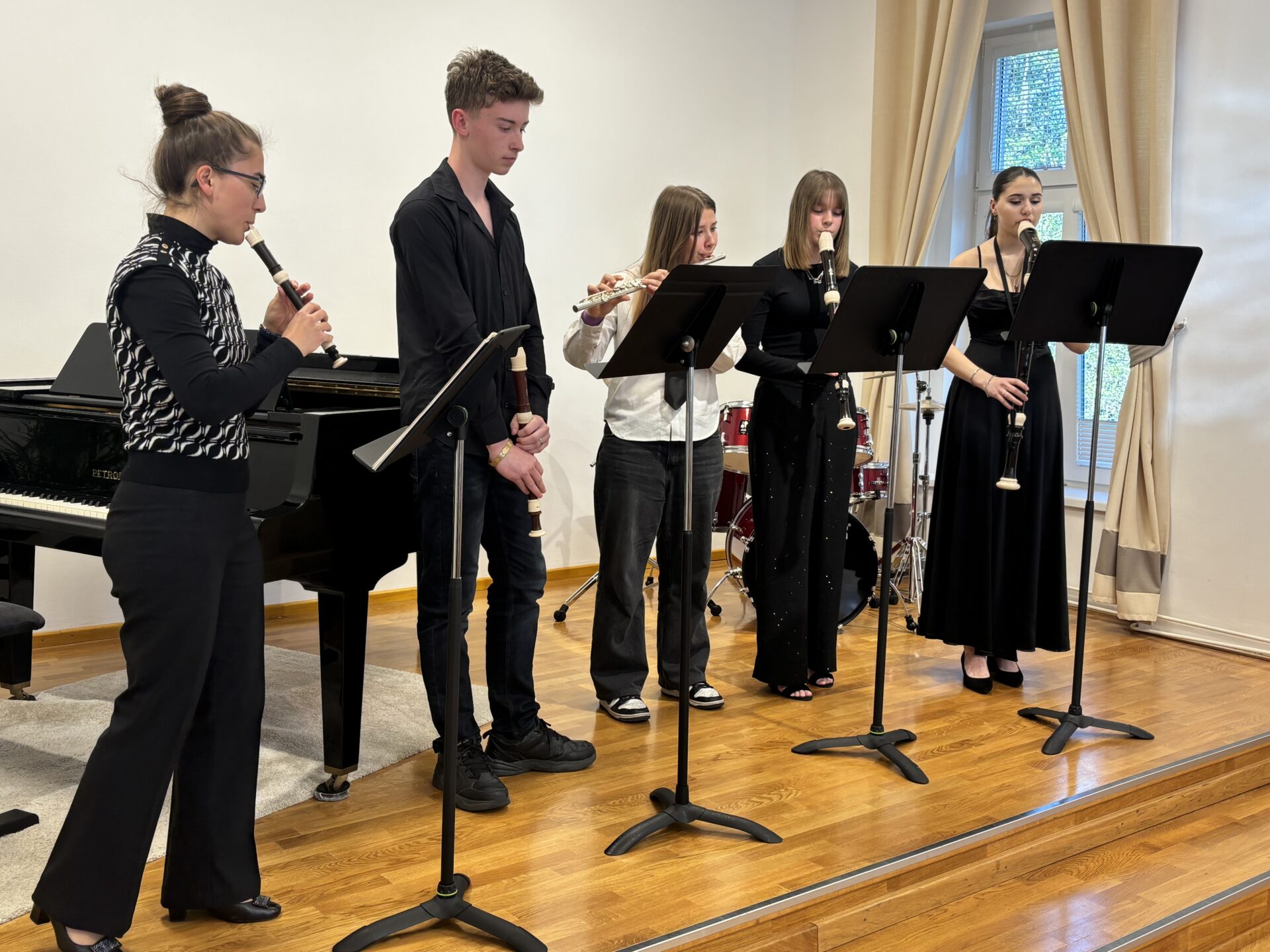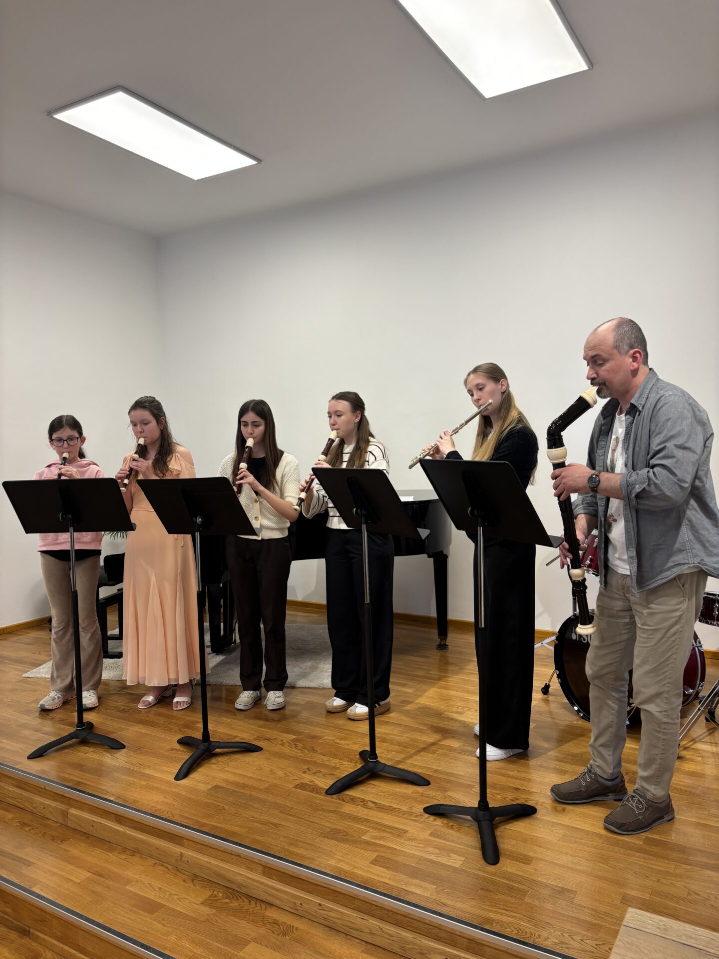 Dnešní den na naší ZUŠ se nesl ve znamení fléten, hudby a společného tvoření. Školu zaplnili mladí flétnisté hned z pěti základních uměleckých škol – z Chabařovic, Doks, Žandova, Mladé Boleslavi a domácího Nového Boru. Od ranních hodin se tak koncertní sál rozezněl tóny, které spojovaly žáky napříč městy i ročníky.