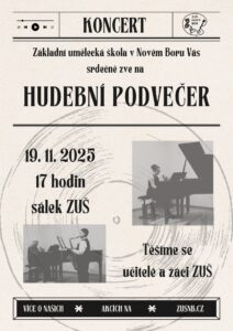 Je to k nevíře, ale v listopadu nás čekají dva Hudební podvečery. Máme tolik šikovných žáků, kteří si chtějí zahrát, že jsme museli přidat ještě jeden koncert. ![]()